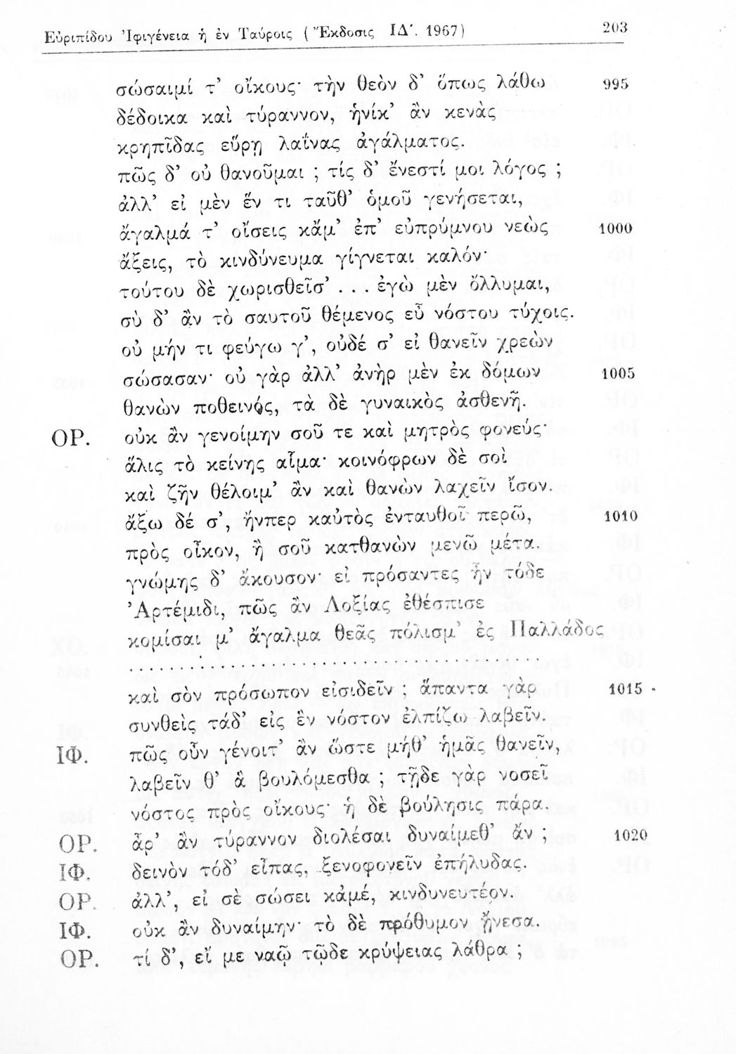 Σχολικό εγχειρίδιο Αρχαίων Ελληνικών που περιέχει εισαγωγή στο αρχαίο δράμα και στη ζωή και το έργο του Ευριπίδη, αποσπάσματα από την Ιφιγένεια η εν Αυλίδι και την Ιφιγένεια η εν Ταύροις και ερμηνευτικά σχόλια.