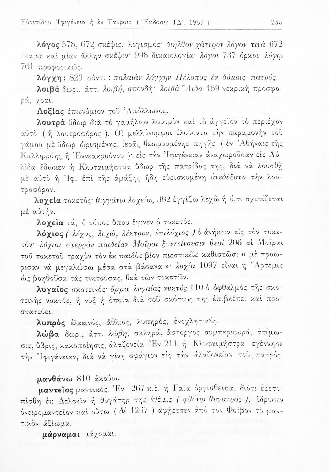 Σχολικό εγχειρίδιο Αρχαίων Ελληνικών Γυμνασίου που περιλαμβάνει αποσπάσματα τις τραγωδίες του Ευριπίδη Ιφιγένεια η εν Αυλίδι και Ιφιγένεια η εν Ταύροις, ερμηνευτικά και πραγματολογικά σχόλια και λεξιλογικές ...