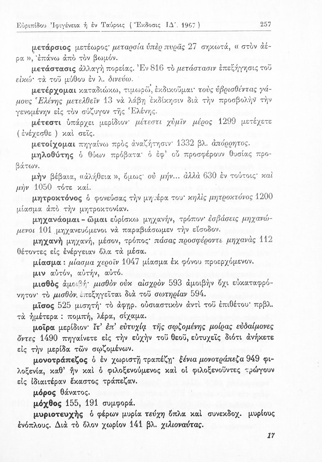 Βαθμίδα εκπαίδευσης: Δευτεροβάθμια Τάξη: Β' Λυκείου Μάθημα: Αρχαία Ελληνικά Γλώσσα: Απλή καθαρεύουσα Παρουσίαση περιεχομένου: Σχολικό εγχειρίδιο Αρχαίων Ελληνικών Β΄ Λυκείου που περιέχει εισαγωγή στο αρχαίο δράμα και στη ζωή και το έργο του Ευριπίδη, αποσπάσματα από την Ιφιγένεια η εν Αυλίδι και την Ιφιγένεια η εν Ταύροις και ερμηνευτικά σχόλια. |
