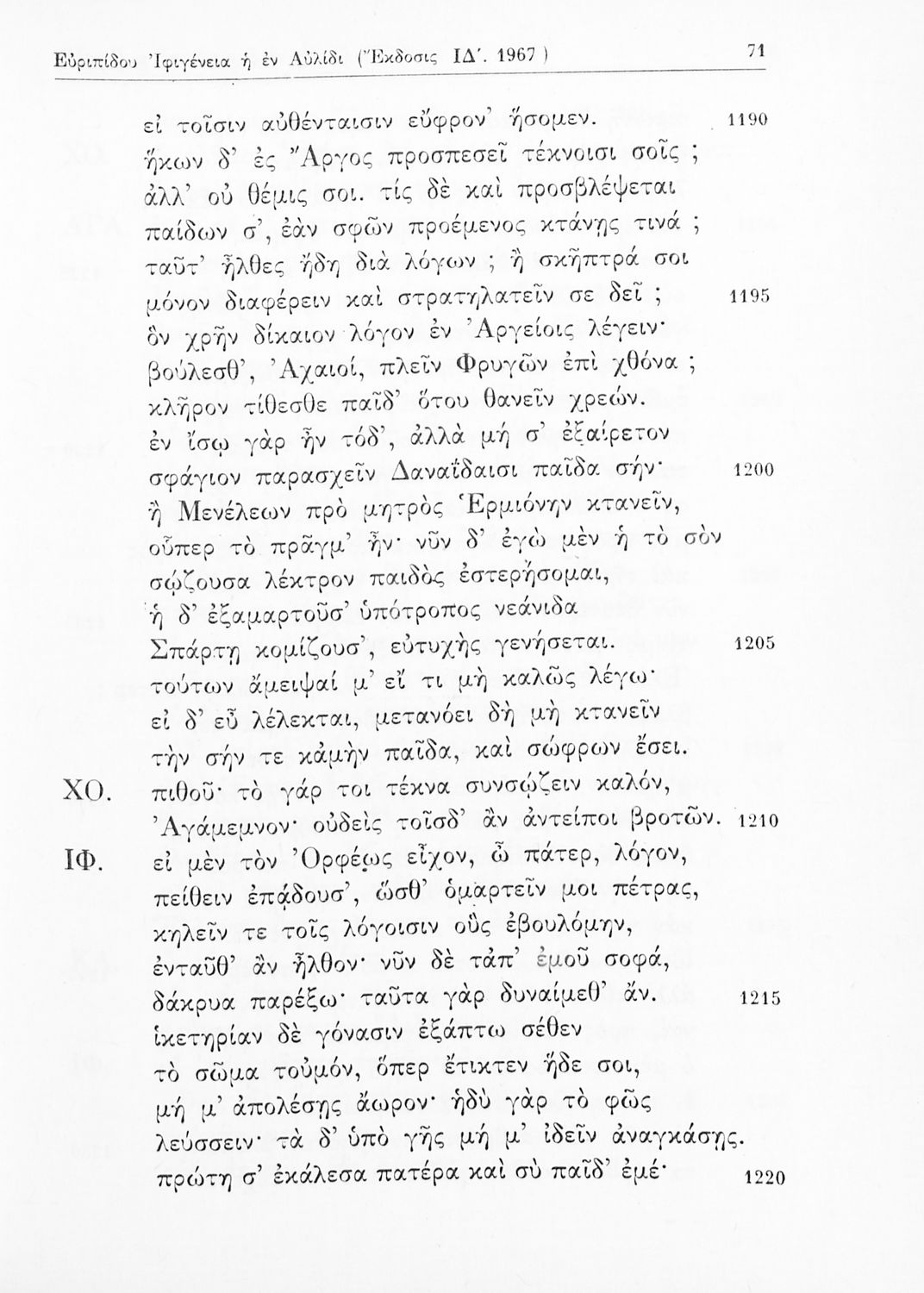 Σχολικό εγχειρίδιο Αρχαίων Ελληνικών Β΄ Λυκείου που περιέχει εισαγωγή στο αρχαίο δράμα και στη ζωή και το έργο του Ευριπίδη, αποσπάσματα από την Ιφιγένεια η εν Αυλίδι και την Ιφιγένεια η εν Ταύροις και ερμηνευτικά σχόλια.