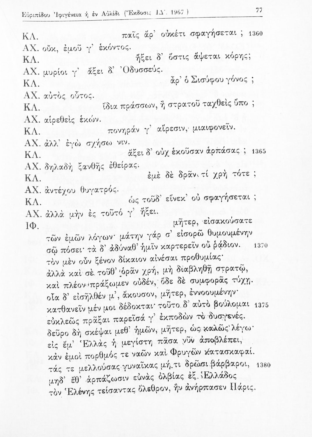 Σχολικό εγχειρίδιο Αρχαίων Ελληνικών Β΄ Λυκείου που περιέχει εισαγωγή στο αρχαίο δράμα και στη ζωή και το έργο του Ευριπίδη, αποσπάσματα από την Ιφιγένεια η εν Αυλίδι και την Ιφιγένεια η εν Ταύροις και ερμηνευτικά σχόλια.