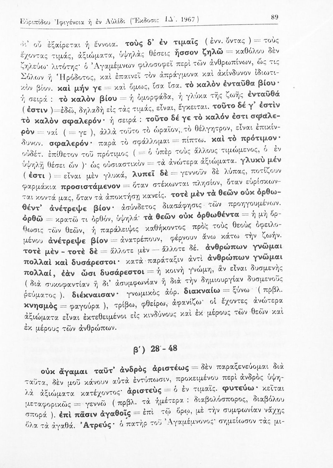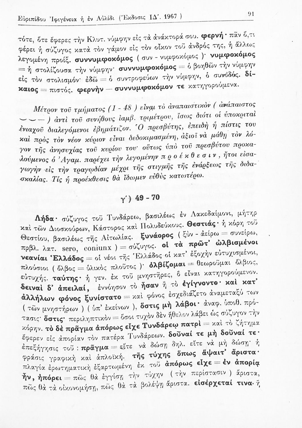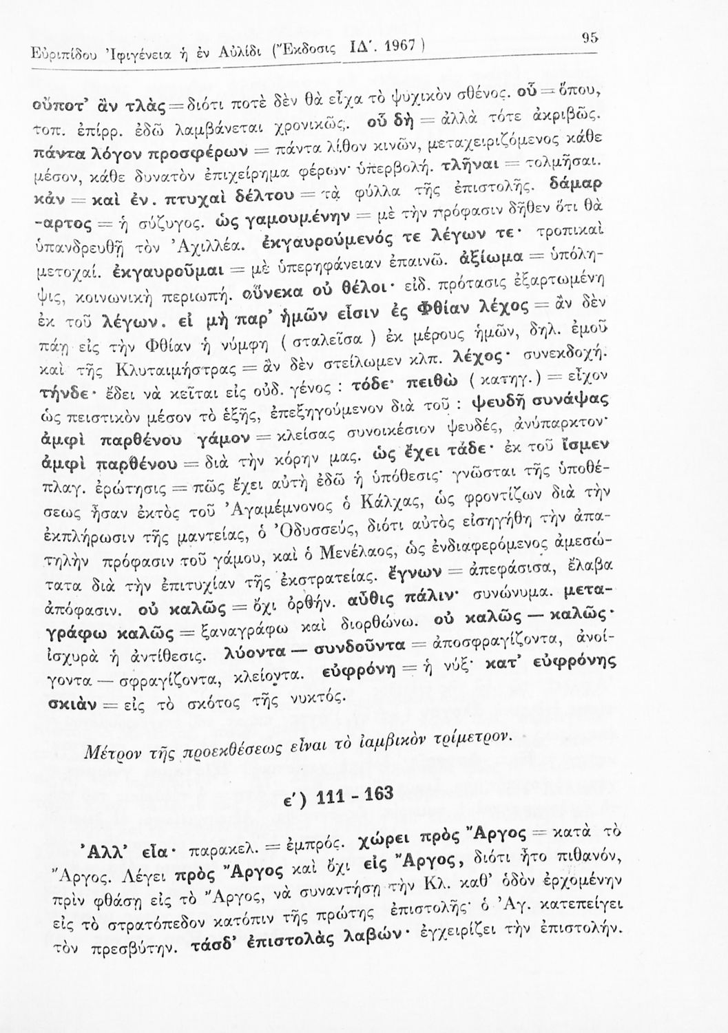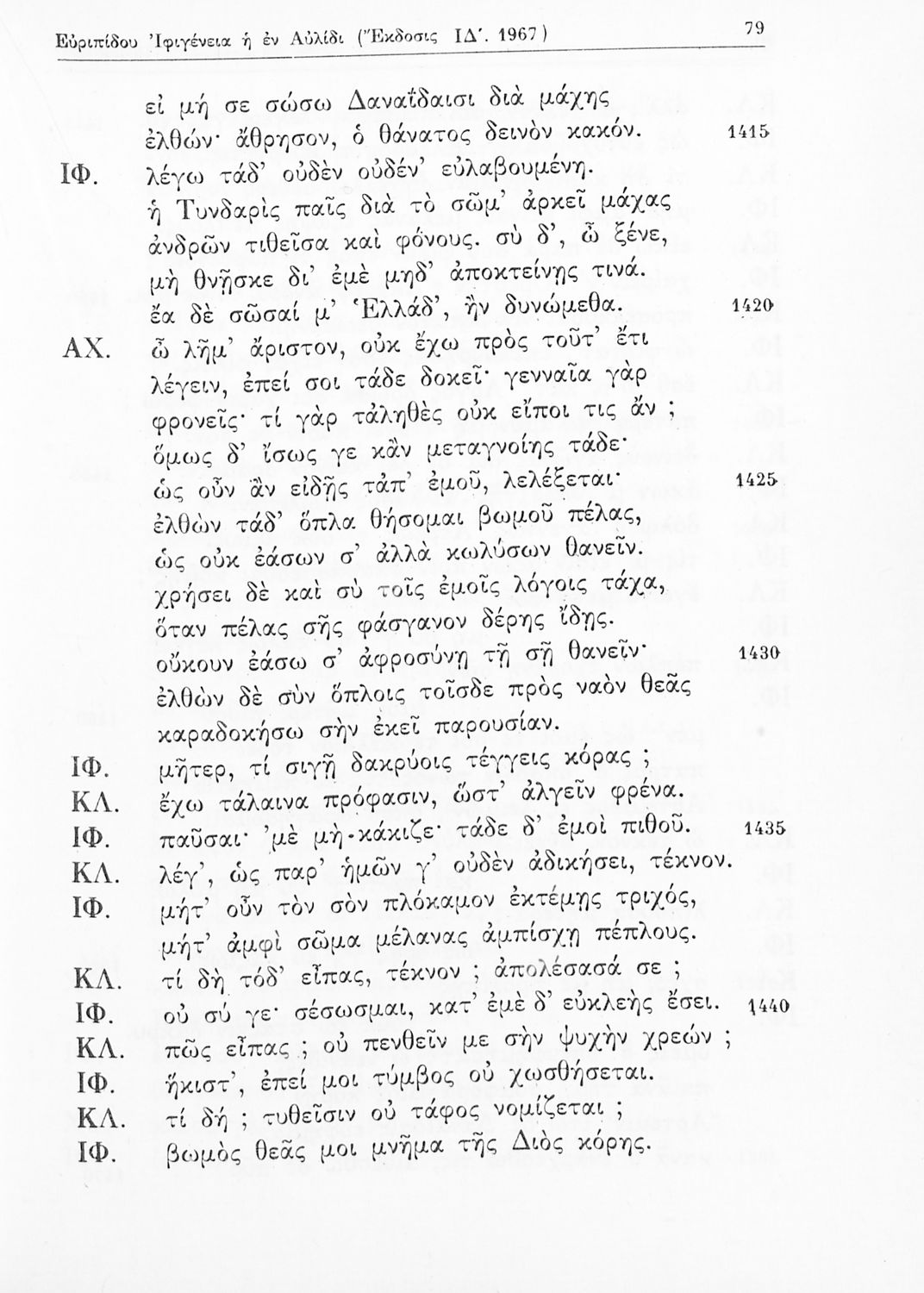Βαθμίδα εκπαίδευσης: Δευτεροβάθμια Τάξη: Β' Λυκείου Μάθημα: Αρχαία Ελληνικά Γλώσσα: Απλή καθαρεύουσα Παρουσίαση περιεχομένου: Σχολικό εγχειρίδιο Αρχαίων Ελληνικών Β΄ Λυκείου που περιέχει εισαγωγή στο αρχαίο δράμα και στη ζωή και το έργο του Ευριπίδη, αποσπάσματα από την Ιφιγένεια η εν Αυλίδι και την Ιφιγένεια η εν Ταύροις και ερμηνευτικά σχόλια. |