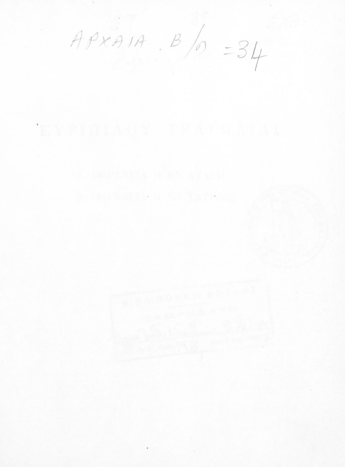 Βαθμίδα εκπαίδευσης: Δευτεροβάθμια Τάξη: Β' Λυκείου Μάθημα: Αρχαία Ελληνικά Γλώσσα: Απλή καθαρεύουσα Παρουσίαση περιεχομένου: Σχολικό εγχειρίδιο Αρχαίων Ελληνικών Β΄ Λυκείου που περιέχει εισαγωγή στο αρχαίο δράμα και στη ζωή και το έργο του Ευριπίδη, αποσπάσματα από την Ιφιγένεια η εν Αυλίδι και την Ιφιγένεια η εν Ταύροις και ερμηνευτικά σχόλια. |