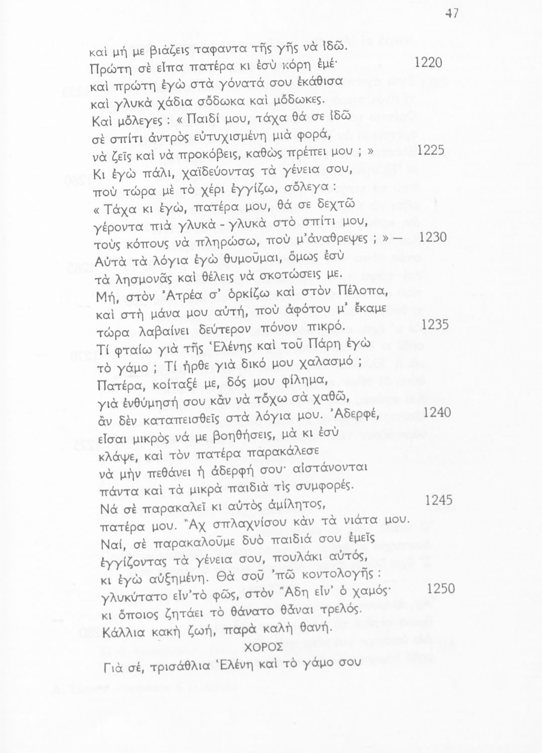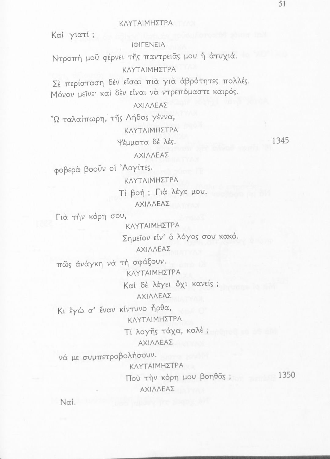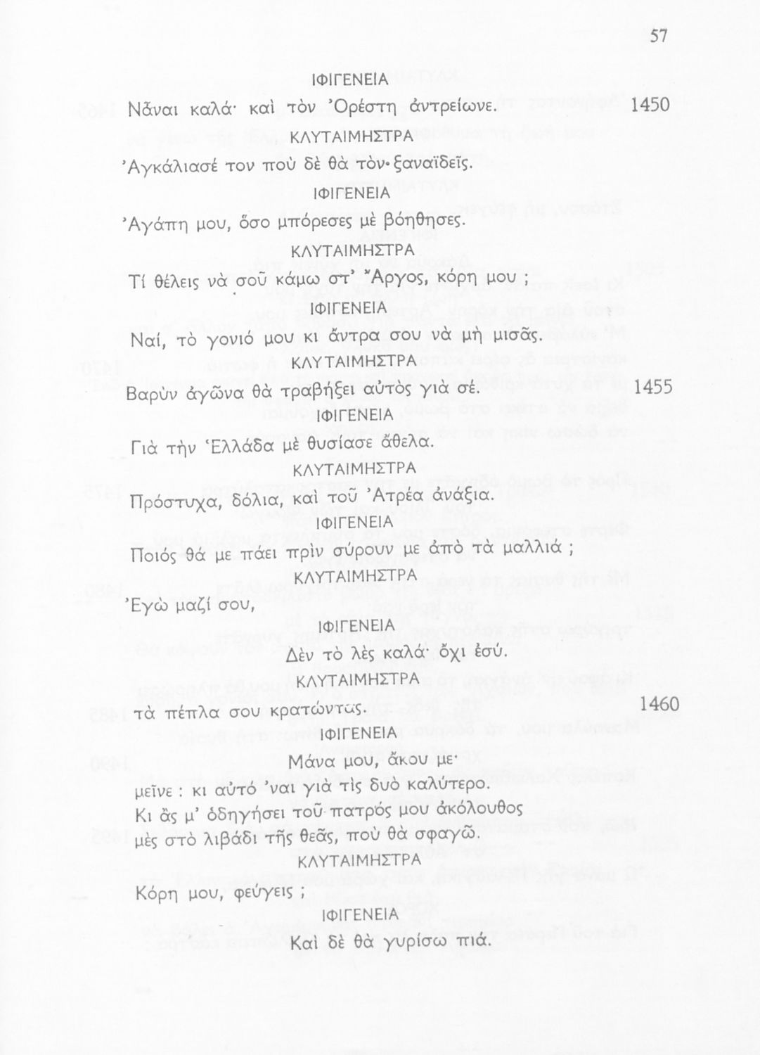 Σχολικό εγχειρίδιο Αρχαίων Ελληνικών Γ΄ Γυμνασίου που περιλαμβάνει το έργο του Ευριπίδη, Ιφιγένεια εν Αυλίδι σε μετάφραση και ερμηνευτικά και γλωσσολογικά σχόλια. Στο εξώφυλλο απεικονίζεται η Μαντώ Μαυρογένους. Φέρει το σύμβολο της δικτατορίας.