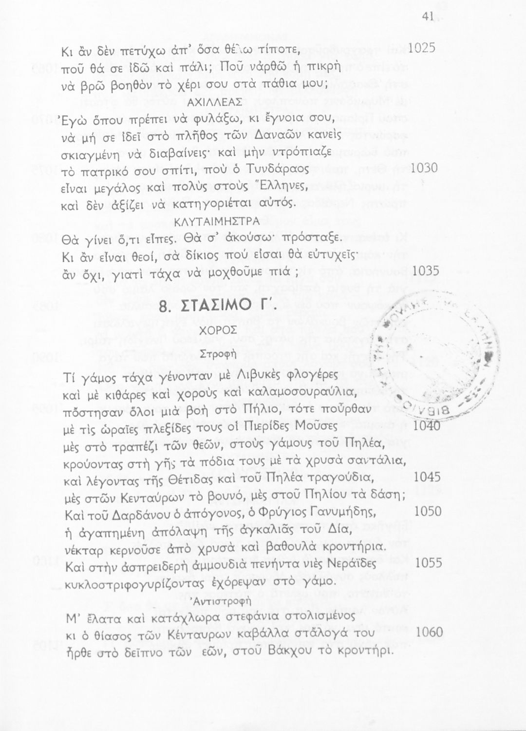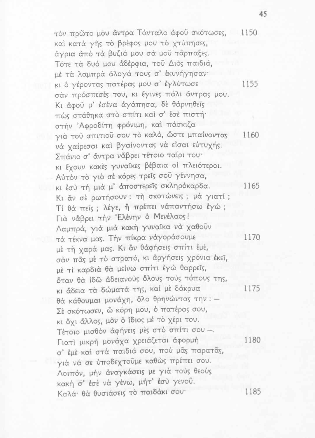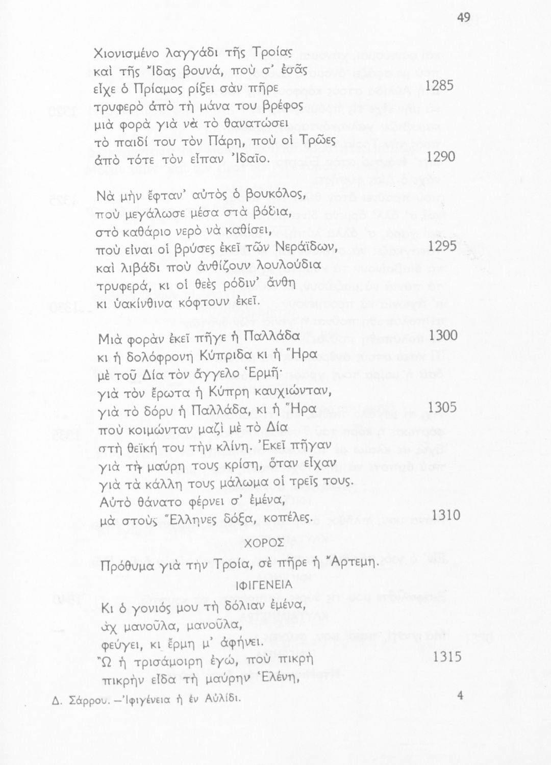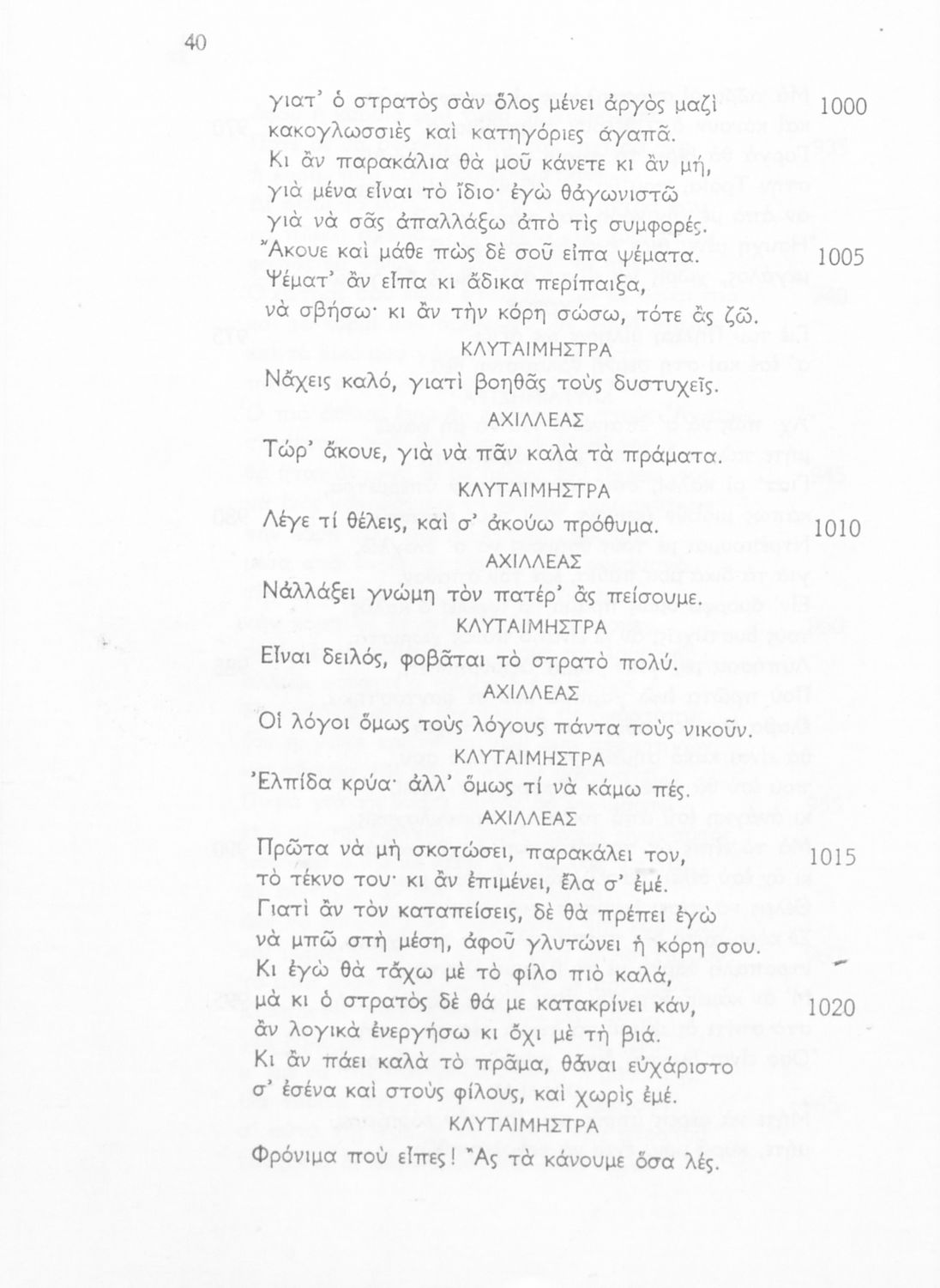 Σχολικό εγχειρίδιο Αρχαίων Ελληνικών Γ΄ Γυμνασίου που περιλαμβάνει το έργο του Ευριπίδη, Ιφιγένεια εν Αυλίδι σε μετάφραση και ερμηνευτικά και γλωσσολογικά σχόλια. Στο εξώφυλλο απεικονίζεται η Μαντώ Μαυρογένους. Φέρει το σύμβολο της δικτατορίας.