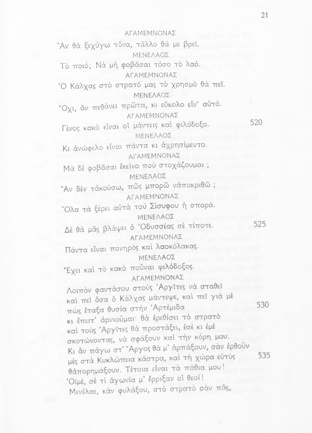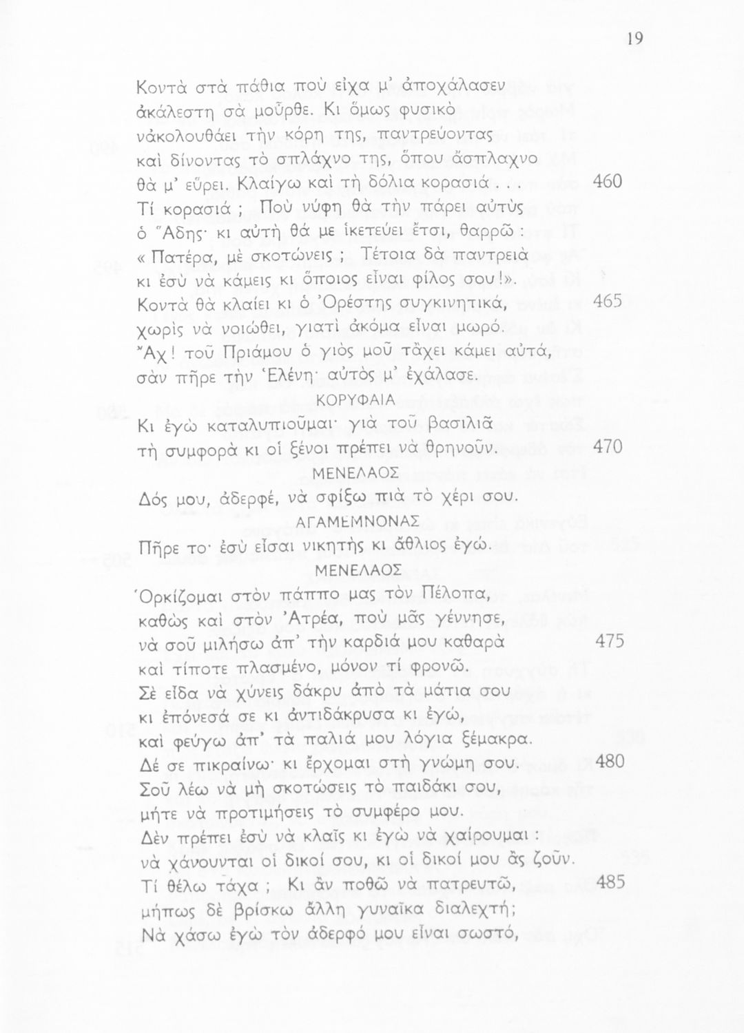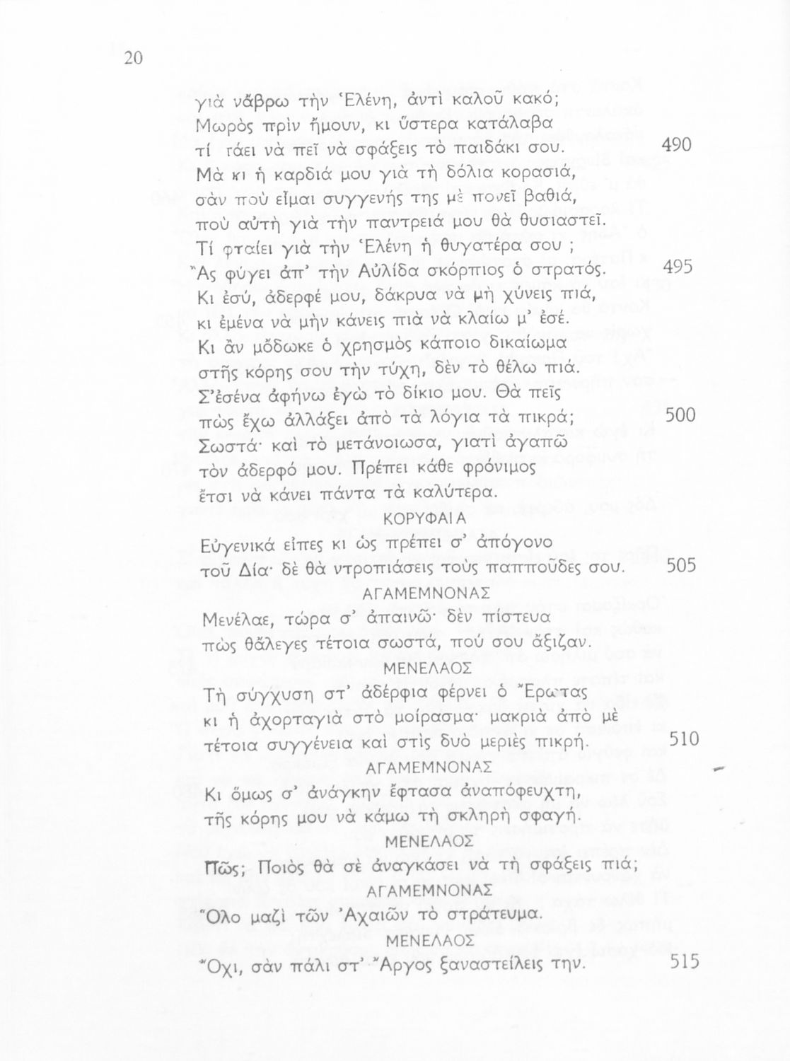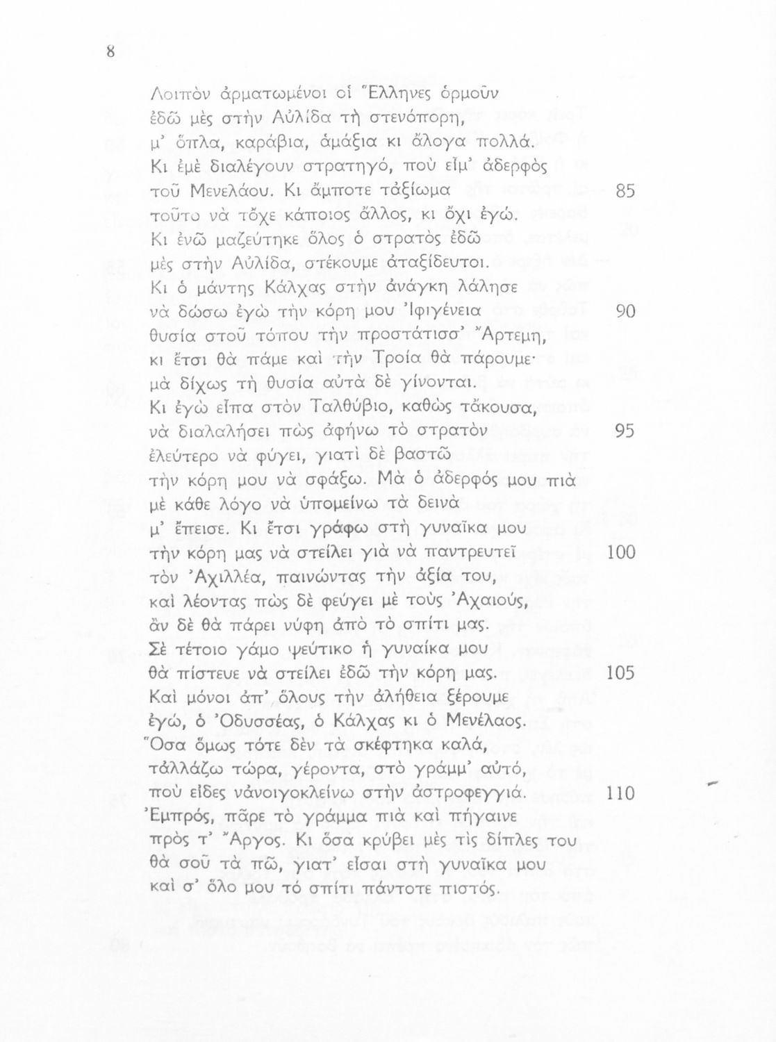 Ιφιγένεια η εν Αυλίδι, κατά μετάφρασιν Δημήτριου Σάρρου, Γ΄ Γυμνασίου