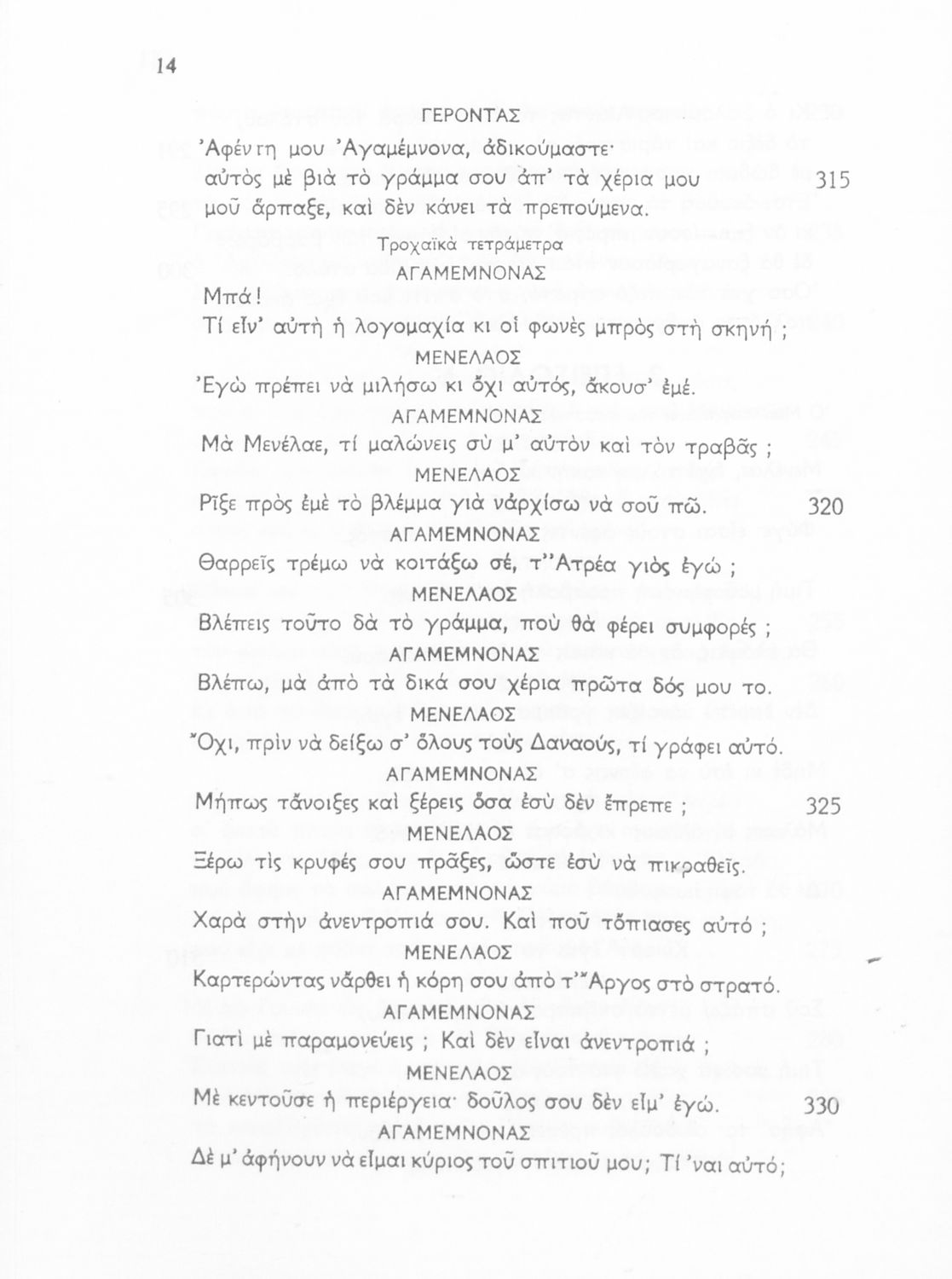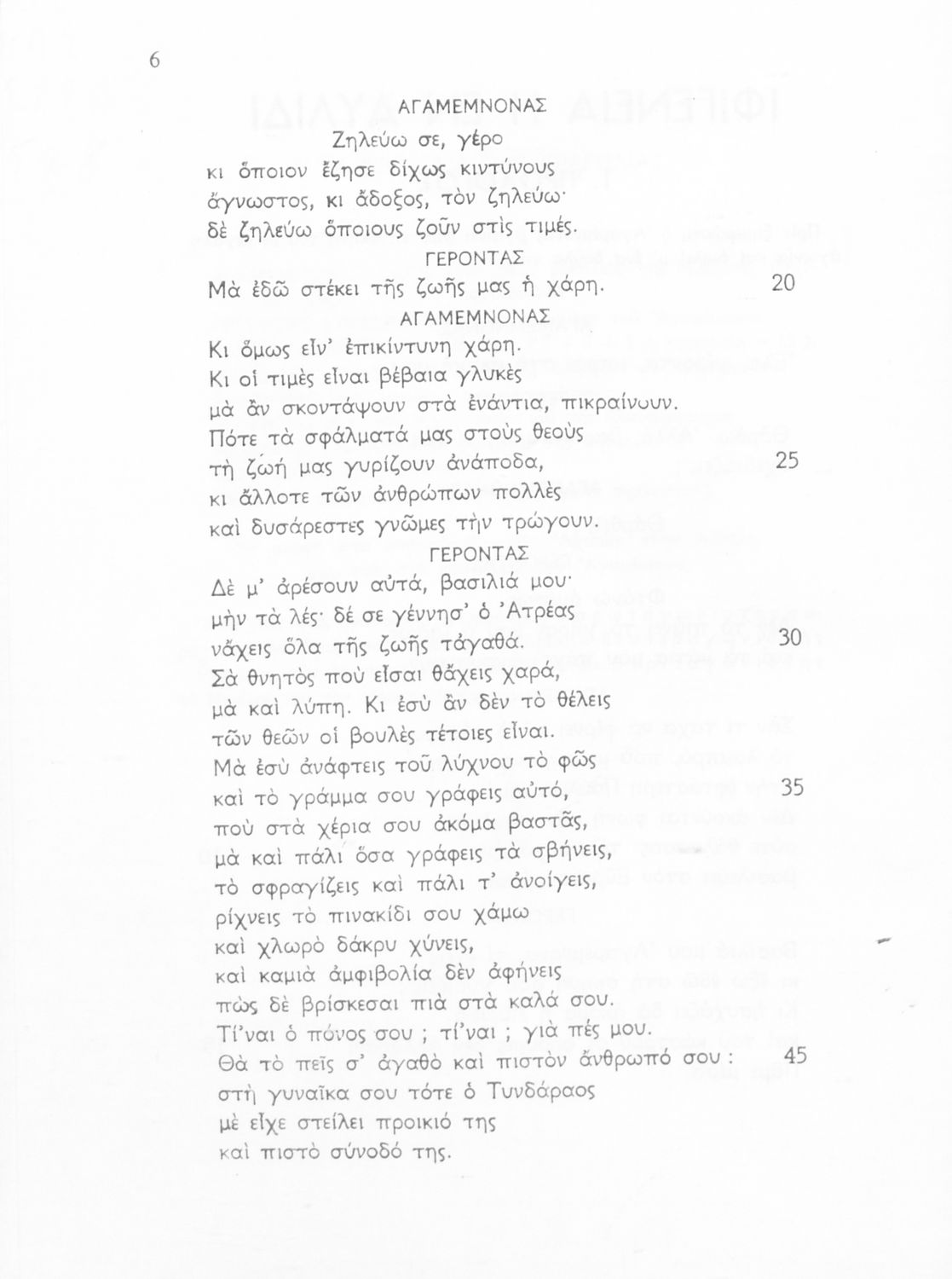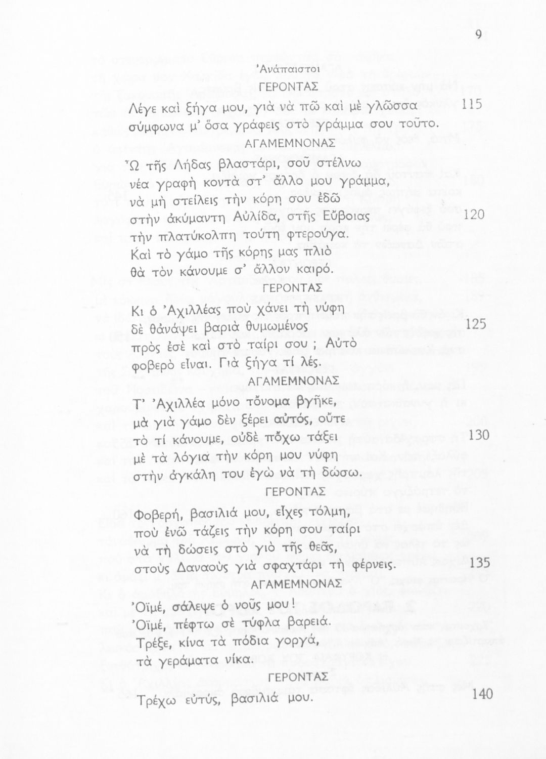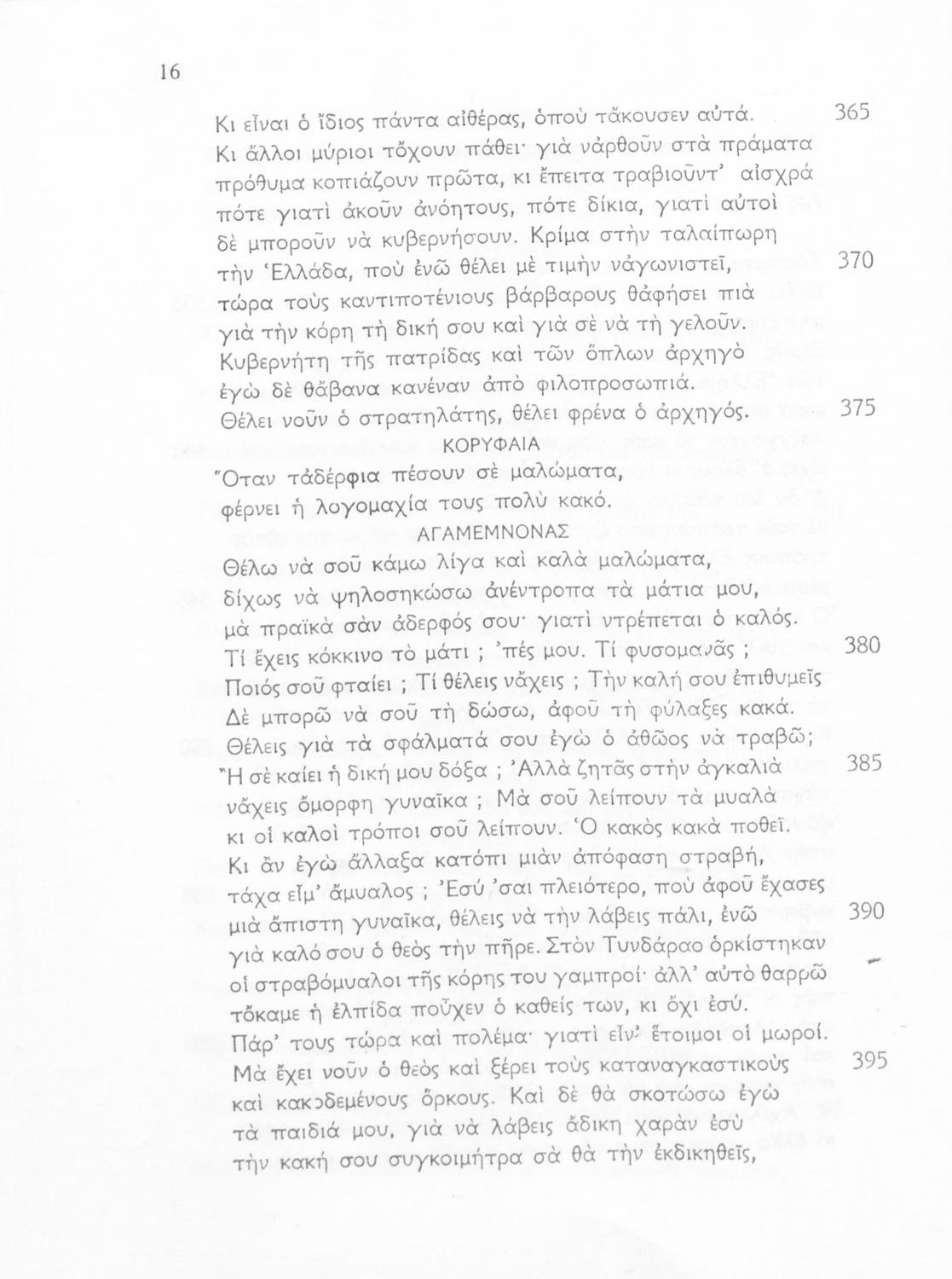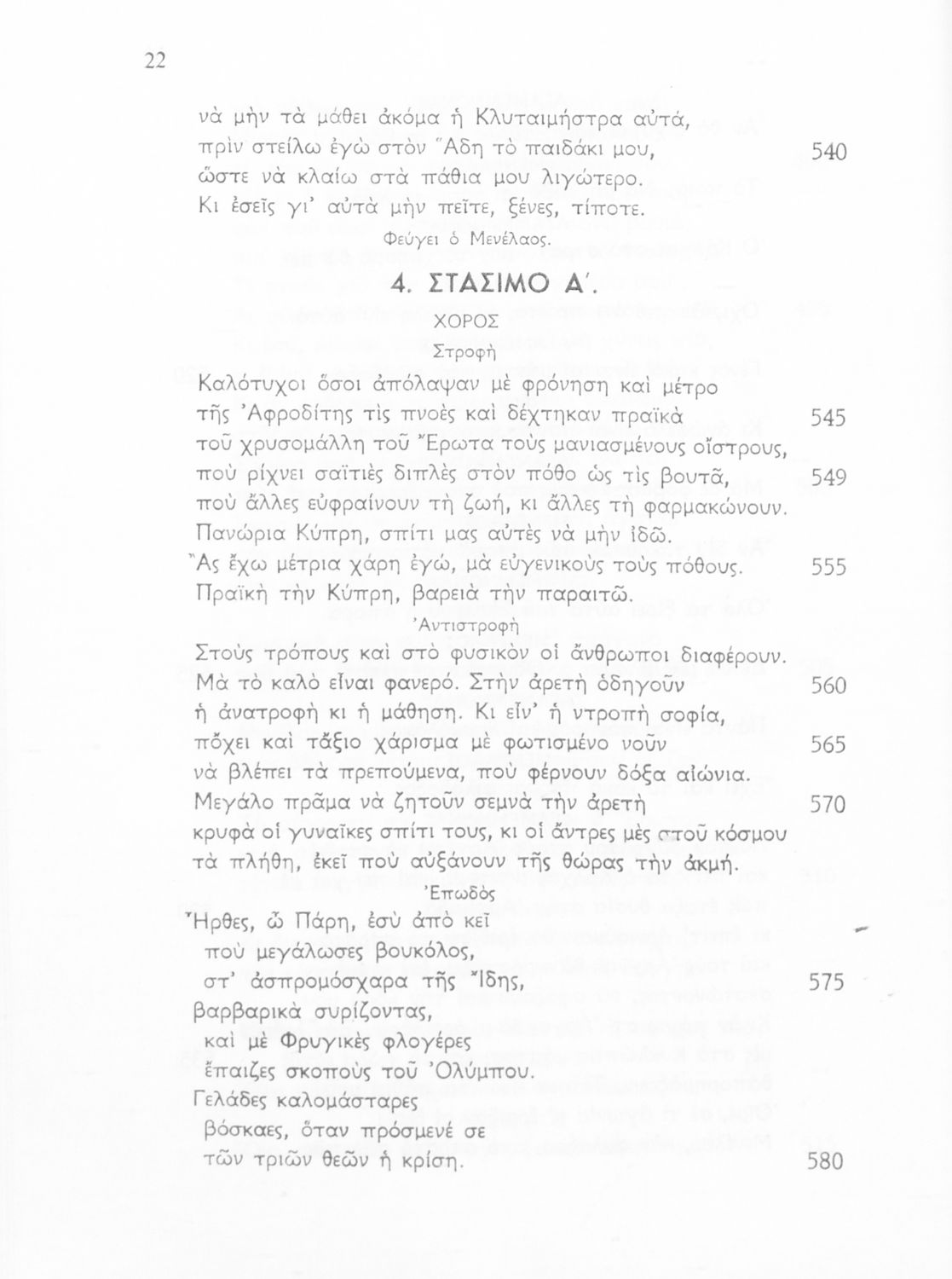 Ιφιγένεια η εν Αυλίδι, κατά μετάφρασιν Δημήτριου Σάρρου, Γ΄ Γυμνασίου