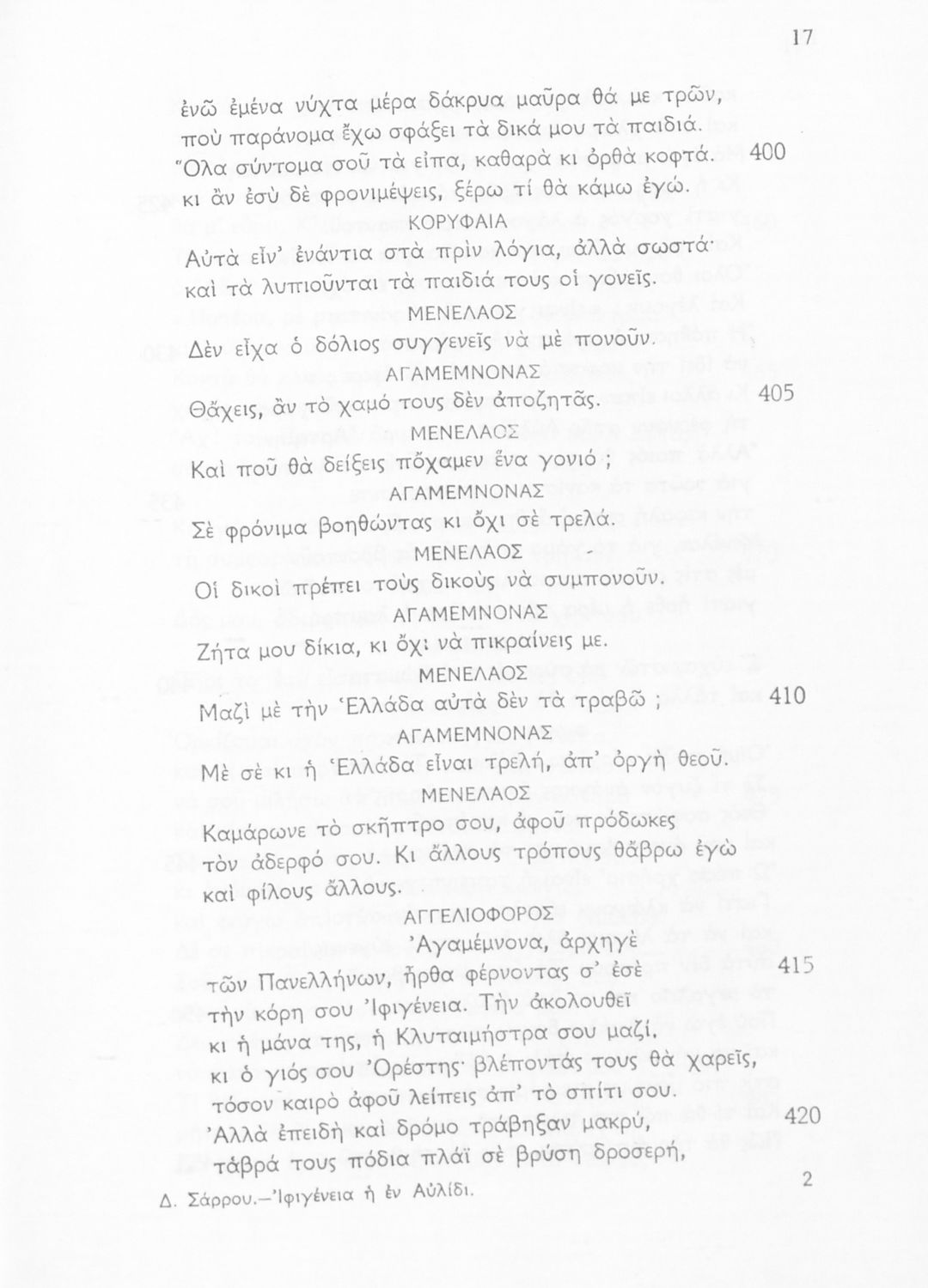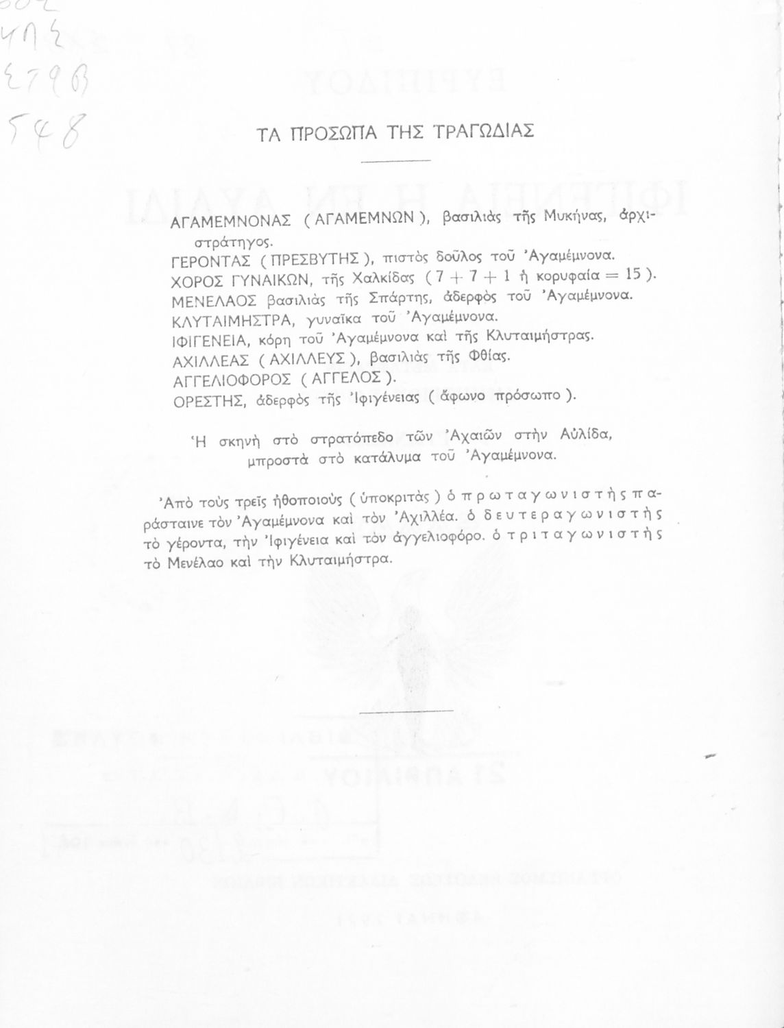 Τίτλος: Ιφιγένεια η εν Αυλίδι, κατά μετάφρασιν Δημήτριου Σάρρου, Γ΄ Γυμνασίου