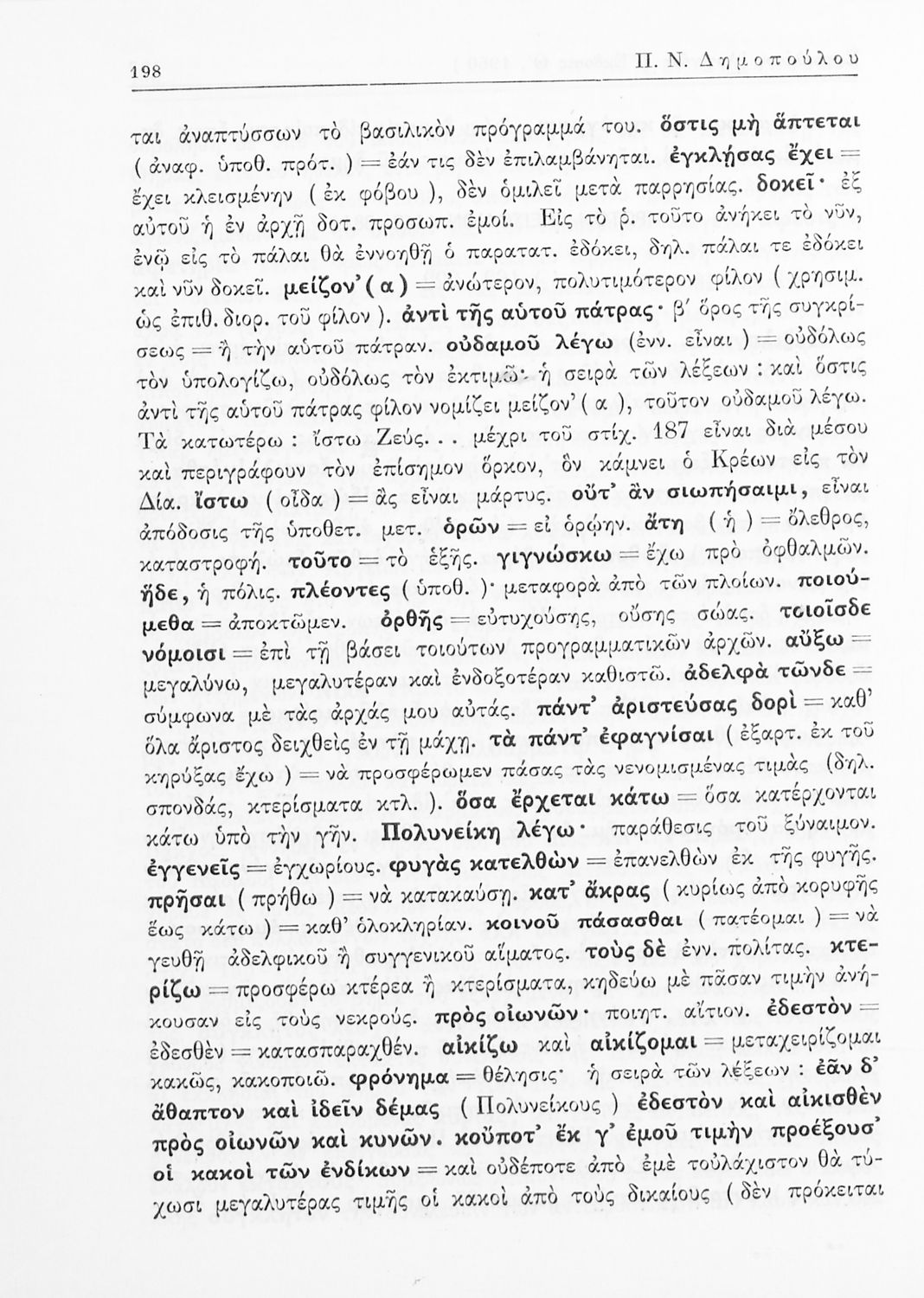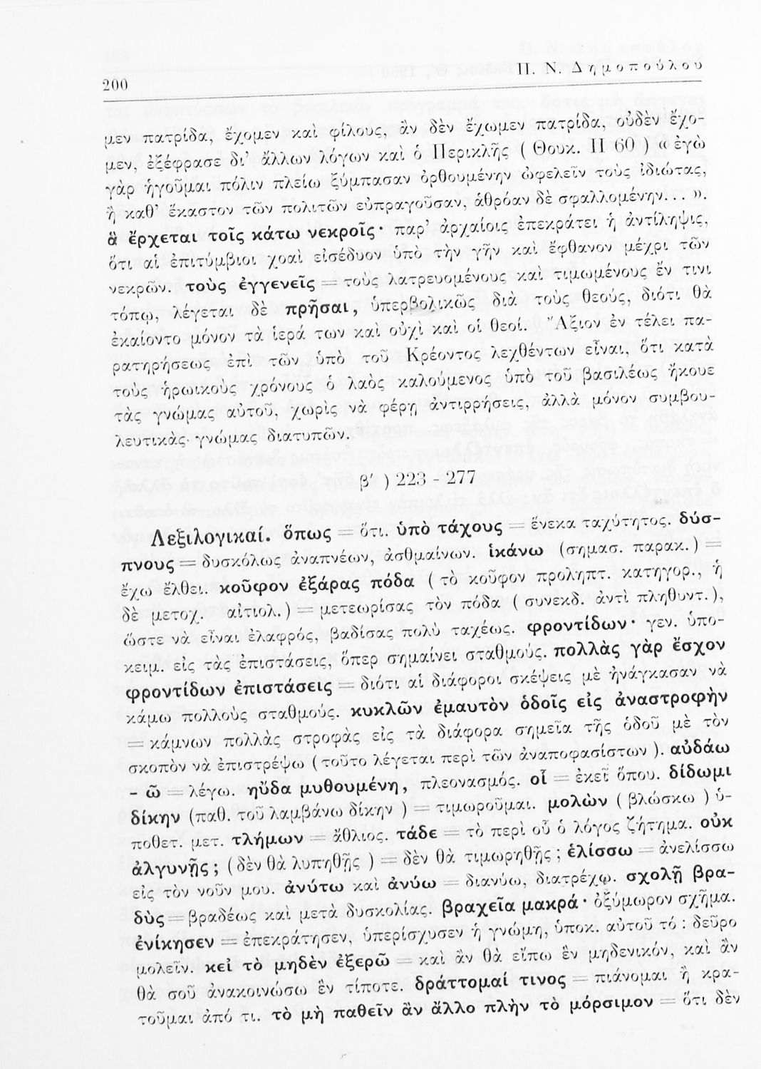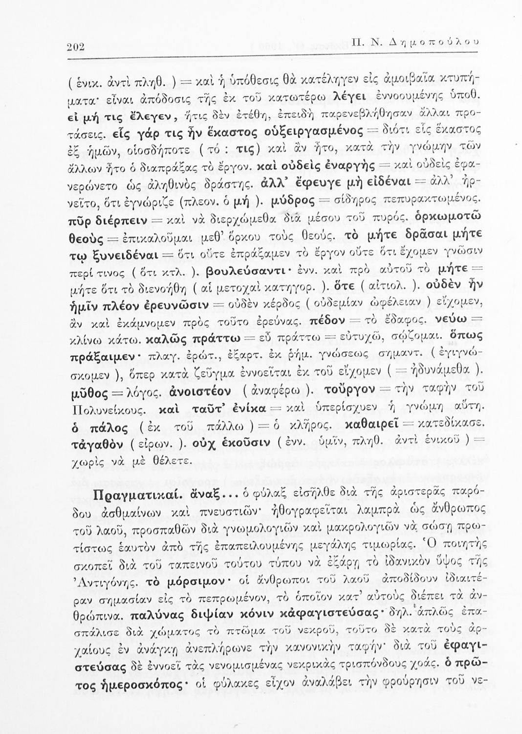Σοφοκλής, Π. Ν Δημόπουλος (σχόλια)