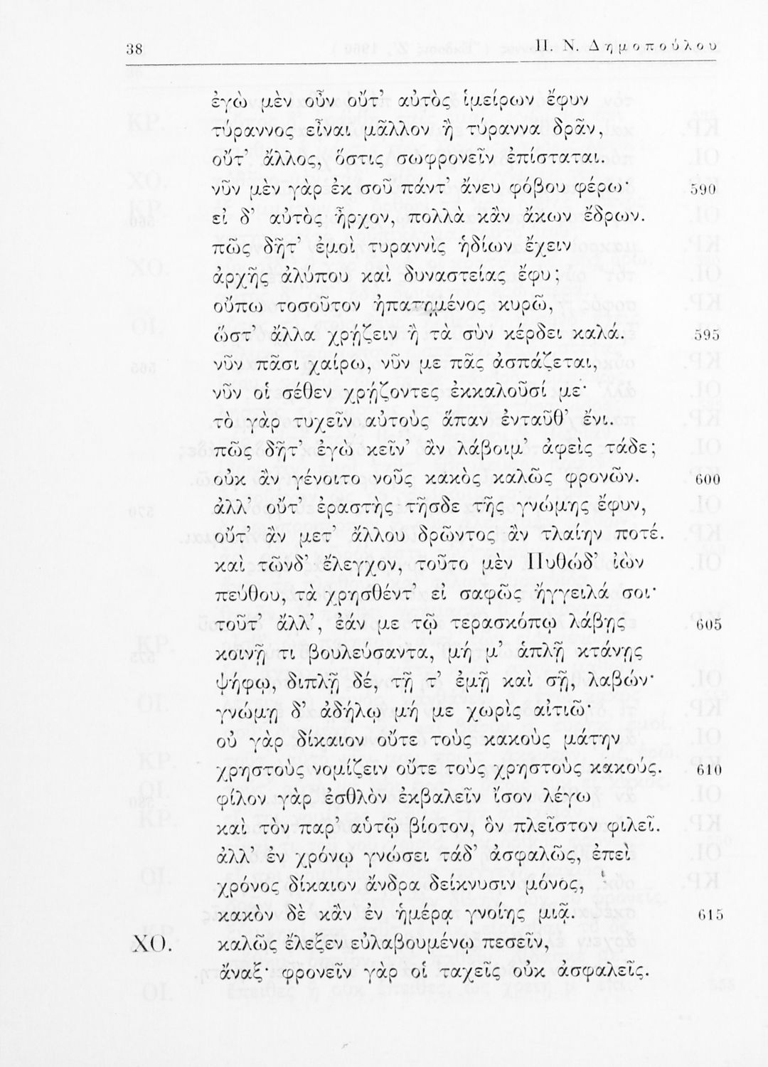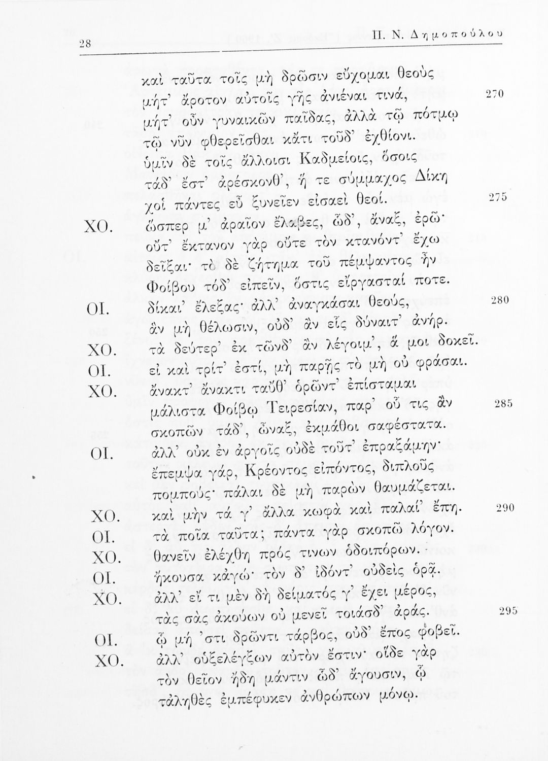Σοφοκλής, Π. Ν. Δημόπουλος (σχόλια)