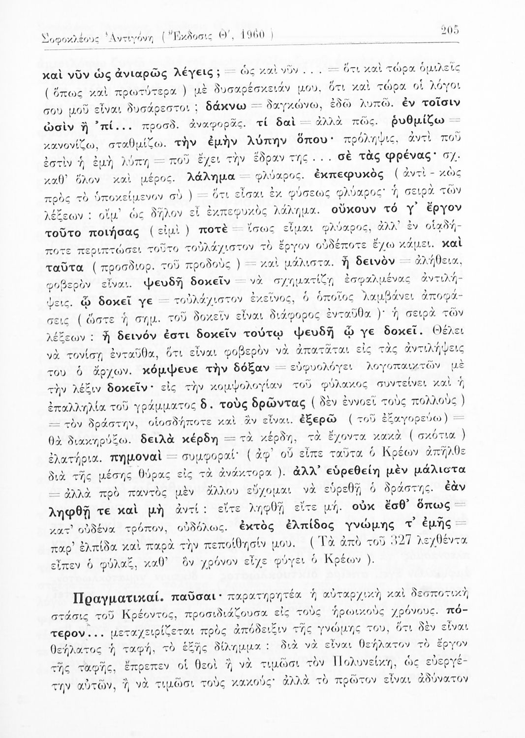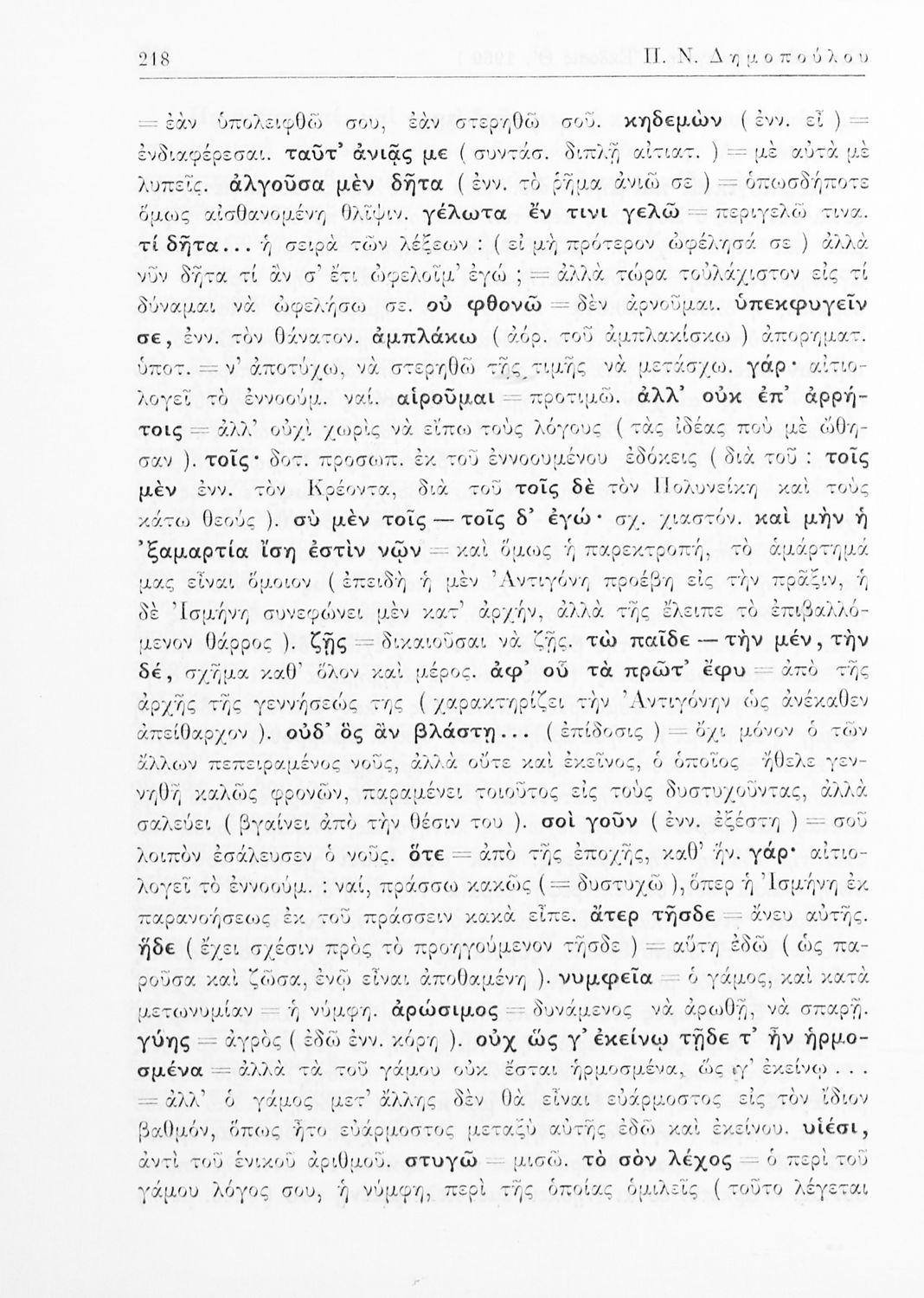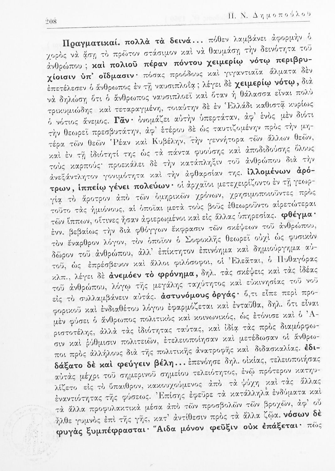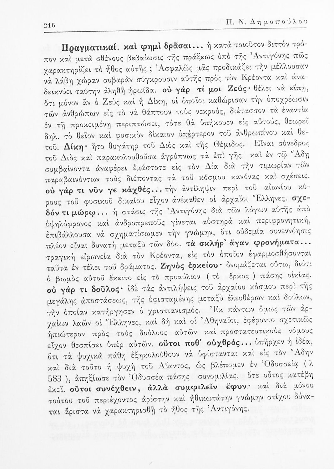 Σοφοκλής, Π. Ν. Δημόπουλος (σχόλια)