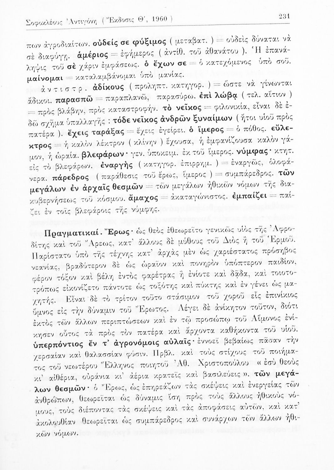 Σχολικό εγχειρίδιο Αρχαίων Ελληνικών του Γυμνασίου. Το βιβλίο περιέχει τις δύο τραγωδίες του Σοφοκλή, τον Οιδίπους Τύραννο και την Αντιγόνη. Στο βιβλίο τα έργα συνοδεύονται από γλωσσολογικές σημειώσεις και αναλύσεις περιεχομένου.