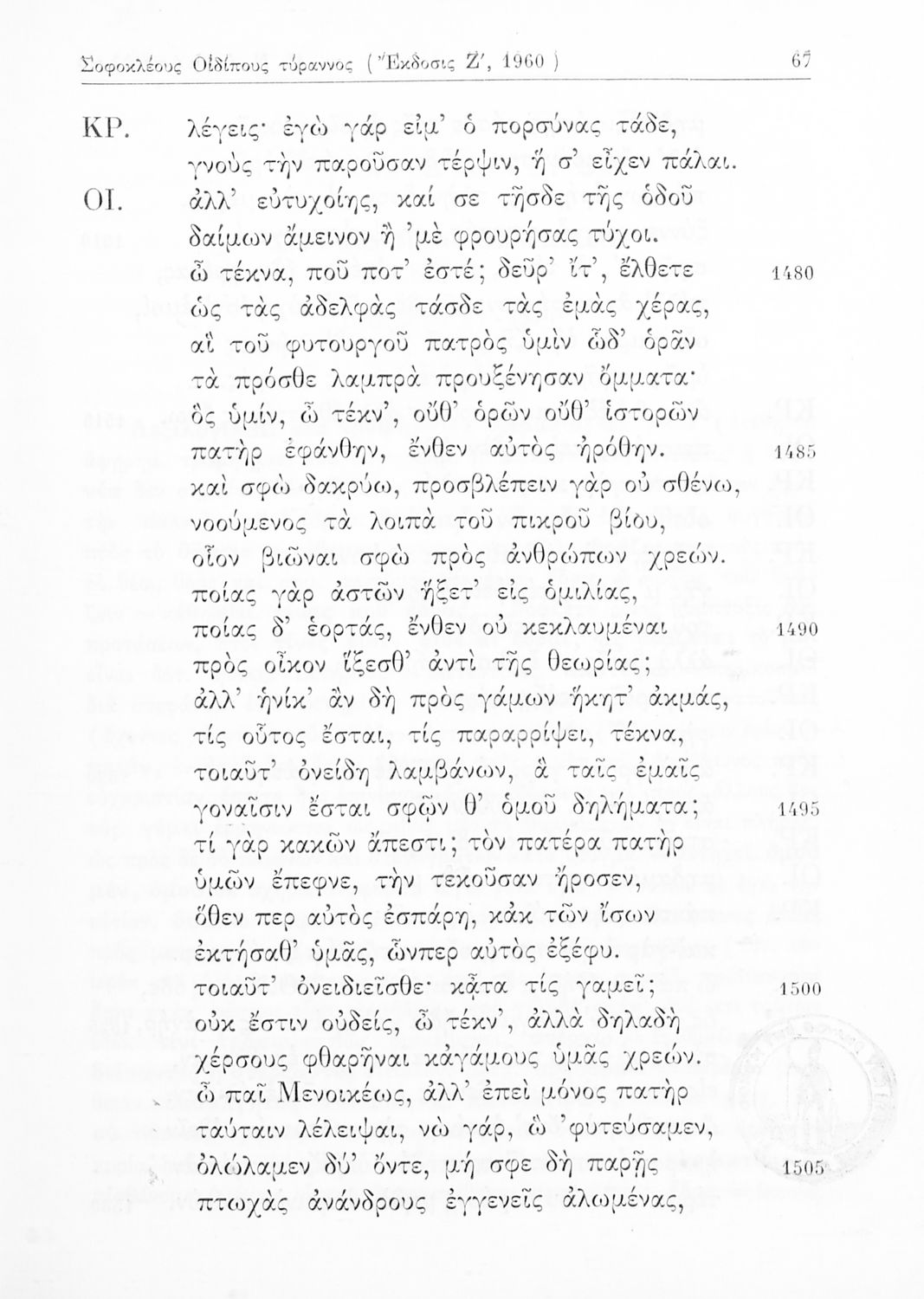 Σχολικό εγχειρίδιο Αρχαίων Ελληνικών του Γυμνασίου. Το βιβλίο περιέχει τις δύο τραγωδίες του Σοφοκλή, τον Οιδίπους Τύραννο και την Αντιγόνη. Στο βιβλίο τα έργα συνοδεύονται από γλωσσολογικές σημειώσεις και αναλύσεις περιεχομένου.