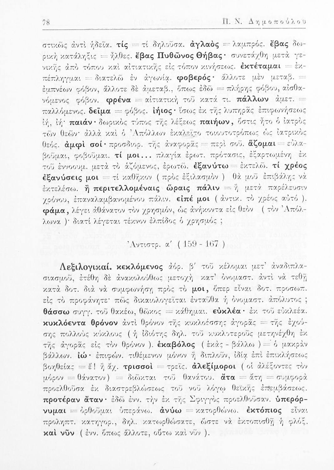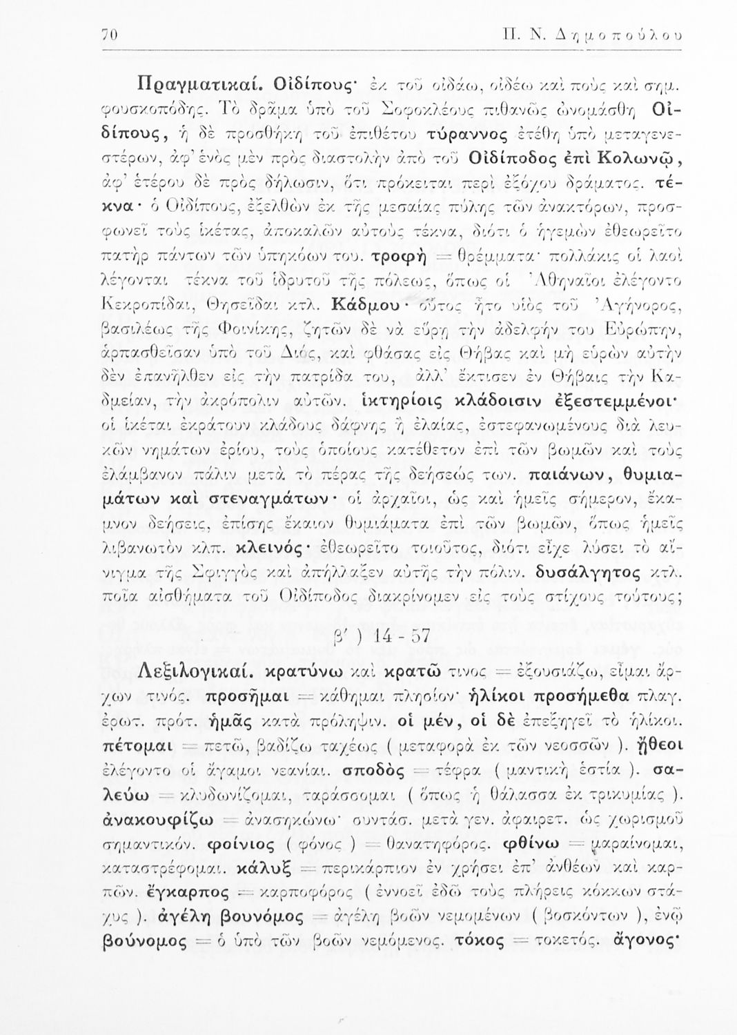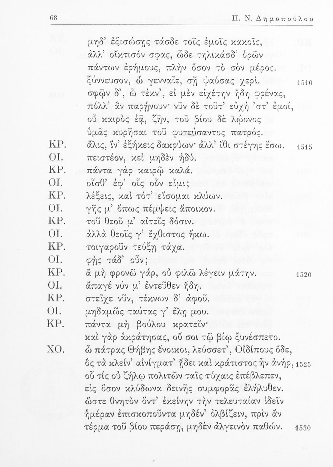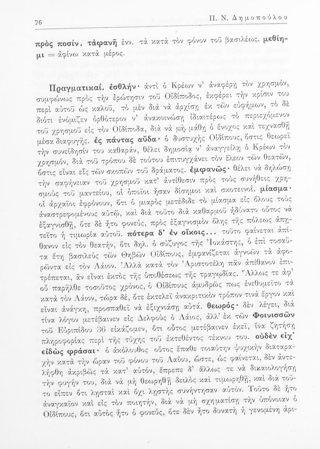 Σοφοκλής, Π. Ν. Δημόπουλος (σχόλια)