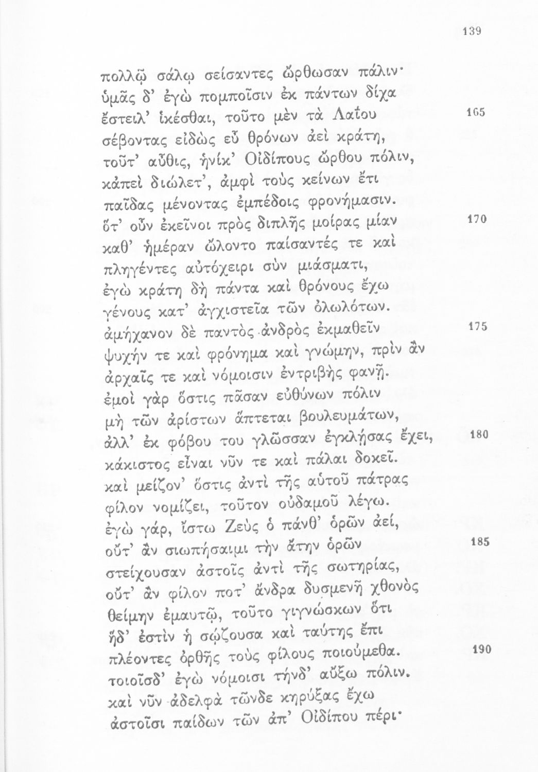 Σχολικό εγχειρίδιο Αρχαίων Ελληνικών που περιλαμβάνει τις τραγωδίες του Σοφοκλή Οιδίπους Τύραννος και Αντιγόνη, εισαγωγή και ερμηνευτικά σχόλια.