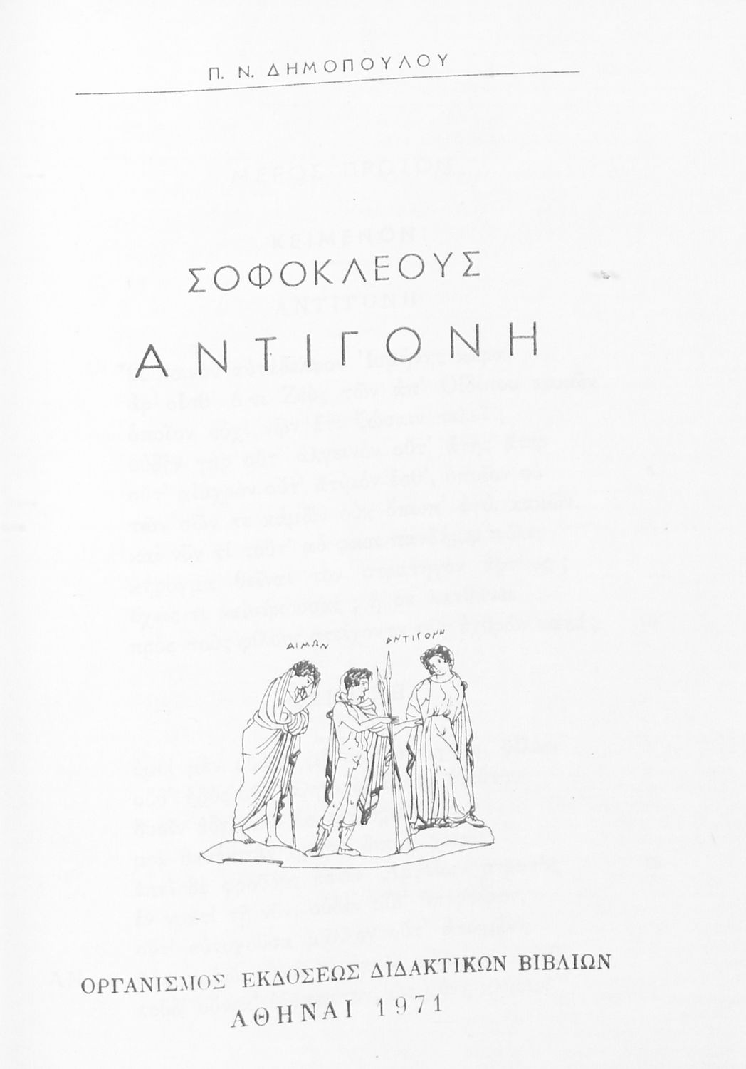 Σχολικό εγχειρίδιο Αρχαίων Ελληνικών της ΣΤ΄ Γυμνασίου. Το βιβλίο περιέχει δύο τραγωδίες του Σοφοκλή, τον Οιδίπους Τύραννο και την Αντιγόνη. Τα έργα αυτά συνοδεύονται από αναλύσεις λεξιλογικές και αναφορικά με
