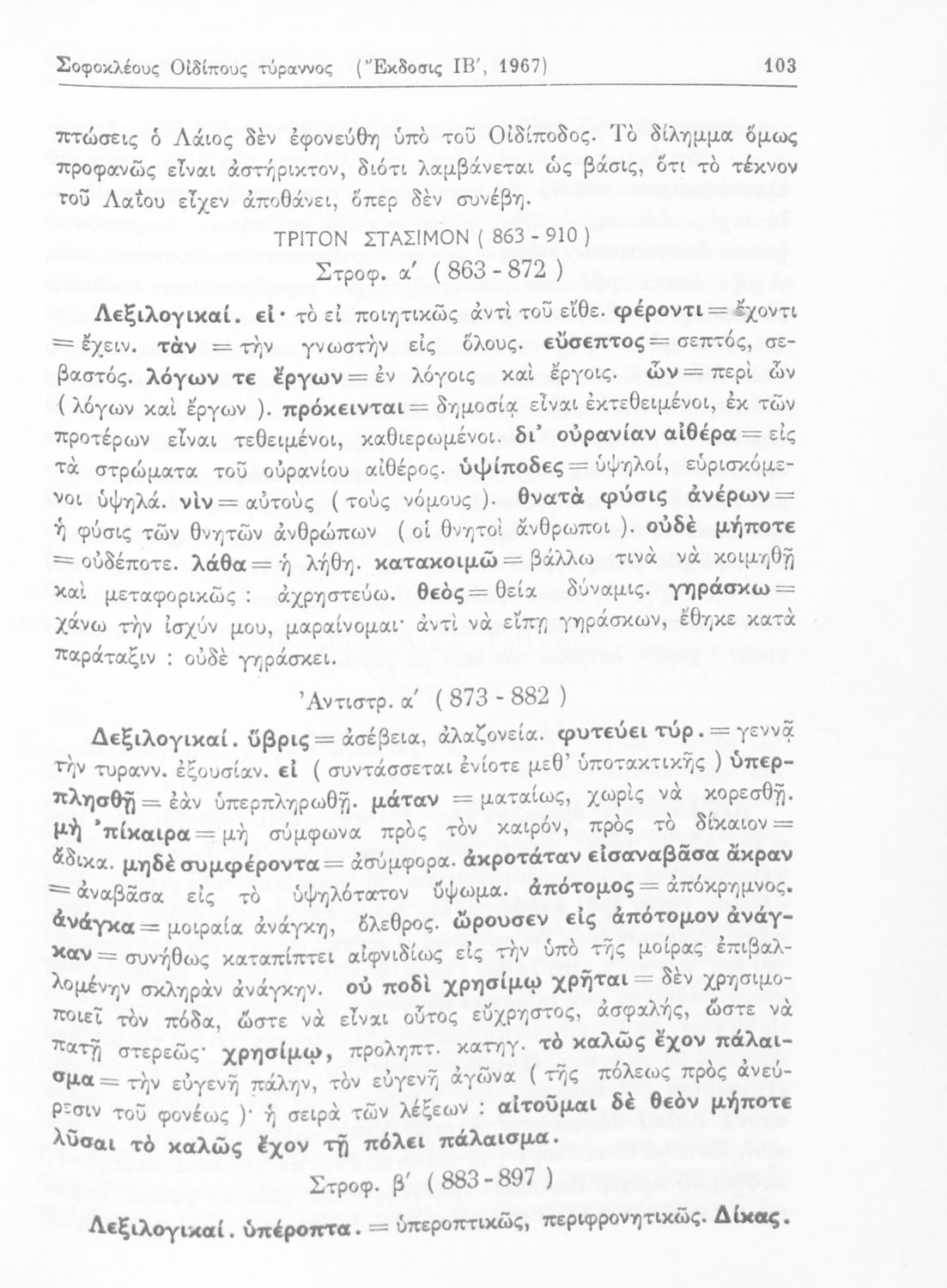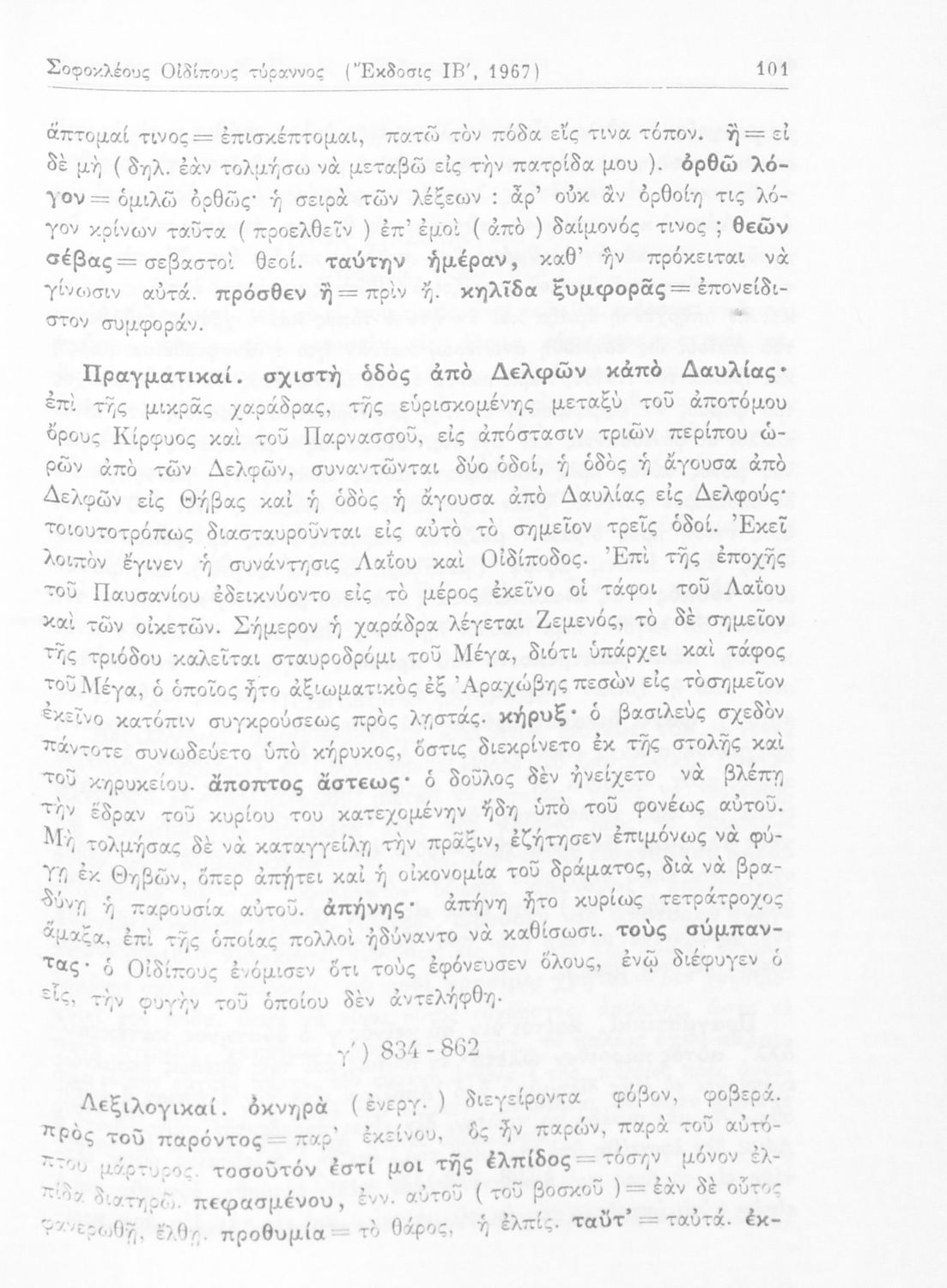 Σχολικό εγχειρίδιο της Γ΄ Λυκείου για το μάθημα των Αρχαίων Ελληνικών. Περιέχει τις τραγωδίες του Σοφοκλή Οιδίπους Τύραννος και Αντιγόνη. Τα κείμενα συνοδεύονται από ερμηνευτικές και λεξιλογικές παρατηρήσεις του συγγραφέα.