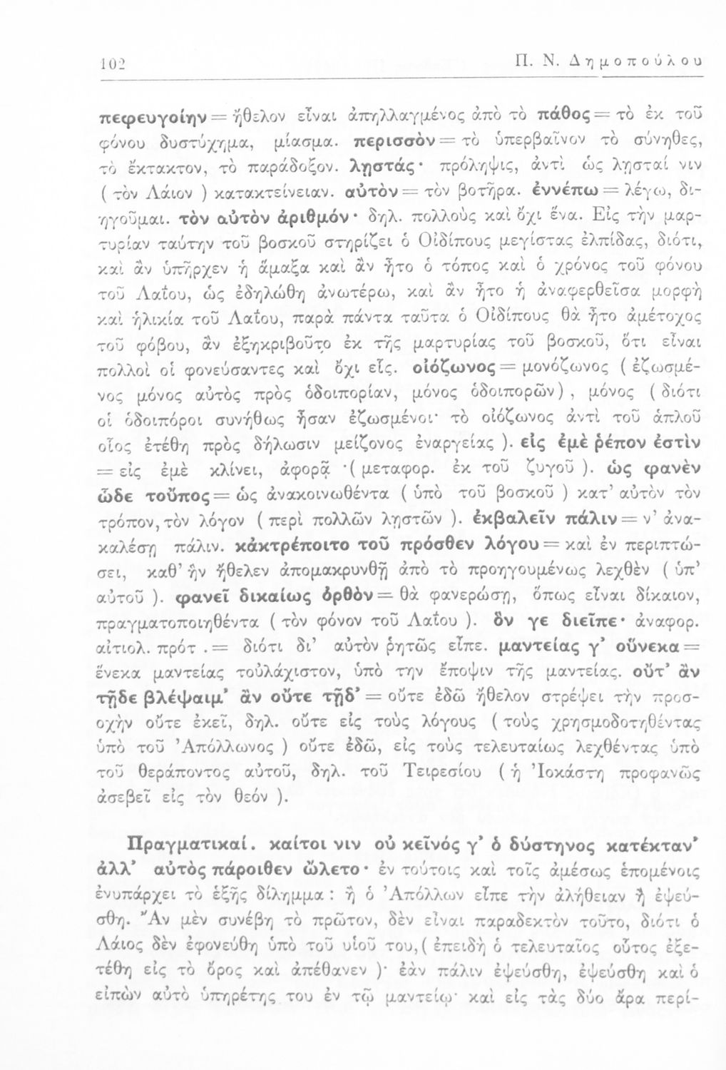 Σοφοκλής, Π.Ν. Δημόπουλος (σχόλια)