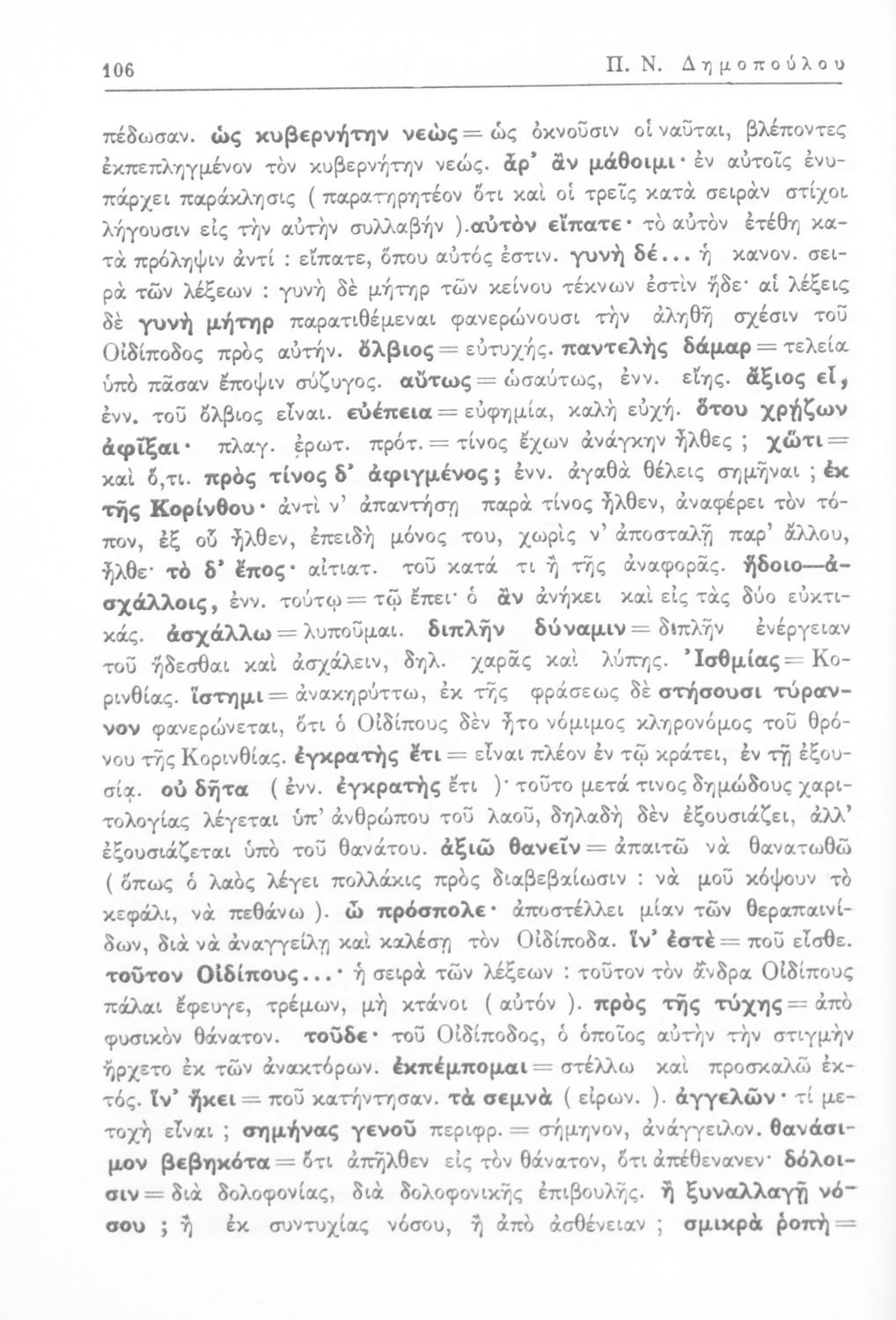 Σοφοκλής, Π. Ν Δημόπουλος (σχόλια)