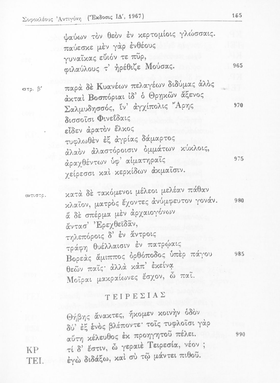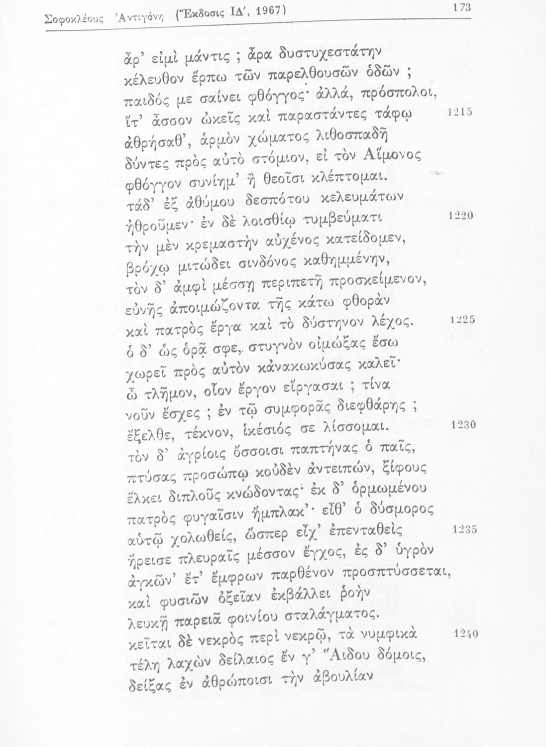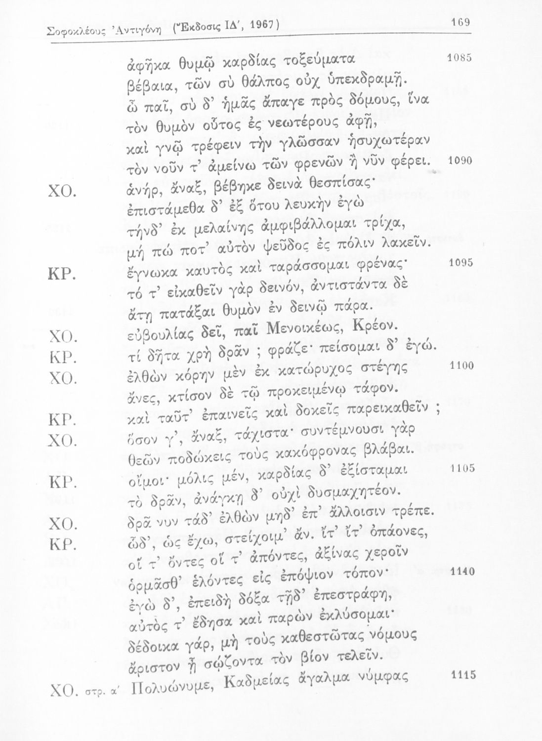 Σχολικό εγχειρίδιο της Γ΄ Λυκείου για το μάθημα των Αρχαίων Ελληνικών. Περιέχει τις τραγωδίες του Σοφοκλή Οιδίπους Τύραννος και Αντιγόνη. Τα κείμενα συνοδεύονται από ερμηνευτικές και λεξιλογικές παρατηρήσεις του συγγραφέα.