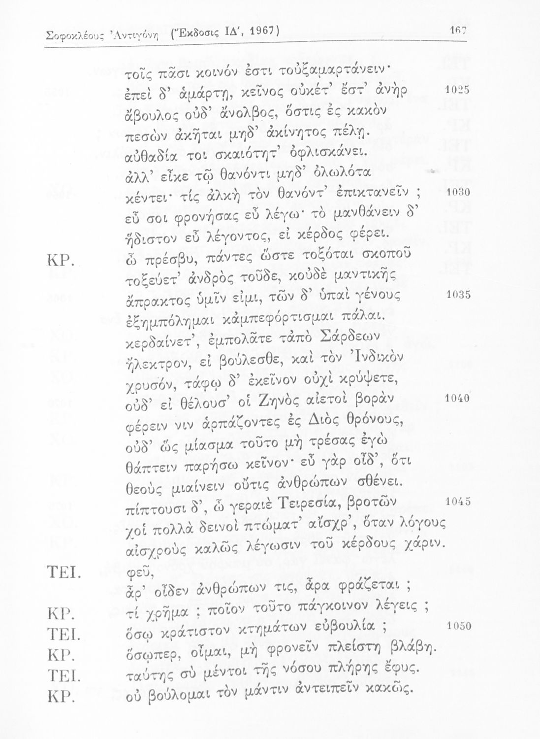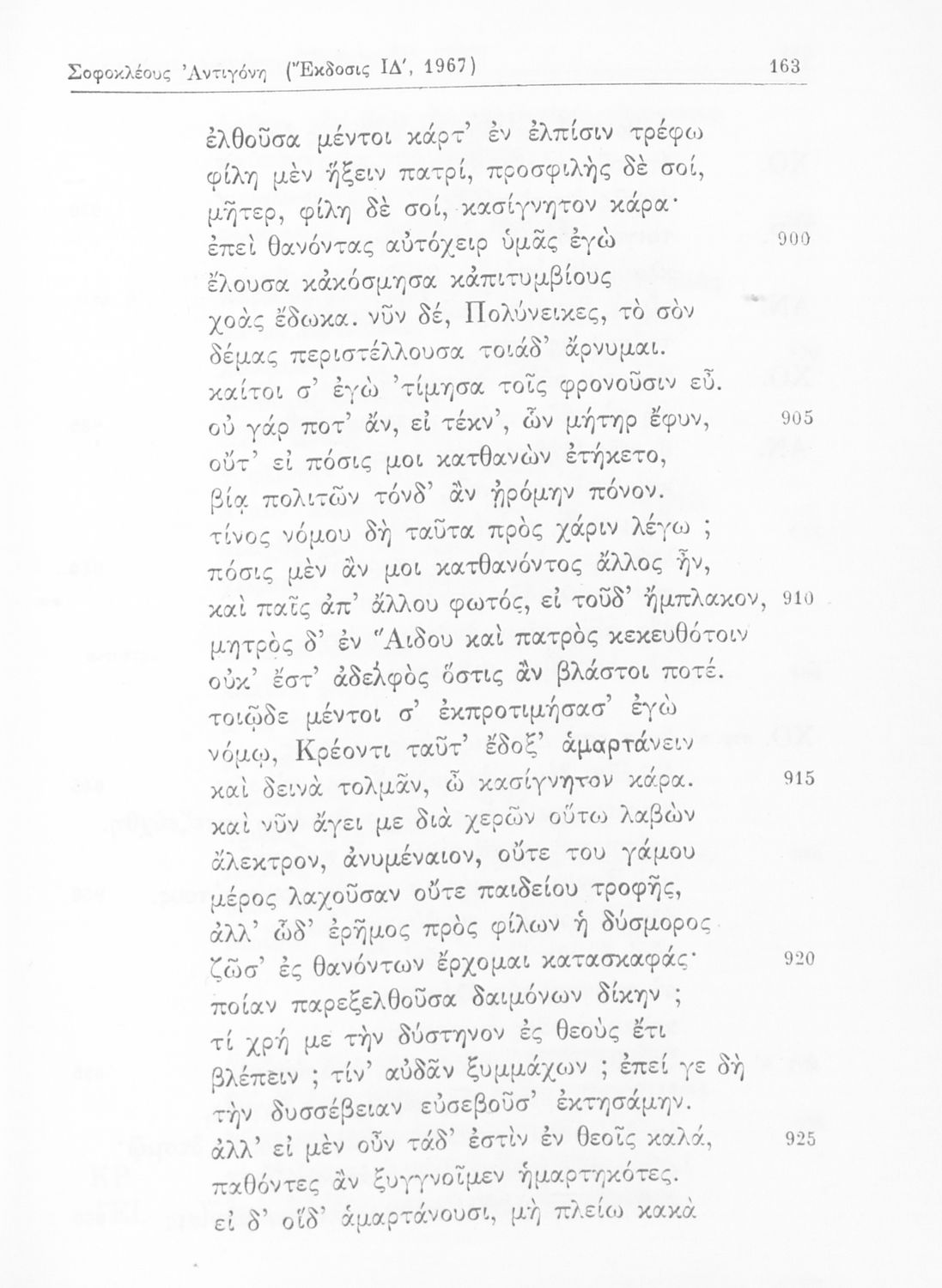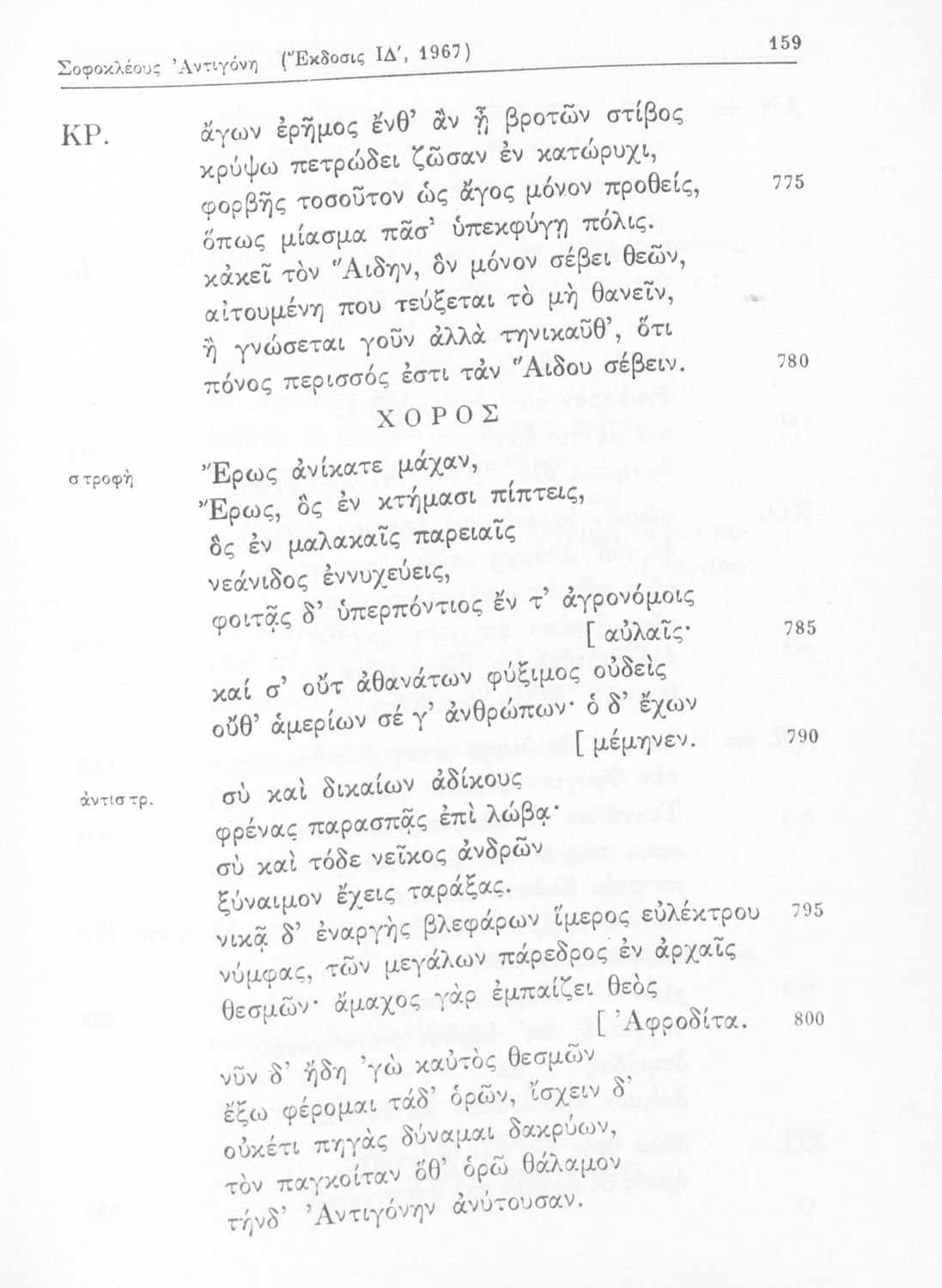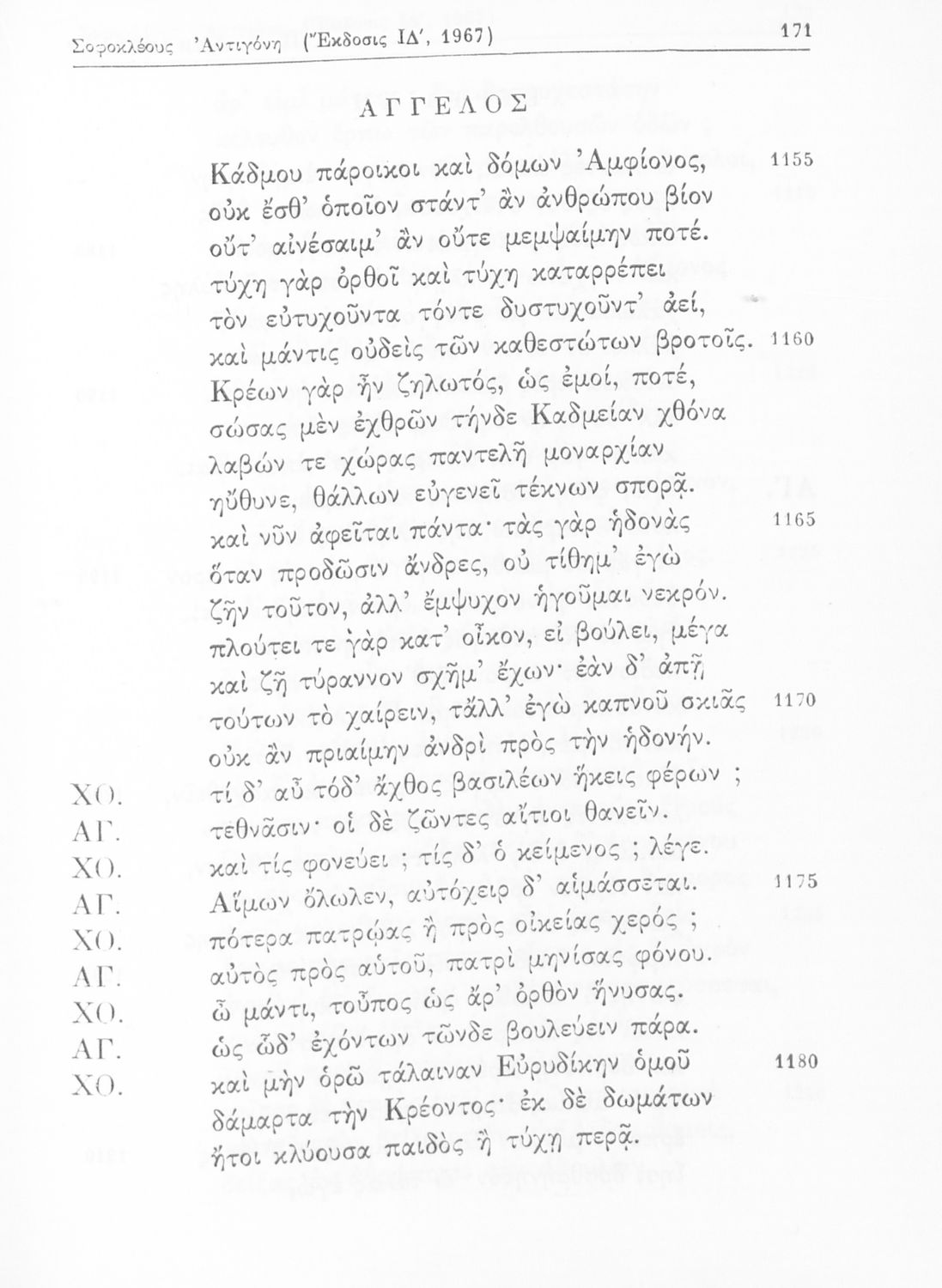 Σχολικό εγχειρίδιο της Γ΄ Λυκείου για το μάθημα των Αρχαίων Ελληνικών. Περιέχει τις τραγωδίες του Σοφοκλή Οιδίπους Τύραννος και Αντιγόνη. Τα κείμενα συνοδεύονται από ερμηνευτικές και λεξιλογικές παρατηρήσεις του συγγραφέα.