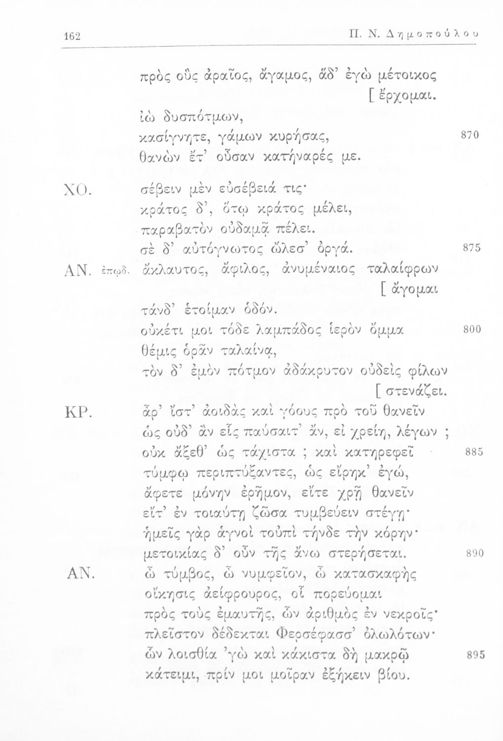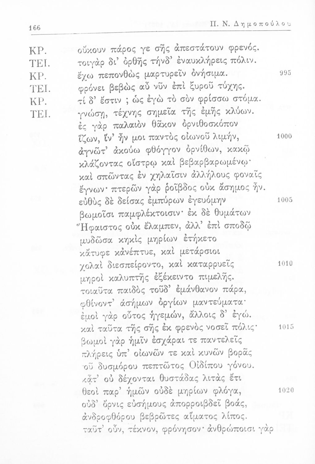 Σοφοκλής, Π. Ν Δημόπουλος (σχόλια)