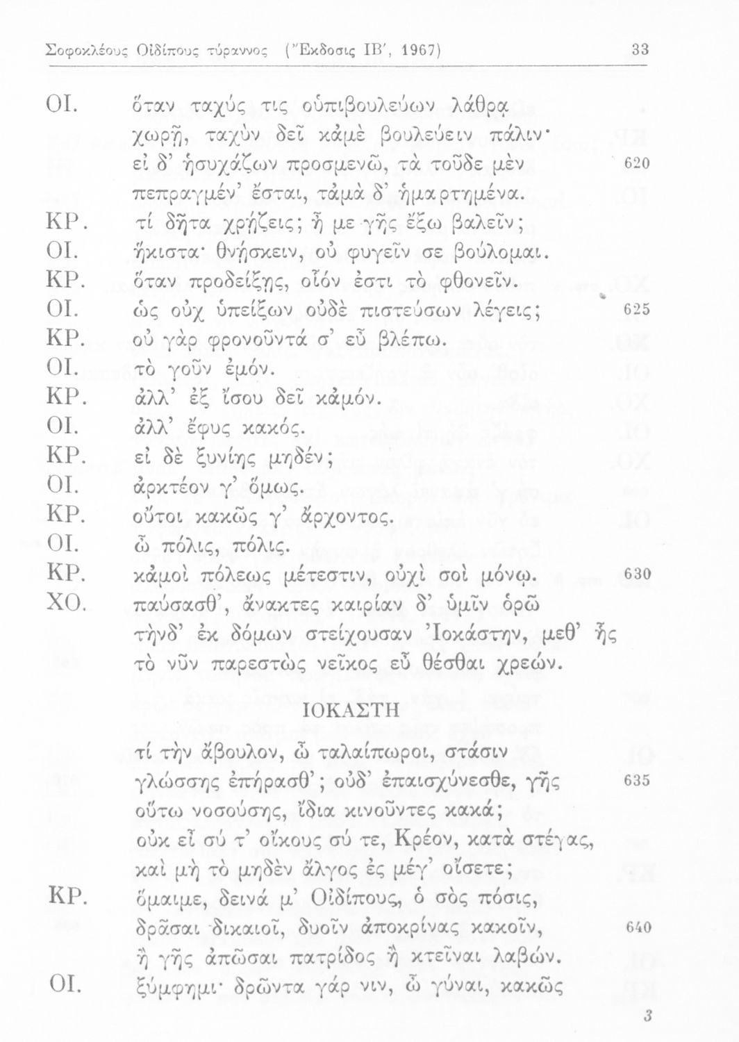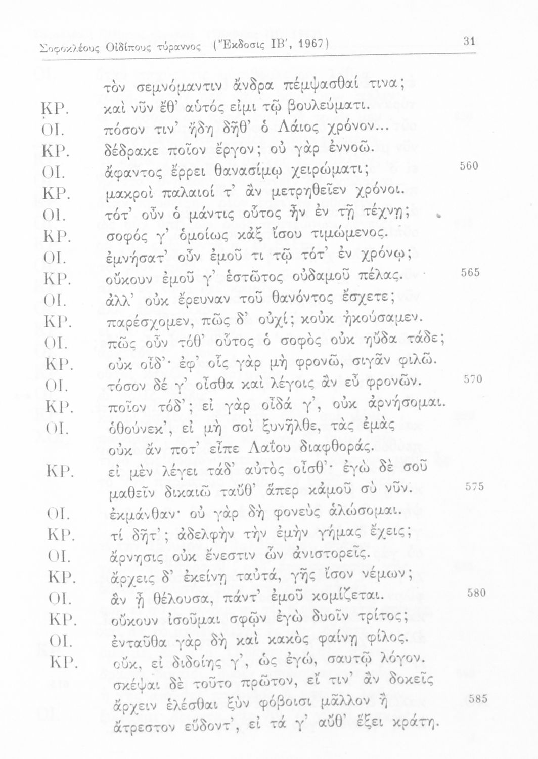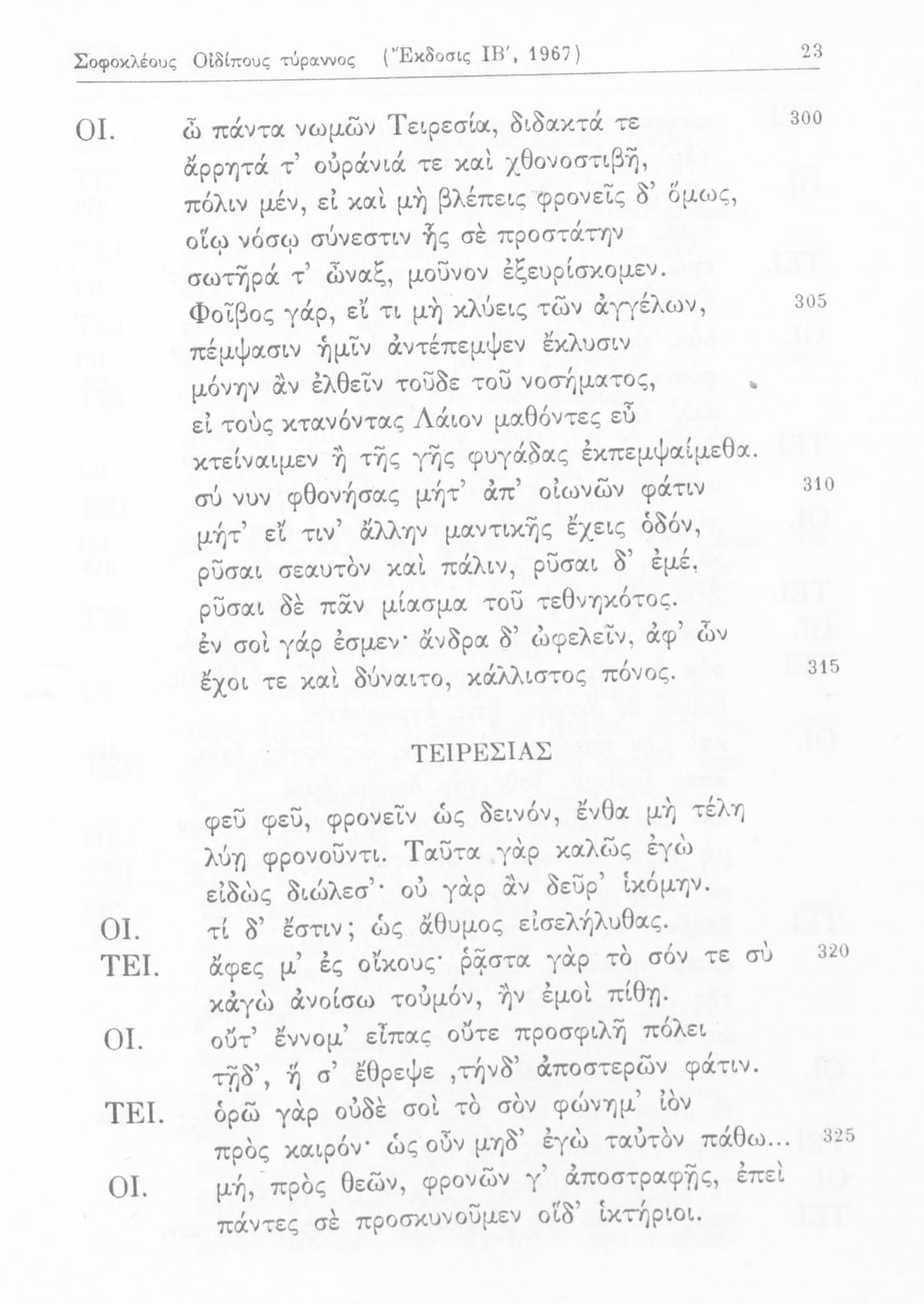 Σχολικό εγχειρίδιο της Γ΄ Λυκείου για το μάθημα των Αρχαίων Ελληνικών. Περιέχει τις τραγωδίες του Σοφοκλή Οιδίπους Τύραννος και Αντιγόνη. Τα κείμενα συνοδεύονται από ερμηνευτικές και λεξιλογικές παρατηρήσεις του συγγραφέα.