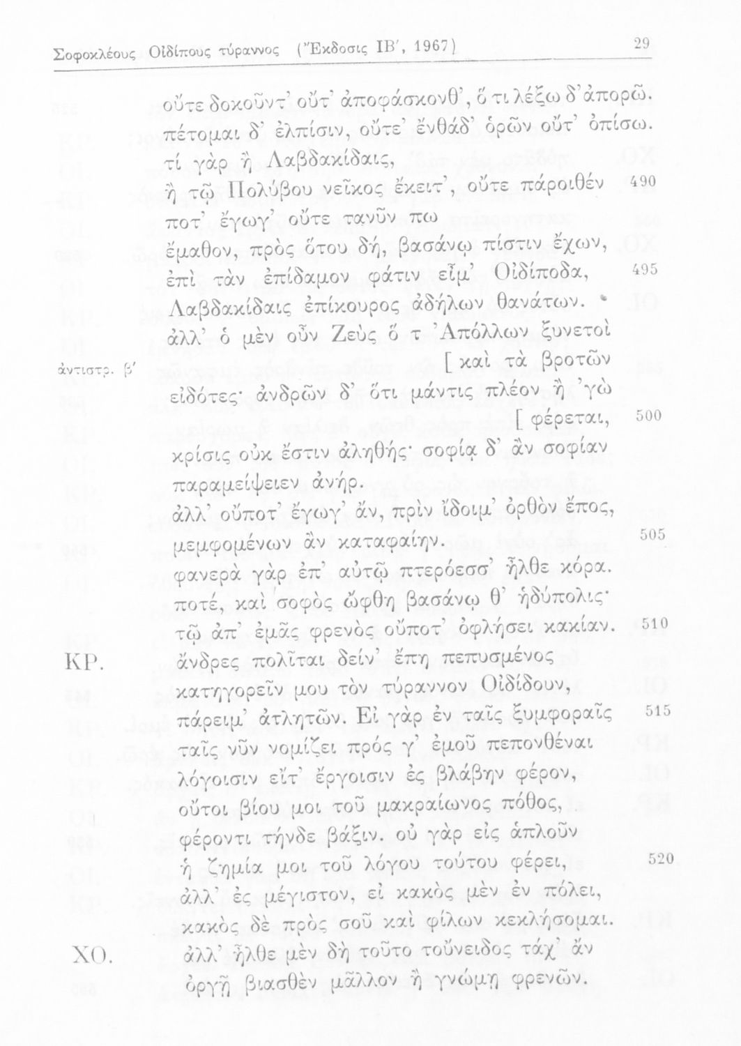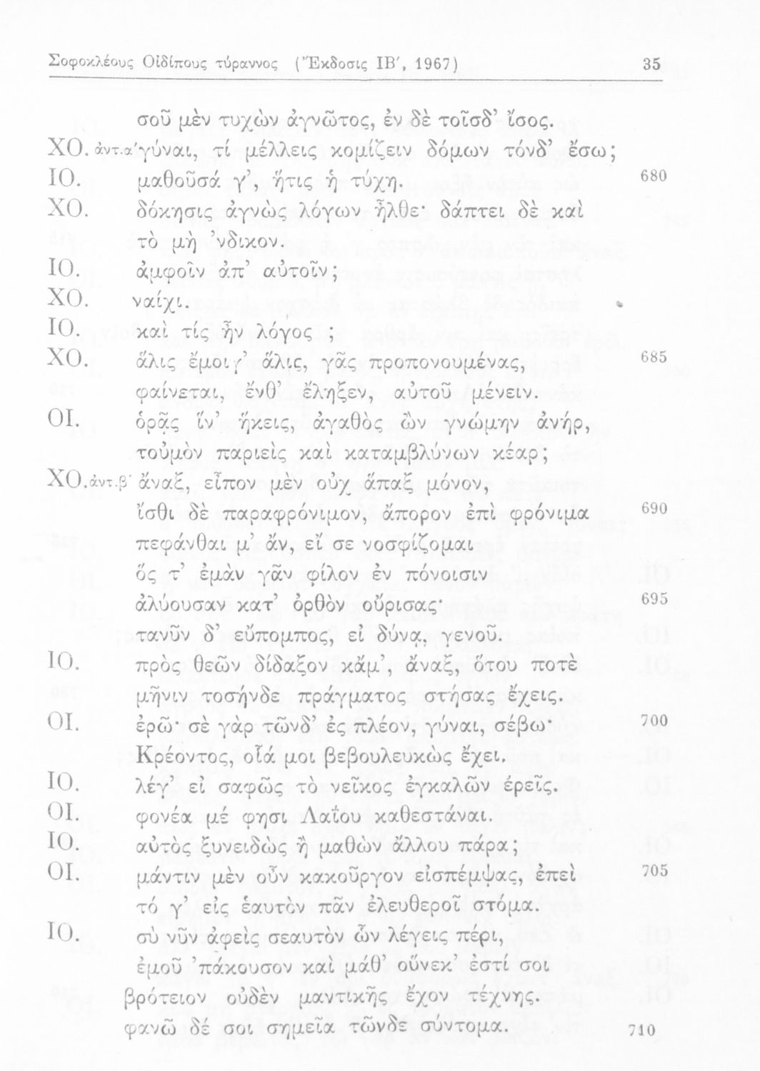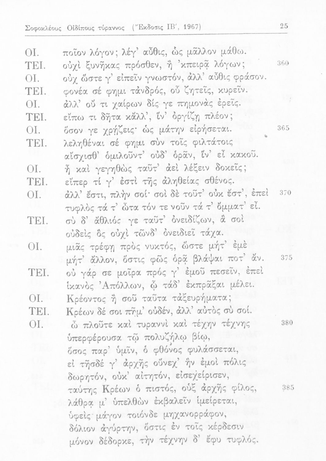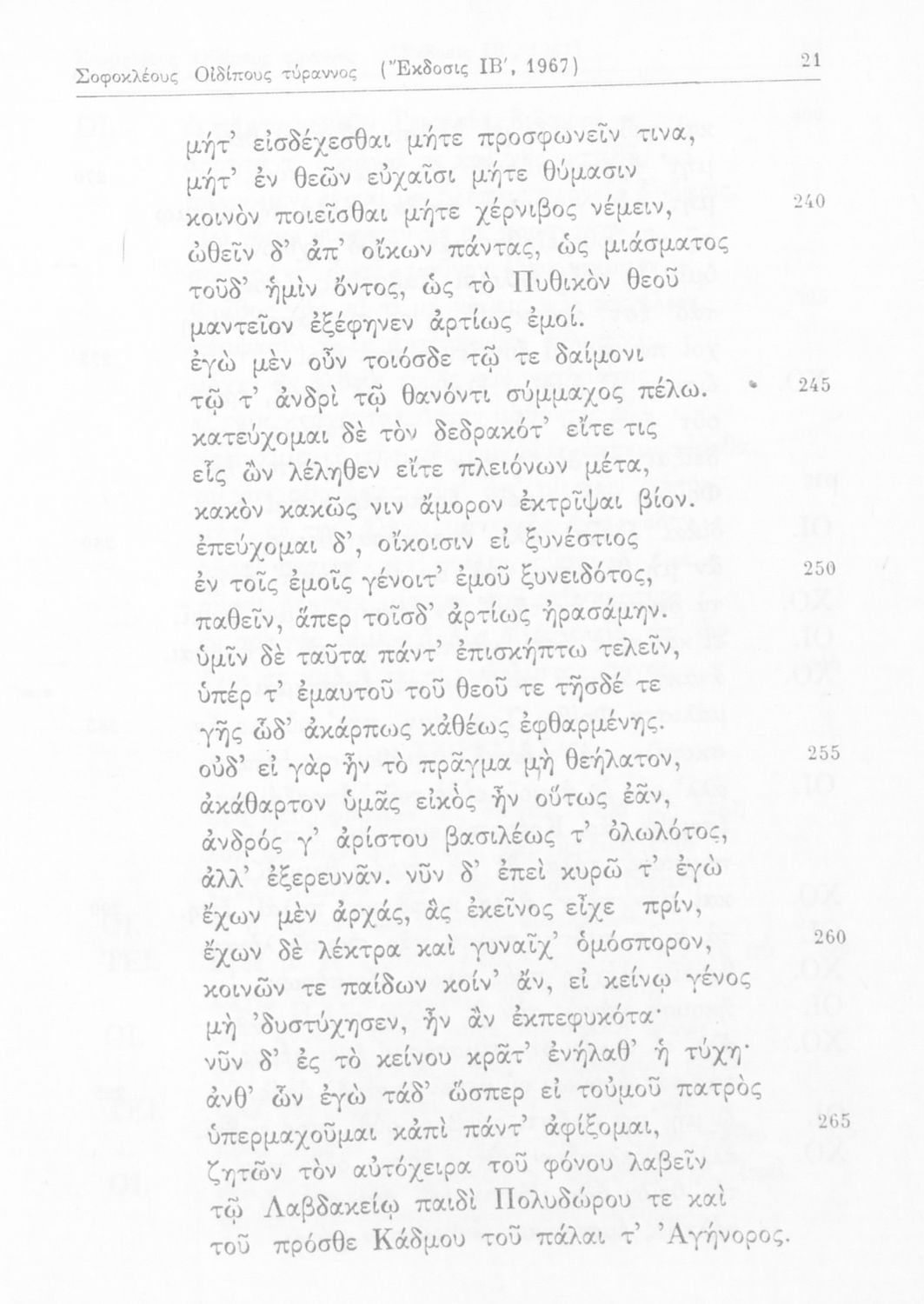 Σχολικό εγχειρίδιο της Γ΄ Λυκείου για το μάθημα των Αρχαίων Ελληνικών. Περιέχει τις τραγωδίες του Σοφοκλή Οιδίπους Τύραννος και Αντιγόνη. Τα κείμενα συνοδεύονται από ερμηνευτικές και λεξιλογικές παρατηρήσεις του συγγραφέα.