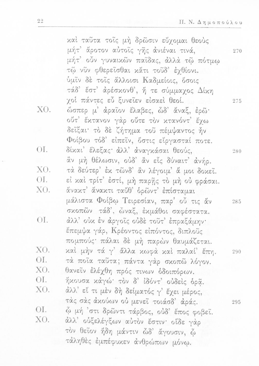 Σοφοκλής, Π. Ν Δημόπουλος (σχόλια)