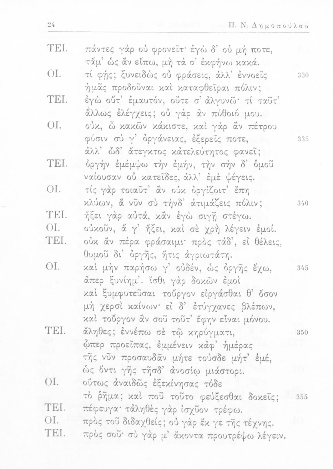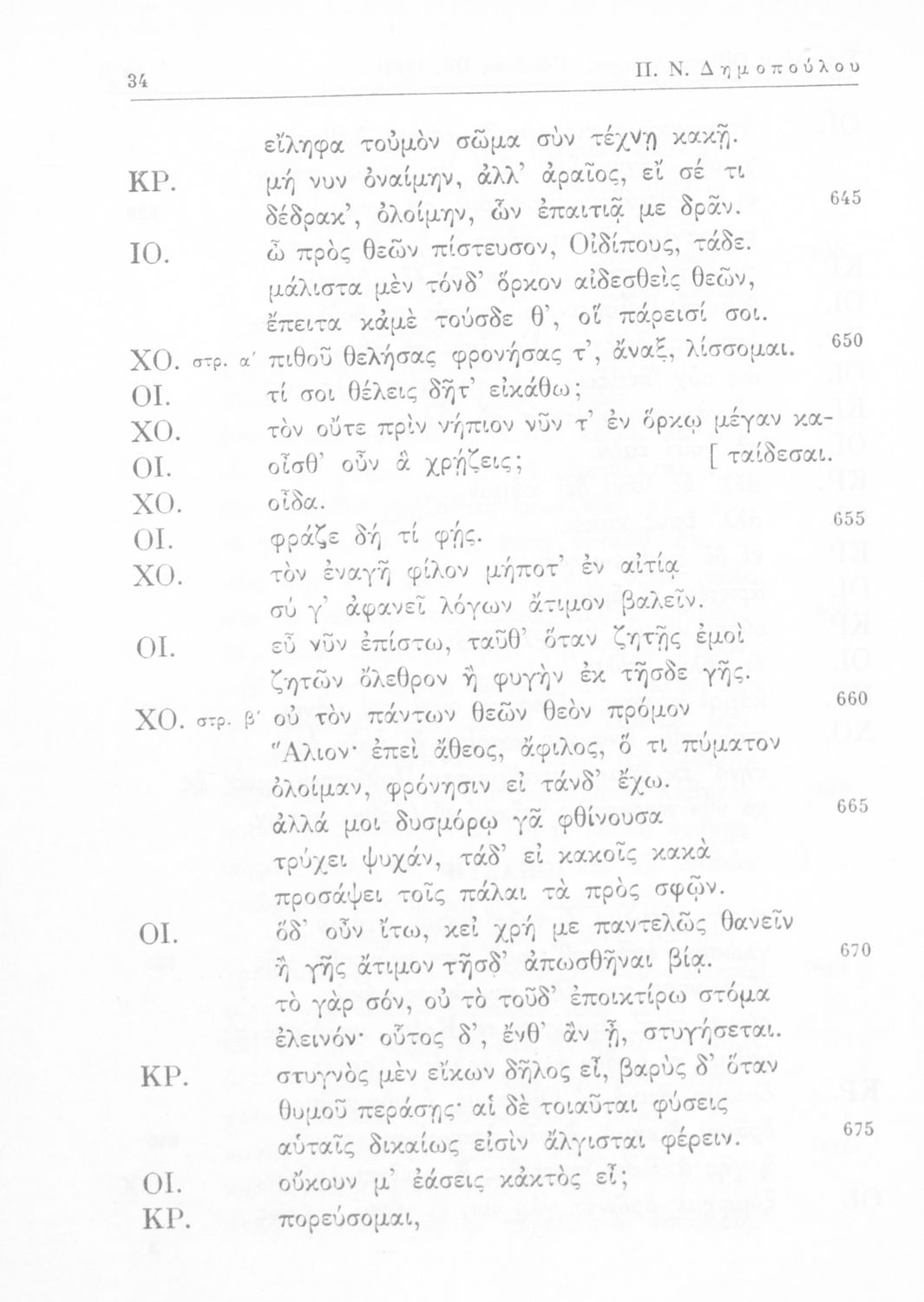 Σοφοκλής, Π. Ν. Δημόπουλος (σχόλια)