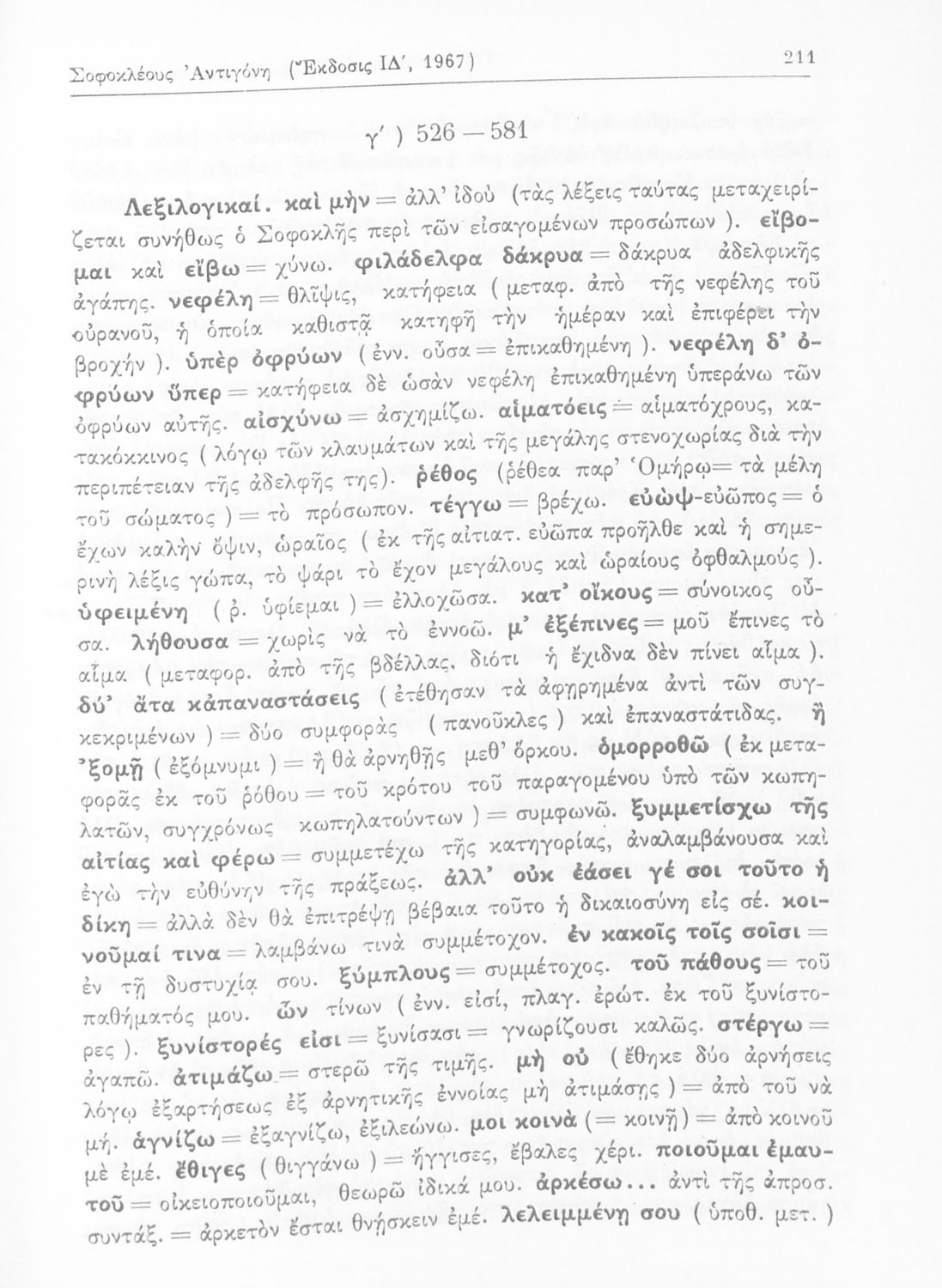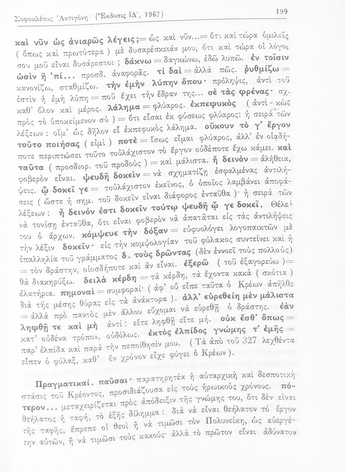 Σχολικό εγχειρίδιο της Γ΄ Λυκείου για το μάθημα των Αρχαίων Ελληνικών. Περιέχει τις τραγωδίες του Σοφοκλή Οιδίπους Τύραννος και Αντιγόνη. Τα κείμενα συνοδεύονται από ερμηνευτικές και λεξιλογικές παρατηρήσεις του συγγραφέα.