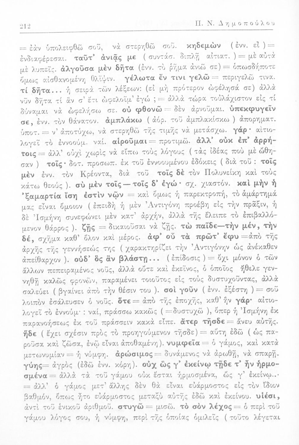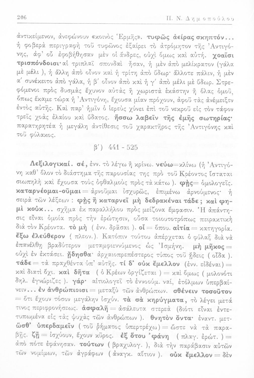 Σοφοκλής, Π. Ν Δημόπουλος (σχόλια)