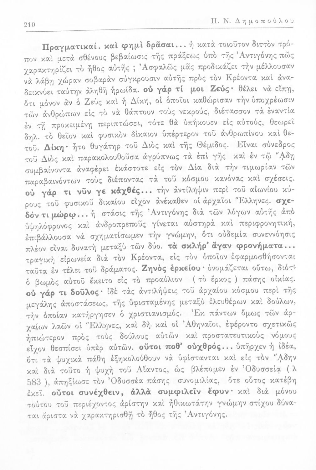 Σοφοκλής, Π. Ν. Δημόπουλος (σχόλια)
