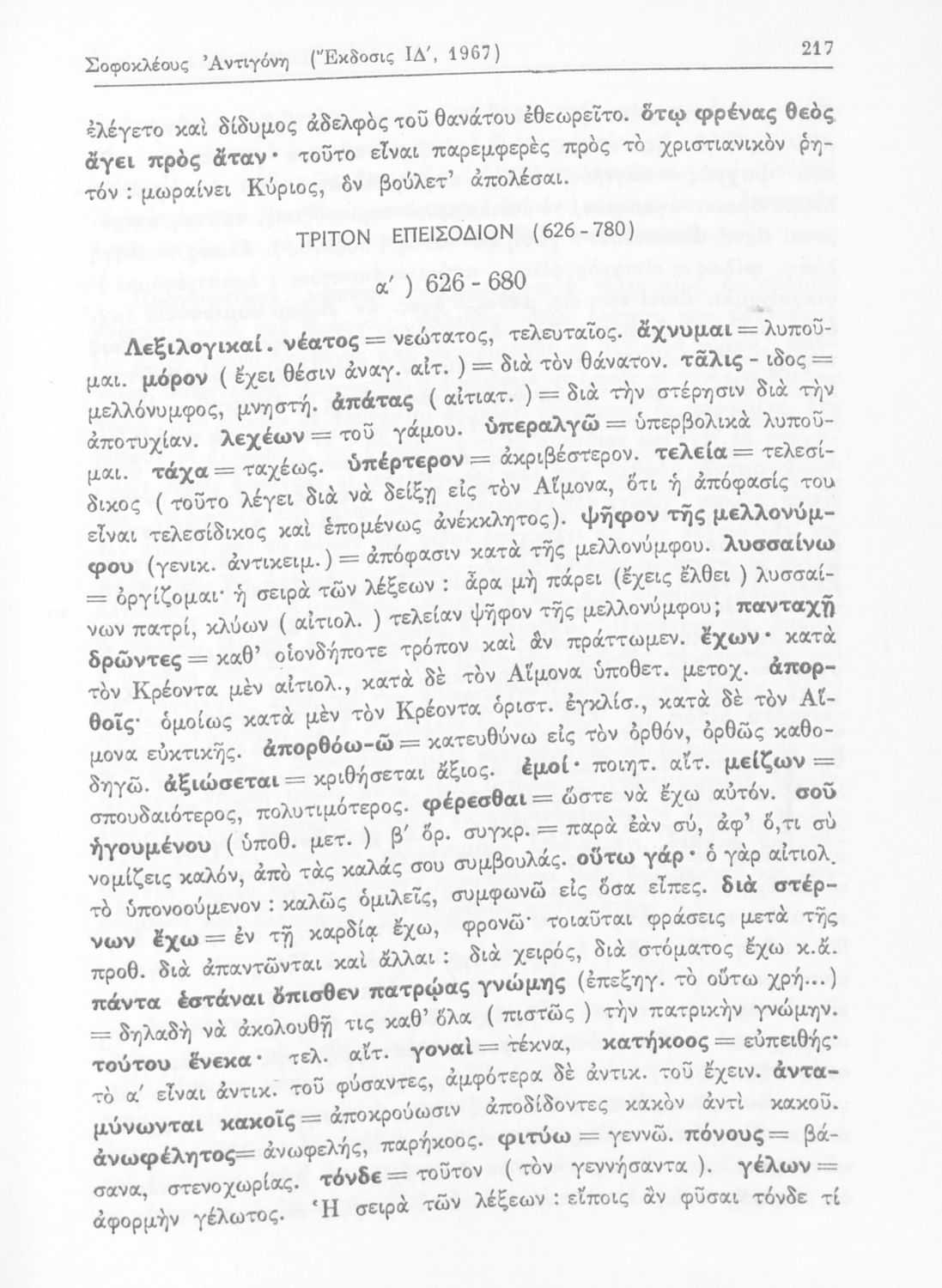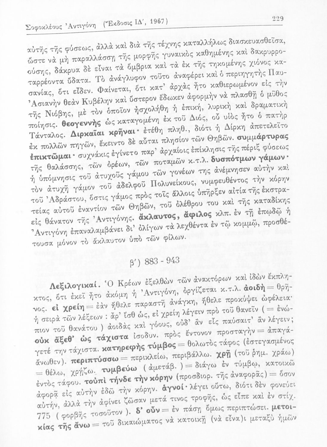 Σχολικό εγχειρίδιο της Γ΄ Λυκείου για το μάθημα των Αρχαίων Ελληνικών. Περιέχει τις τραγωδίες του Σοφοκλή Οιδίπους Τύραννος και Αντιγόνη. Τα κείμενα συνοδεύονται από ερμηνευτικές και λεξιλογικές παρατηρήσεις του συγγραφέα.