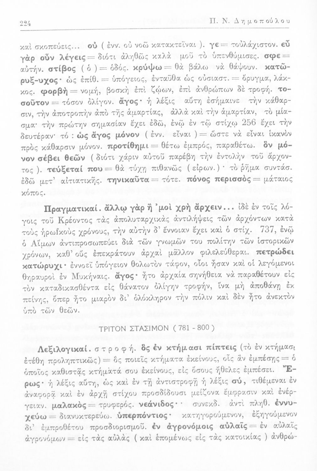 Σοφοκλής, Π. Ν. Δημόπουλος (σχόλια)