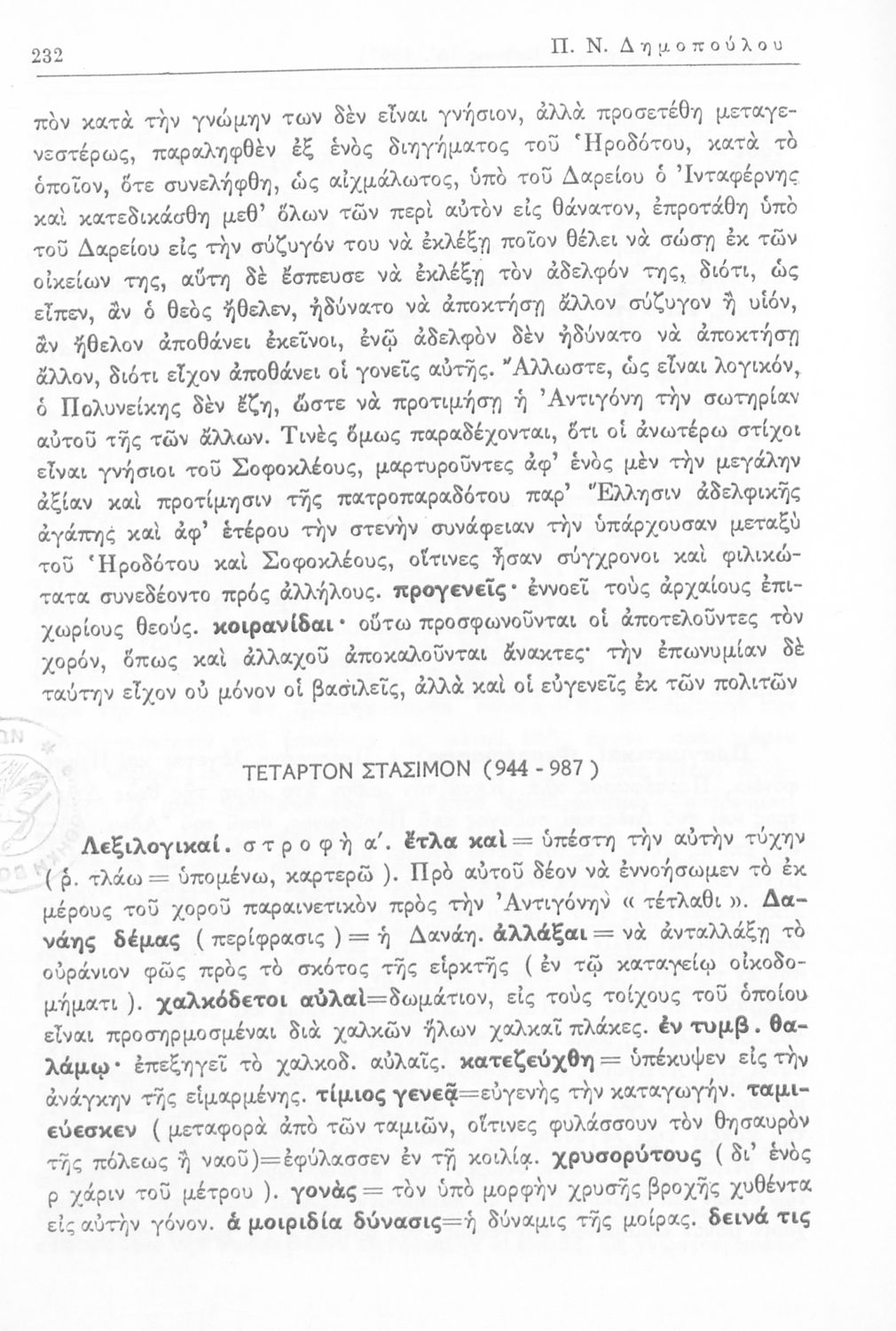 Σοφοκλής, Π. Ν Δημόπουλος (σχόλια)
