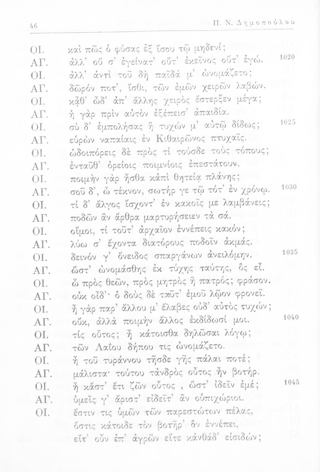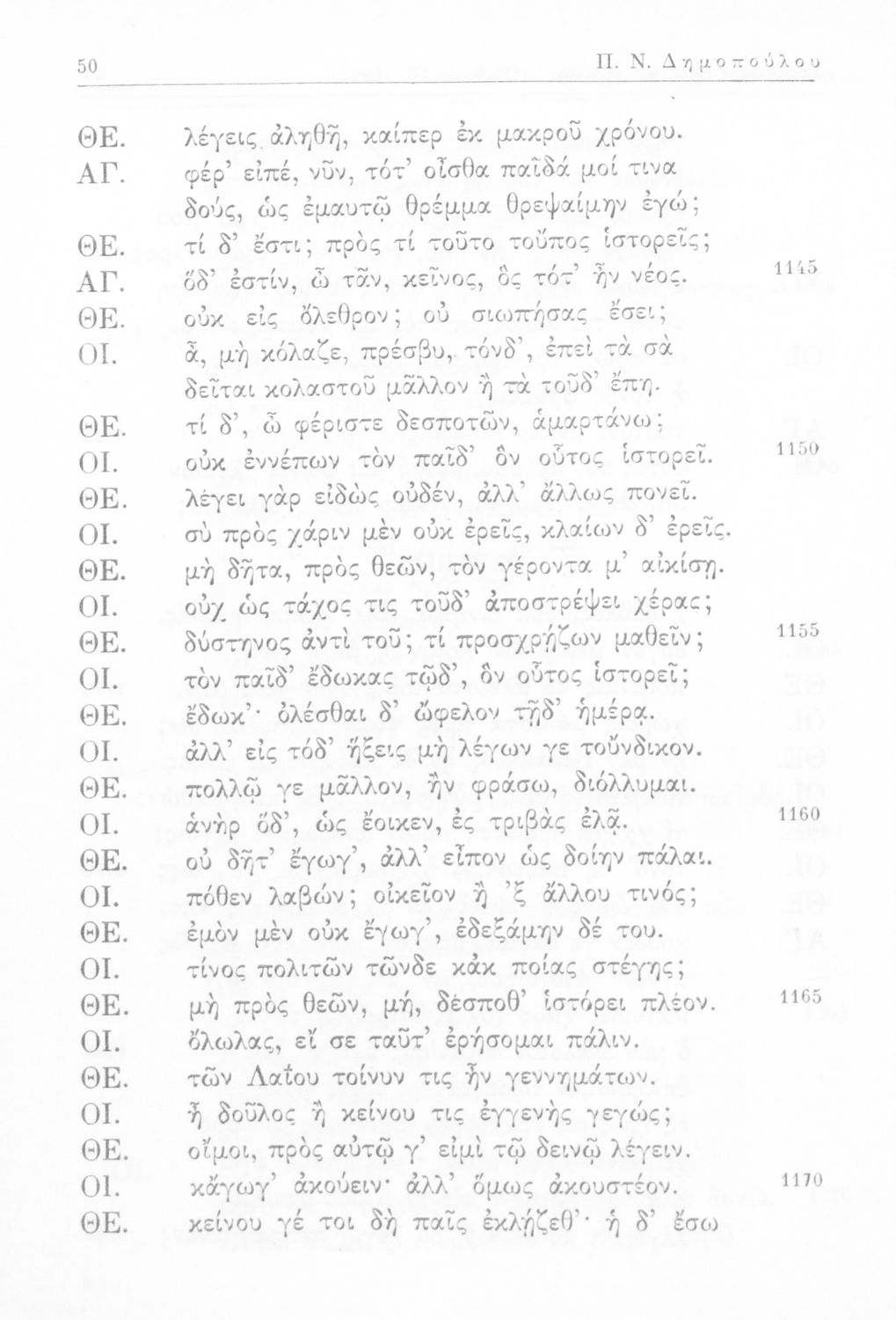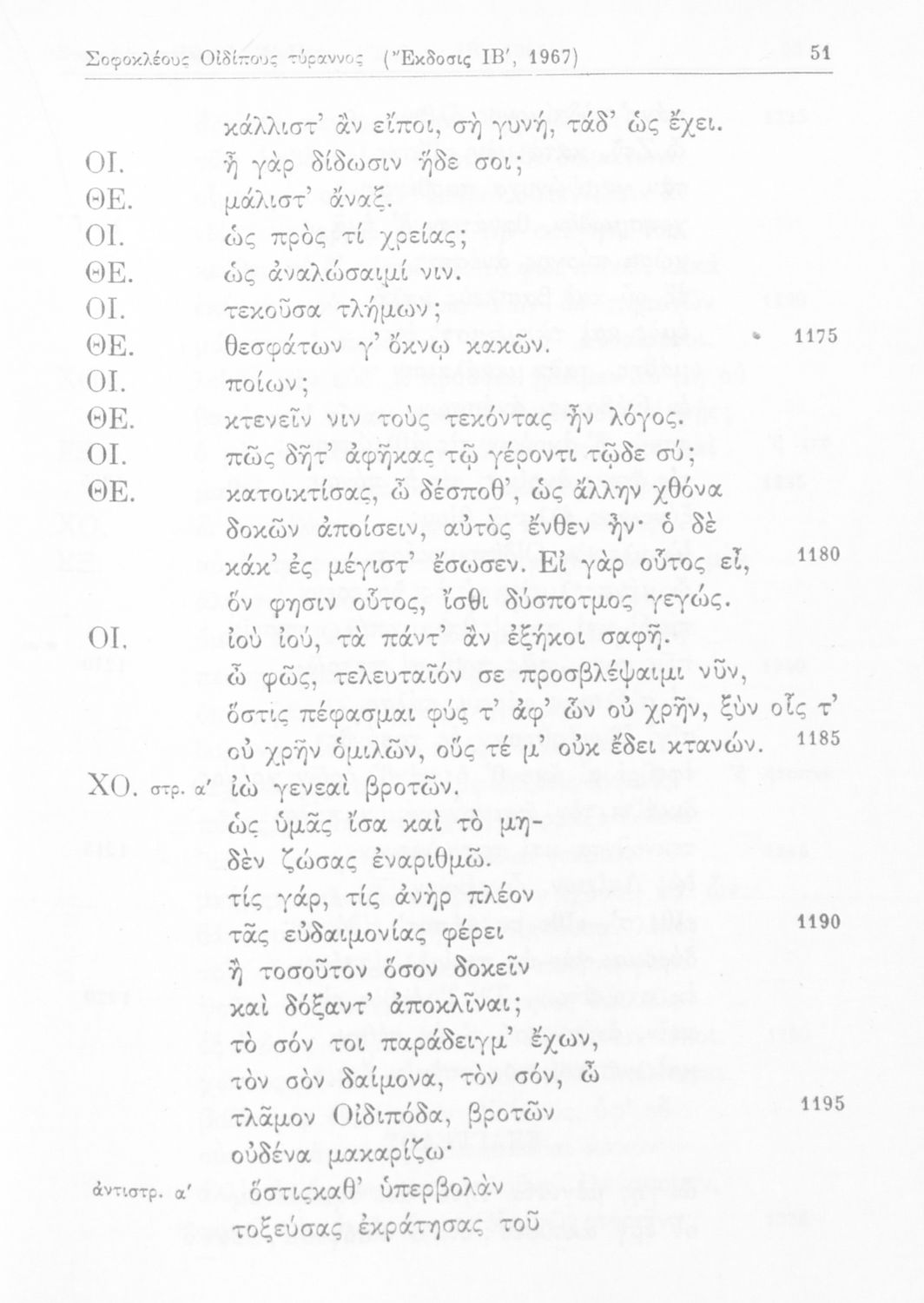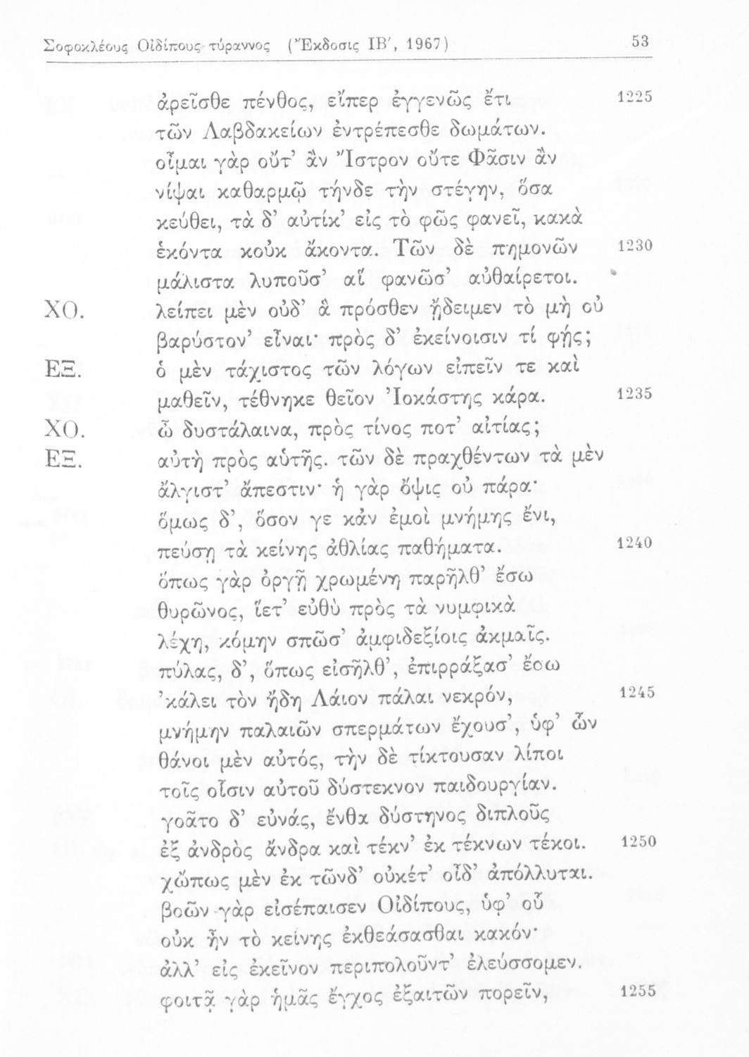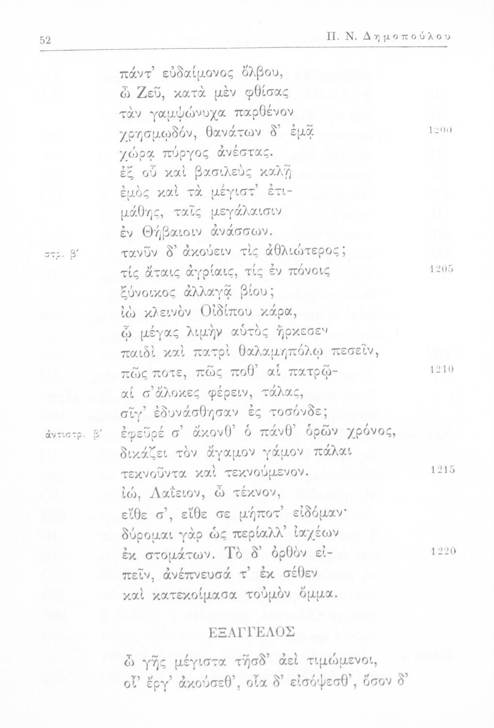 520 ## _aΣχολικό εγχειρίδιο της Γ΄ Λυκείου για το μάθημα των Αρχαίων Ελληνικών. Περιέχει τις τραγωδίες του Σοφοκλή Οιδίπους Τύραννος και Αντιγόνη. Τα κείμενα συνοδεύονται από ερμηνευτικές και λεξιλογικές παρατηρήσεις του συγγραφέα.