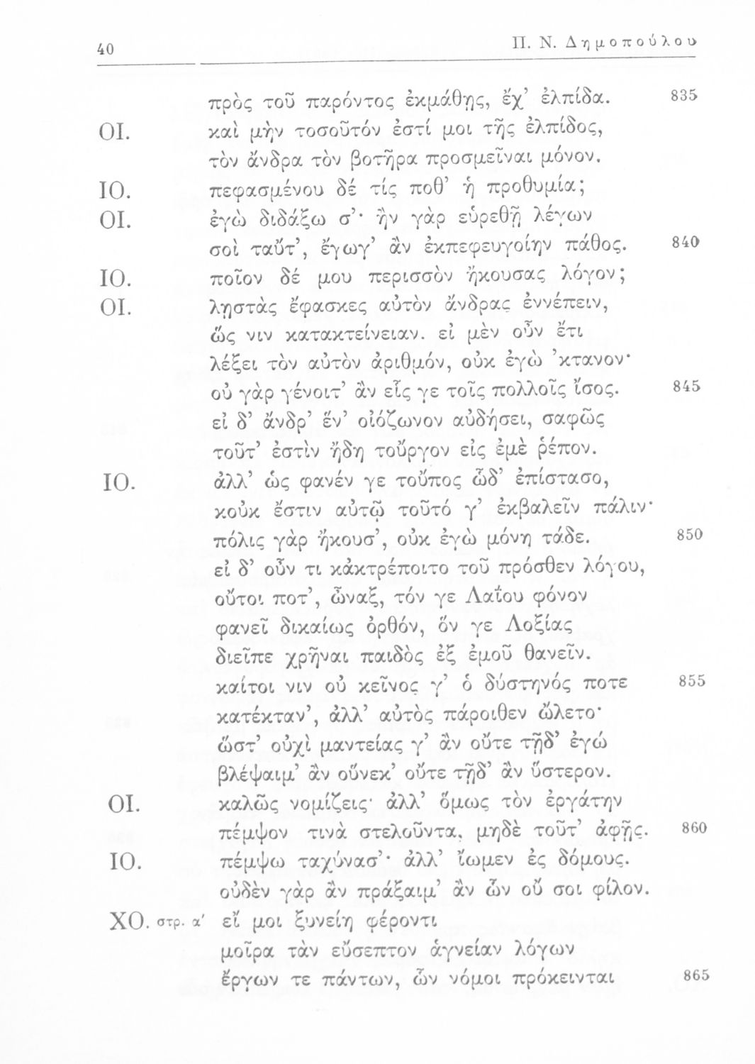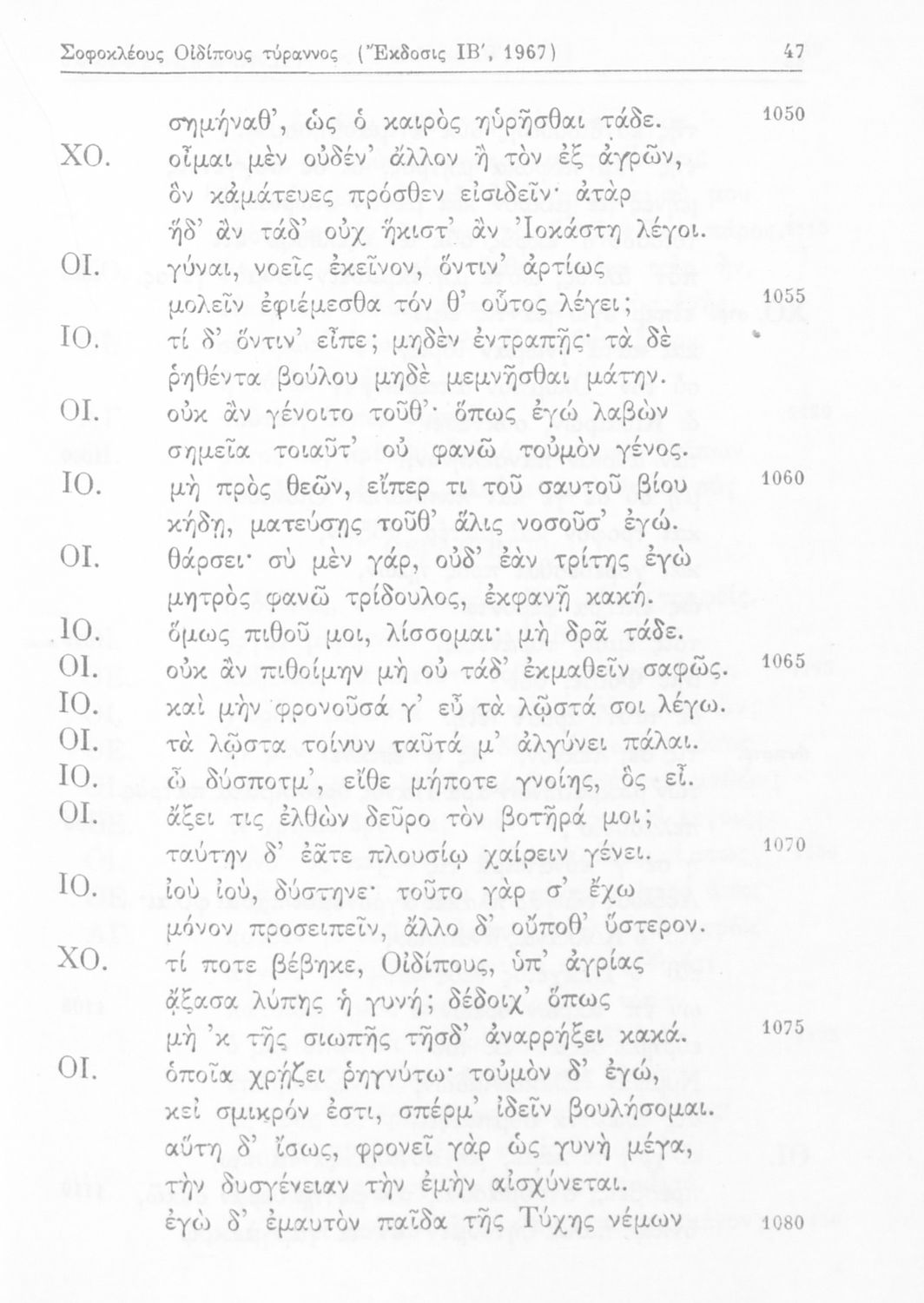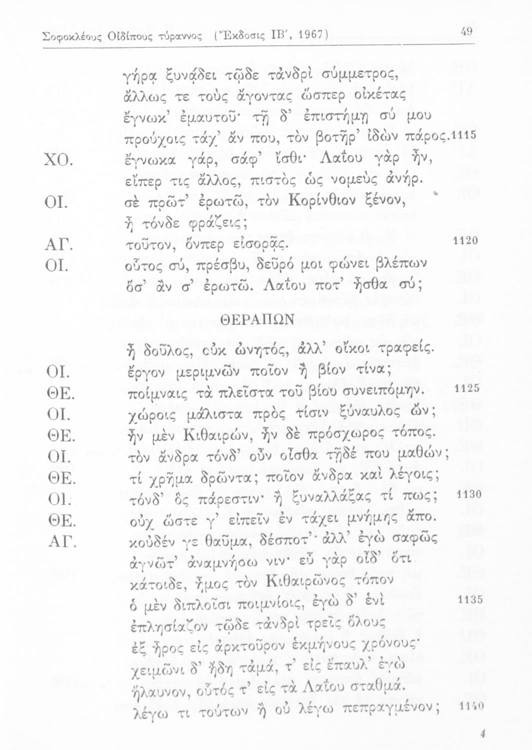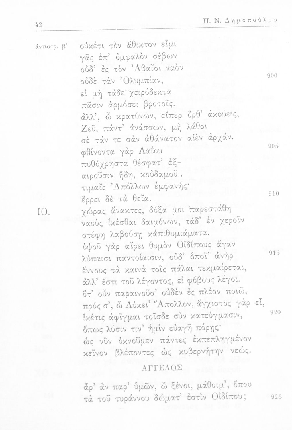 520 ## _aΣχολικό εγχειρίδιο της Γ΄ Λυκείου για το μάθημα των Αρχαίων Ελληνικών. Περιέχει τις τραγωδίες του Σοφοκλή Οιδίπους Τύραννος και Αντιγόνη. Τα κείμενα συνοδεύονται από ερμηνευτικές και λεξιλογικές παρατηρήσεις του συγγραφέα.
