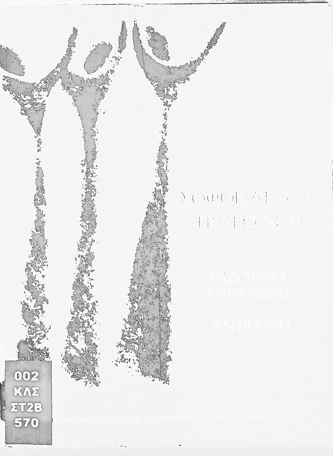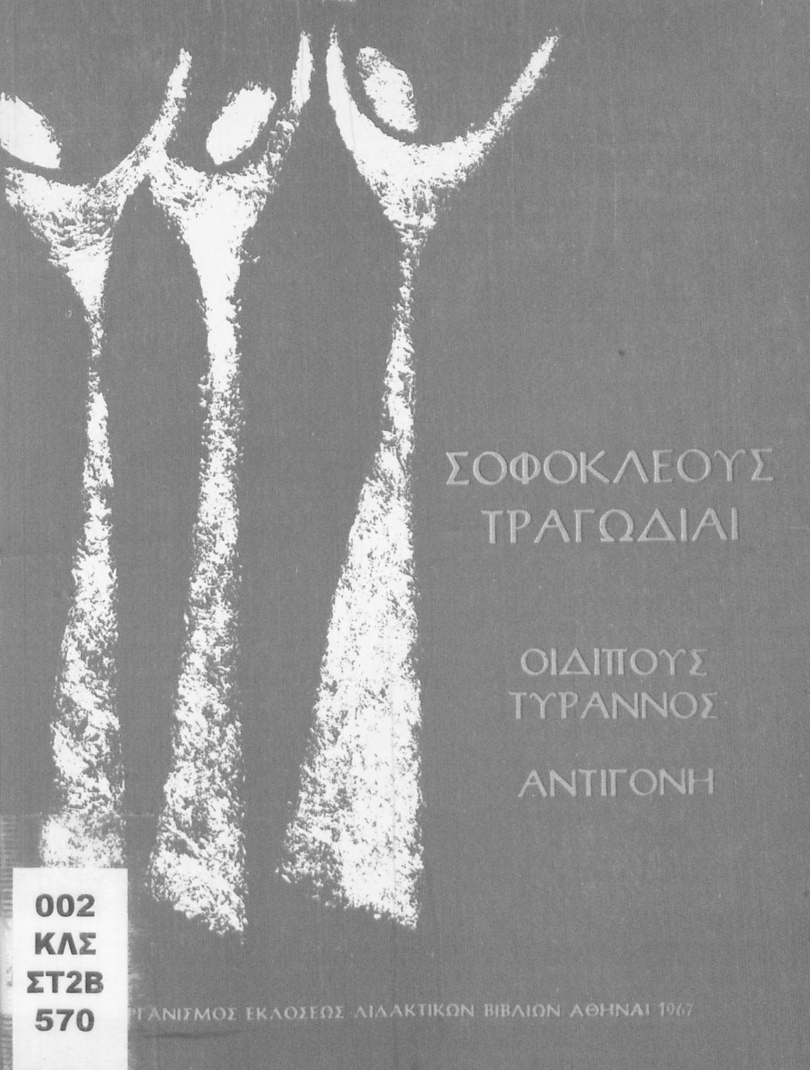 Σχολικό εγχειρίδιο Αρχαίων Ελληνικών που περιλαμβάνει τις τραγωδίες του Σοφοκλή Οιδίπους Τύραννος και Αντιγόνη, εισαγωγή και ερμηνευτικά σχόλια.