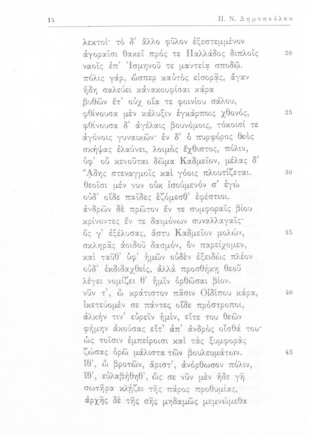 Σοφοκλής, Π. Ν Δημόπουλος (σχόλια)