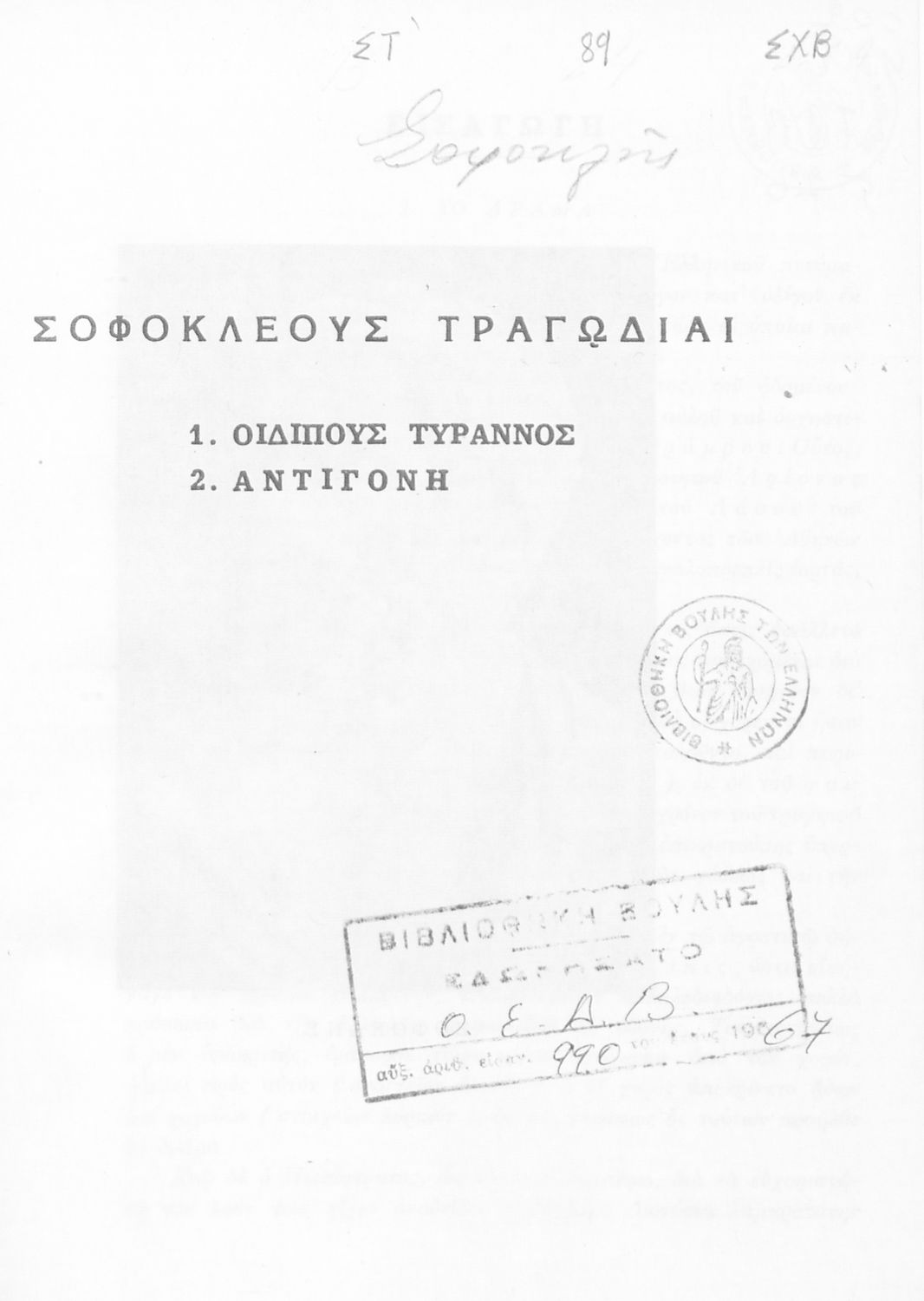 Σοφοκλέους Τραγωδίαι 1) Οιδίπους Τύραννος, 2) Αντιγόνη