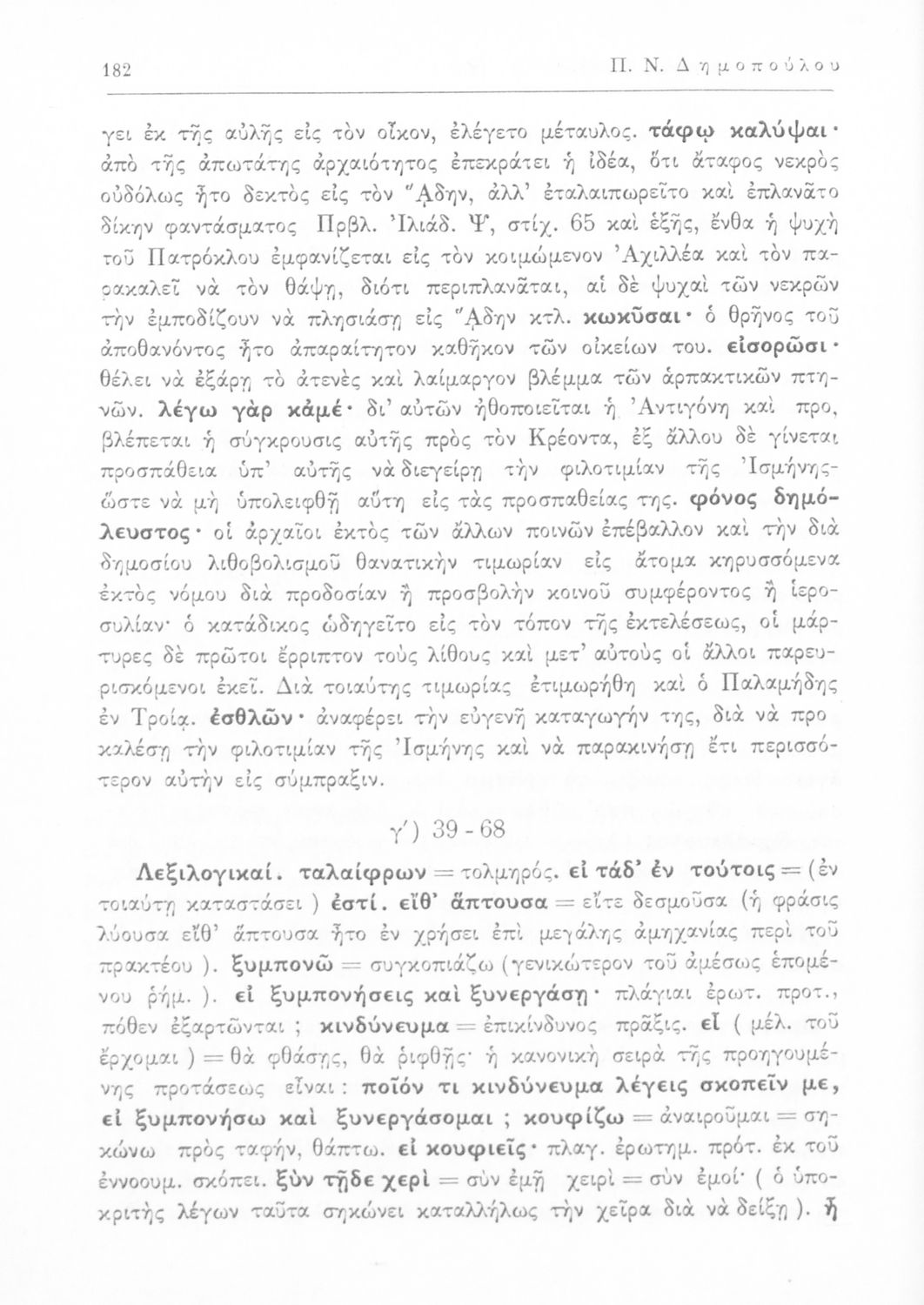 Σοφοκλής, Π. Ν Δημόπουλος (σχόλια)