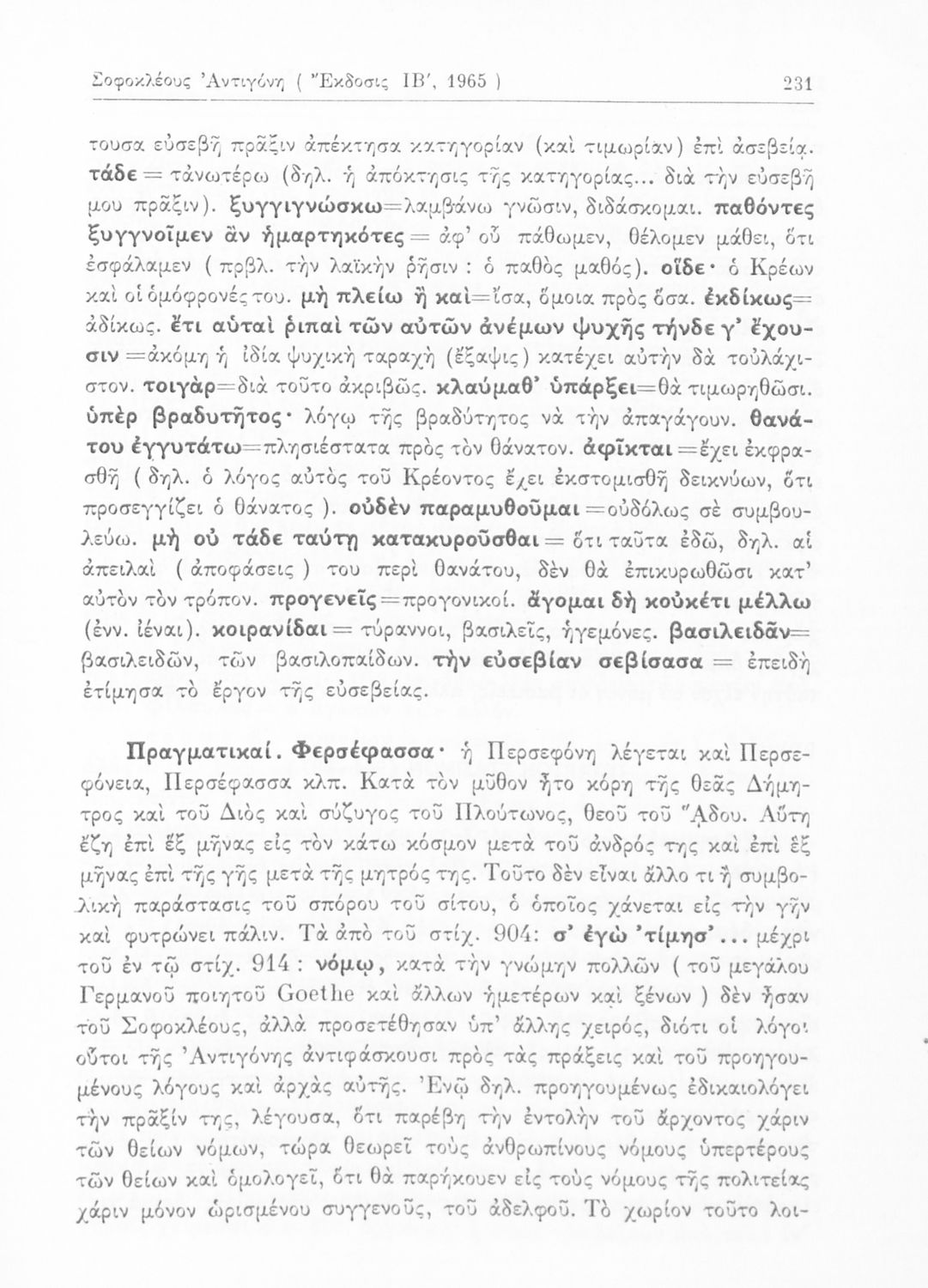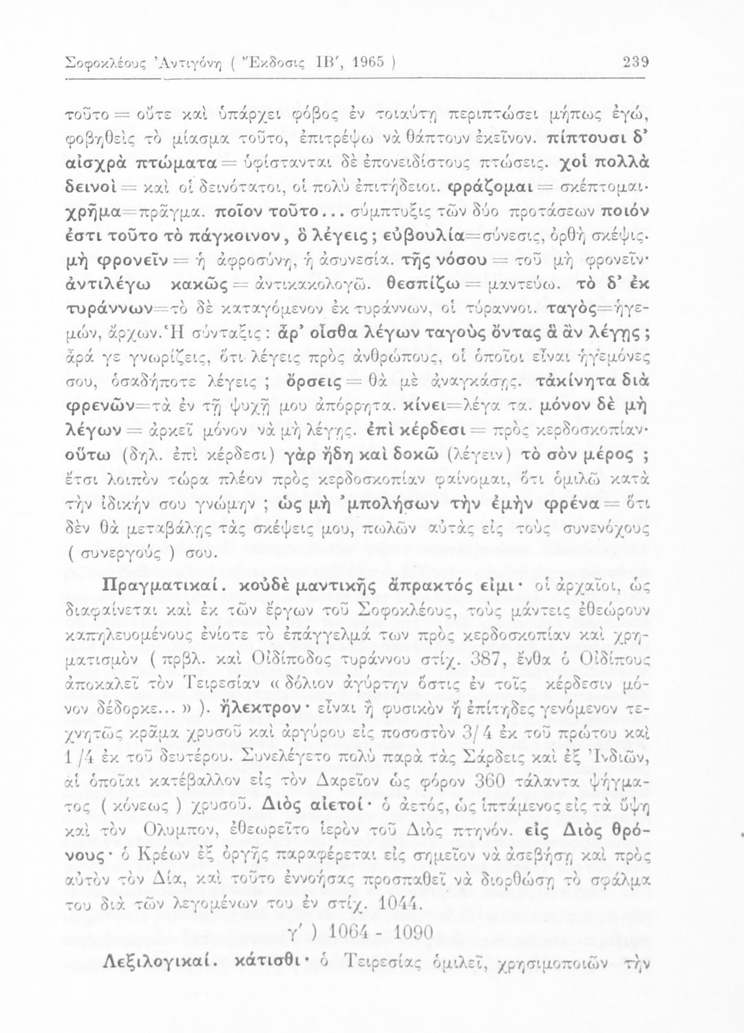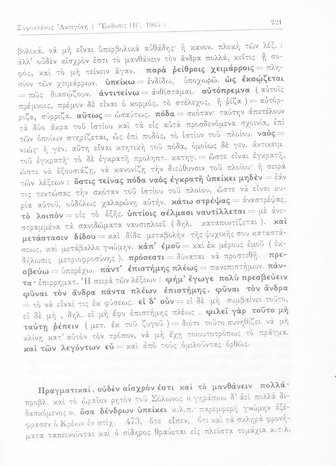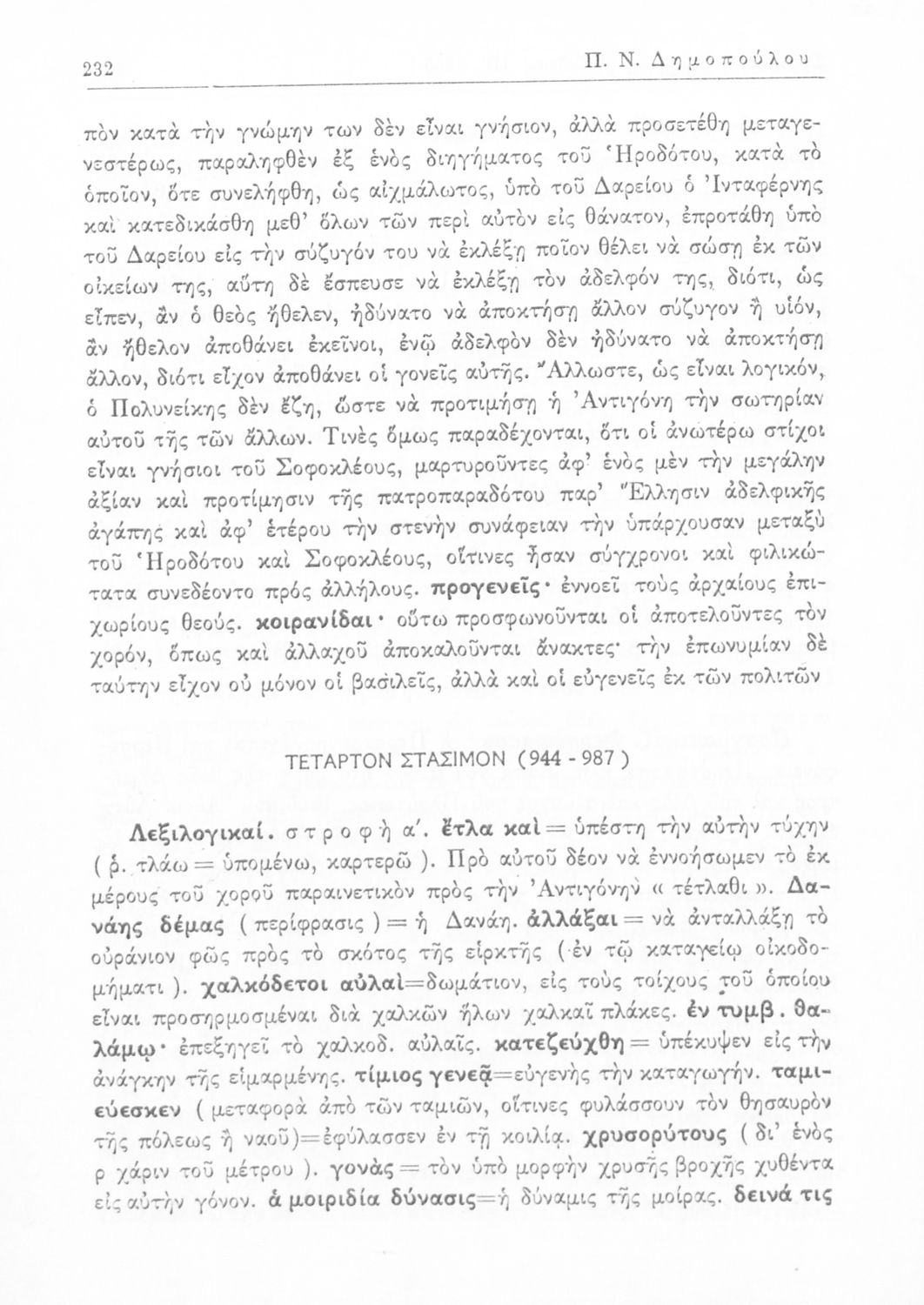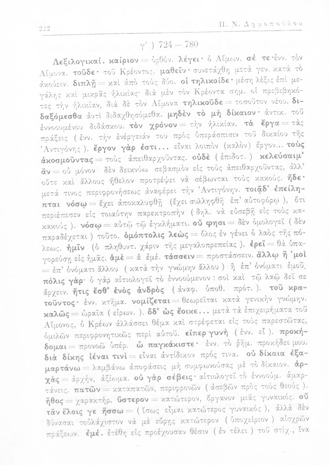 Σοφοκλής, Π. Ν. Δημόπουλος (σχόλια)