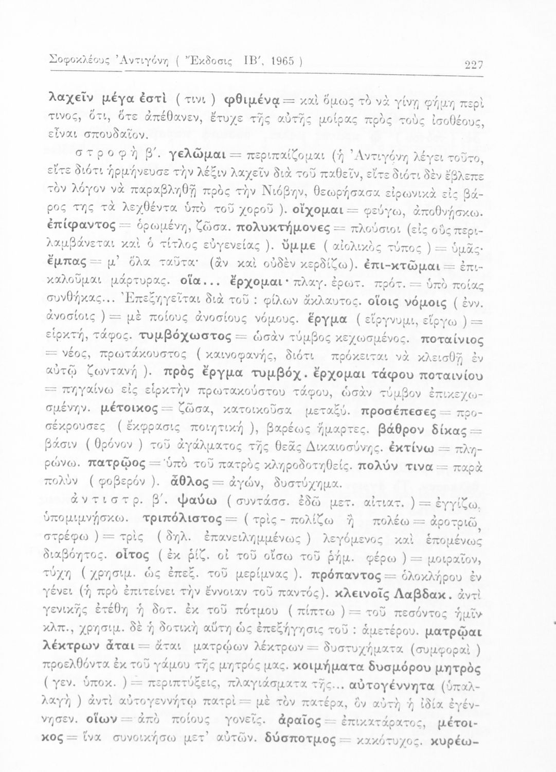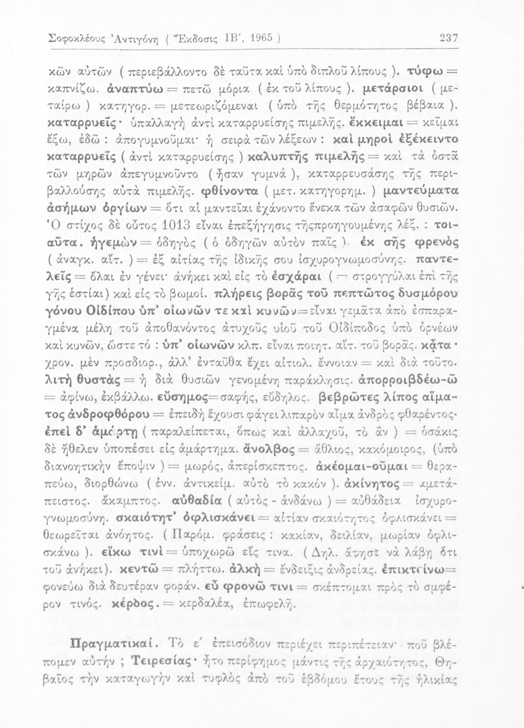 Σχολικό εγχειρίδιο Αρχαίων Ελληνικών που περιλαμβάνει τις τραγωδίες του Σοφοκλή Οιδίπους Τύραννος και Αντιγόνη, εισαγωγή και ερμηνευτικά σχόλια.