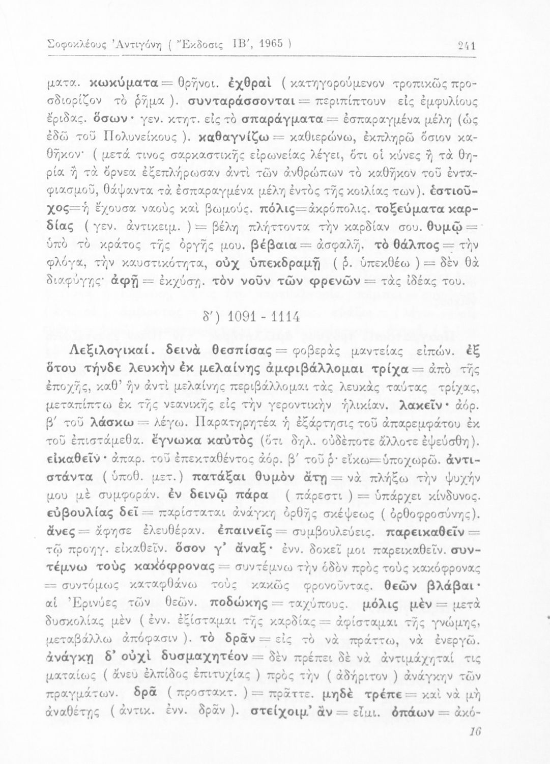 Σχολικό εγχειρίδιο Αρχαίων Ελληνικών της ΣΤ΄ Γυμνασίου. Το βιβλίο περιέχει δύο τραγωδίες του Σοφοκλή, τον Οιδίπους Τύραννο και την Αντιγόνη. Τα έργα αυτά συνοδεύονται από αναλύσεις λεξιλογικές και αναφορικά με