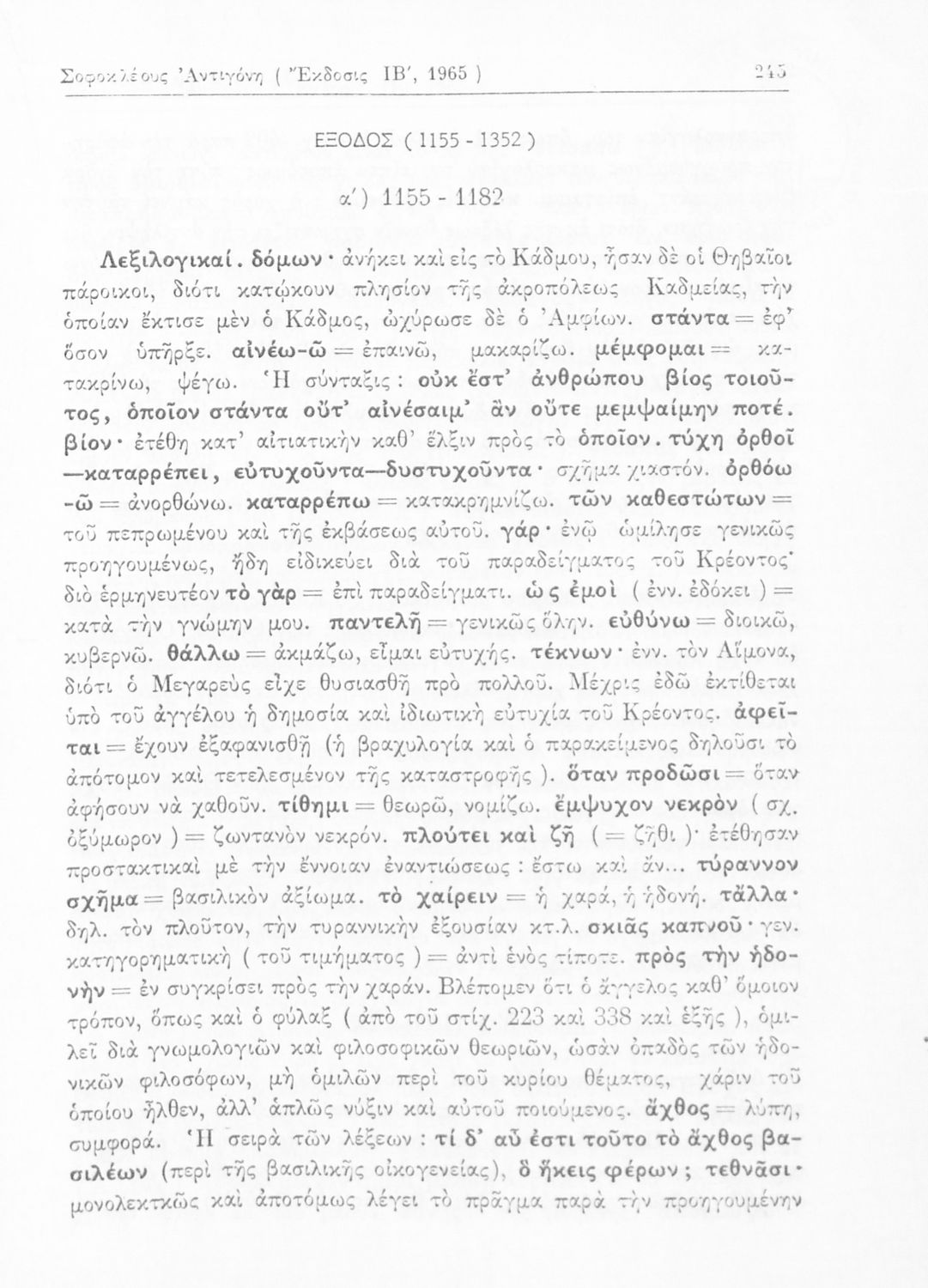 Σχολικό εγχειρίδιο Αρχαίων Ελληνικών που περιλαμβάνει τις τραγωδίες του Σοφοκλή Οιδίπους Τύραννος και Αντιγόνη, εισαγωγή και ερμηνευτικά σχόλια.