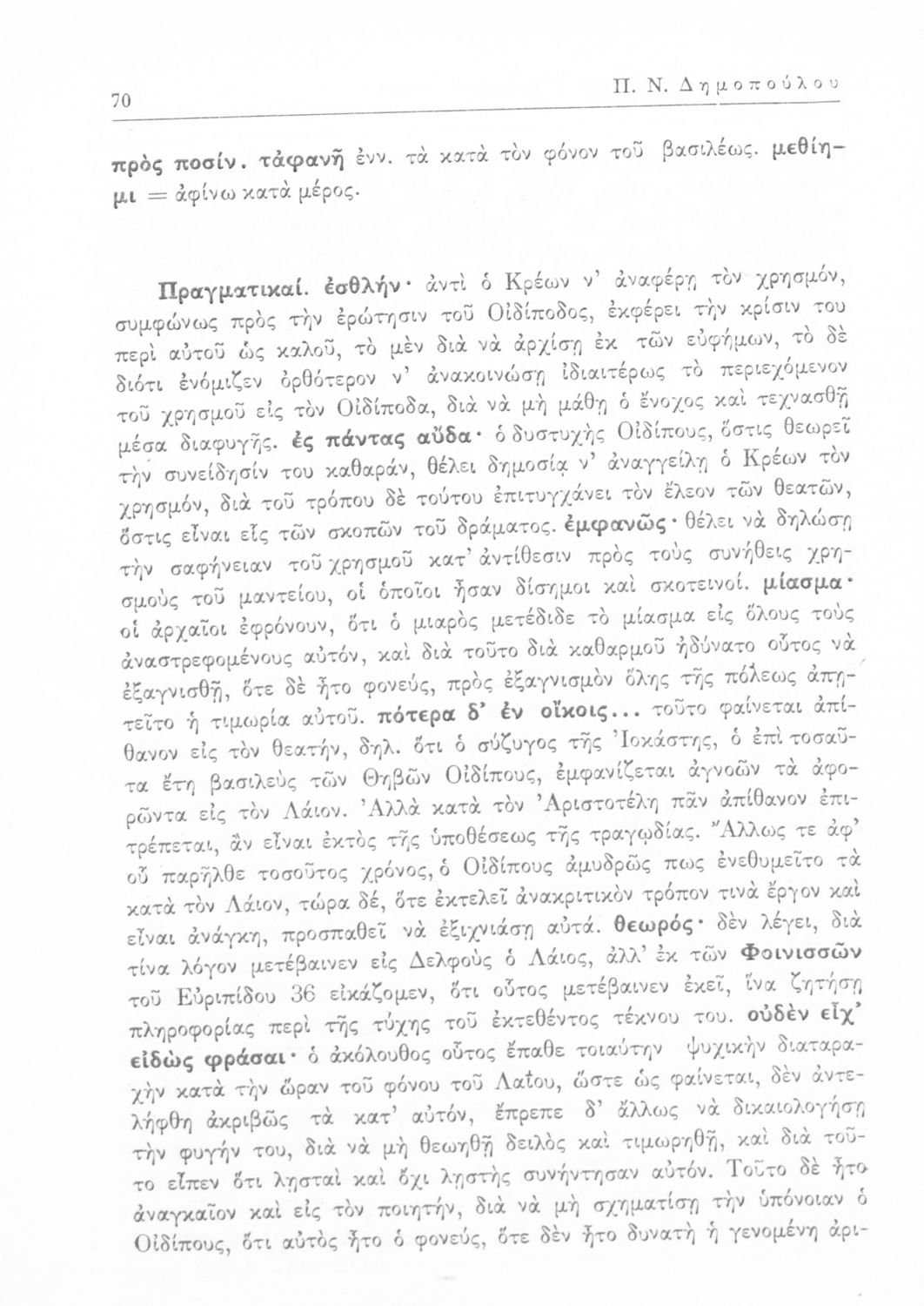 Σοφοκλής, Π. Ν Δημόπουλος (σχόλια)