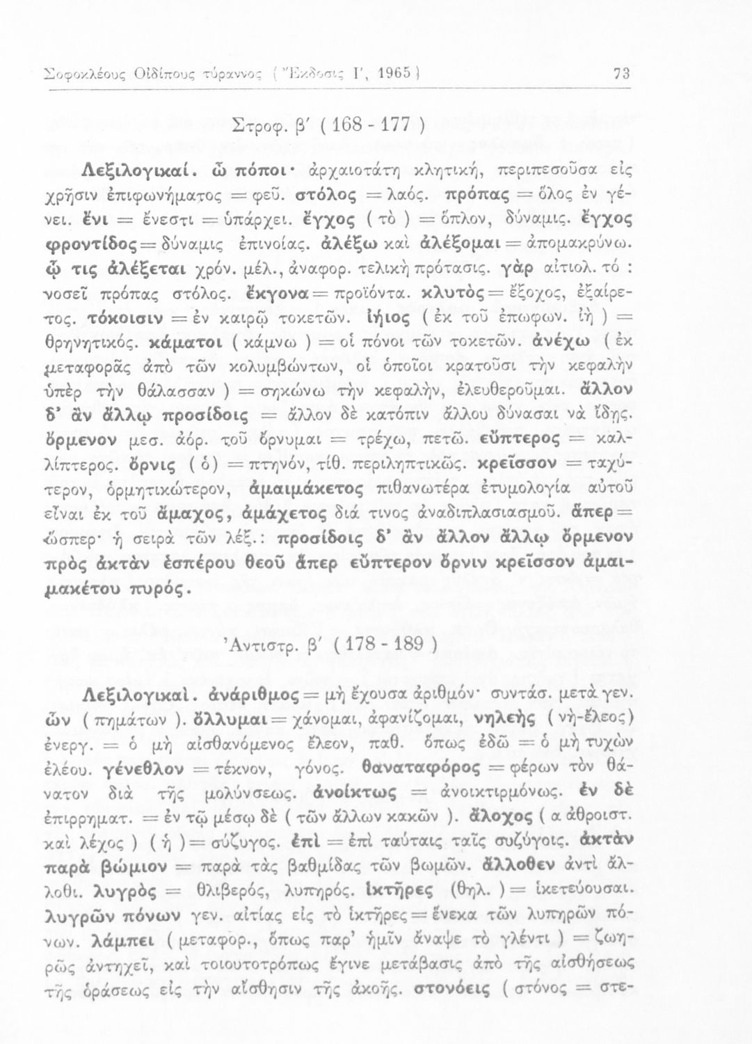 Σχολικό εγχειρίδιο Αρχαίων Ελληνικών που περιλαμβάνει τις τραγωδίες του Σοφοκλή Οιδίπους Τύραννος και Αντιγόνη, εισαγωγή και ερμηνευτικά σχόλια.
