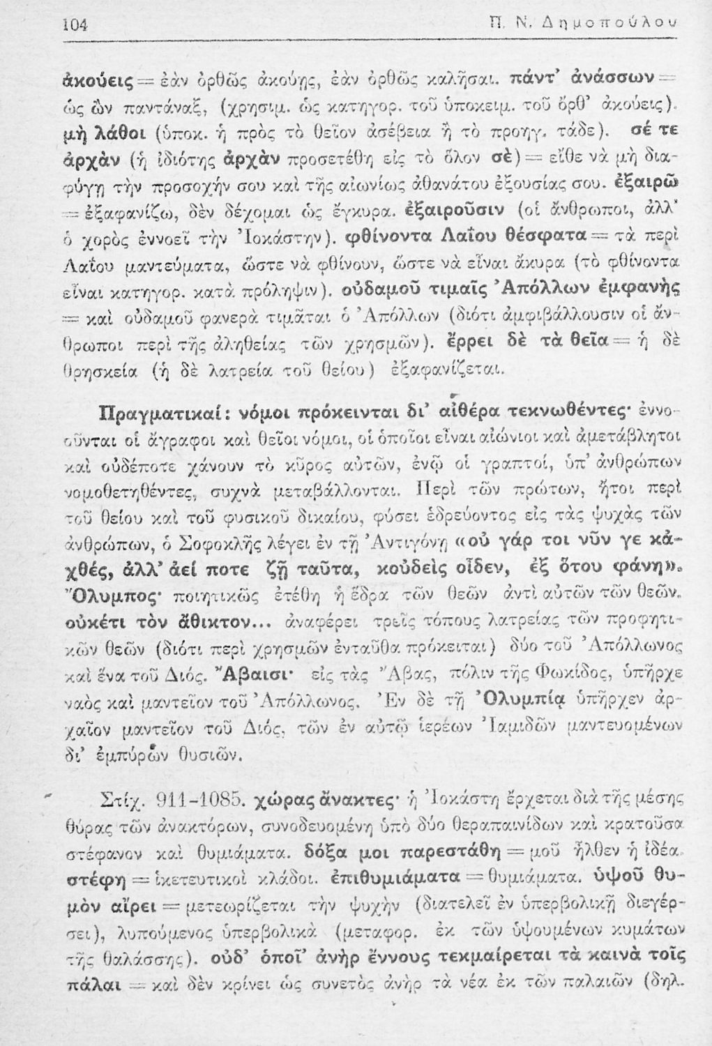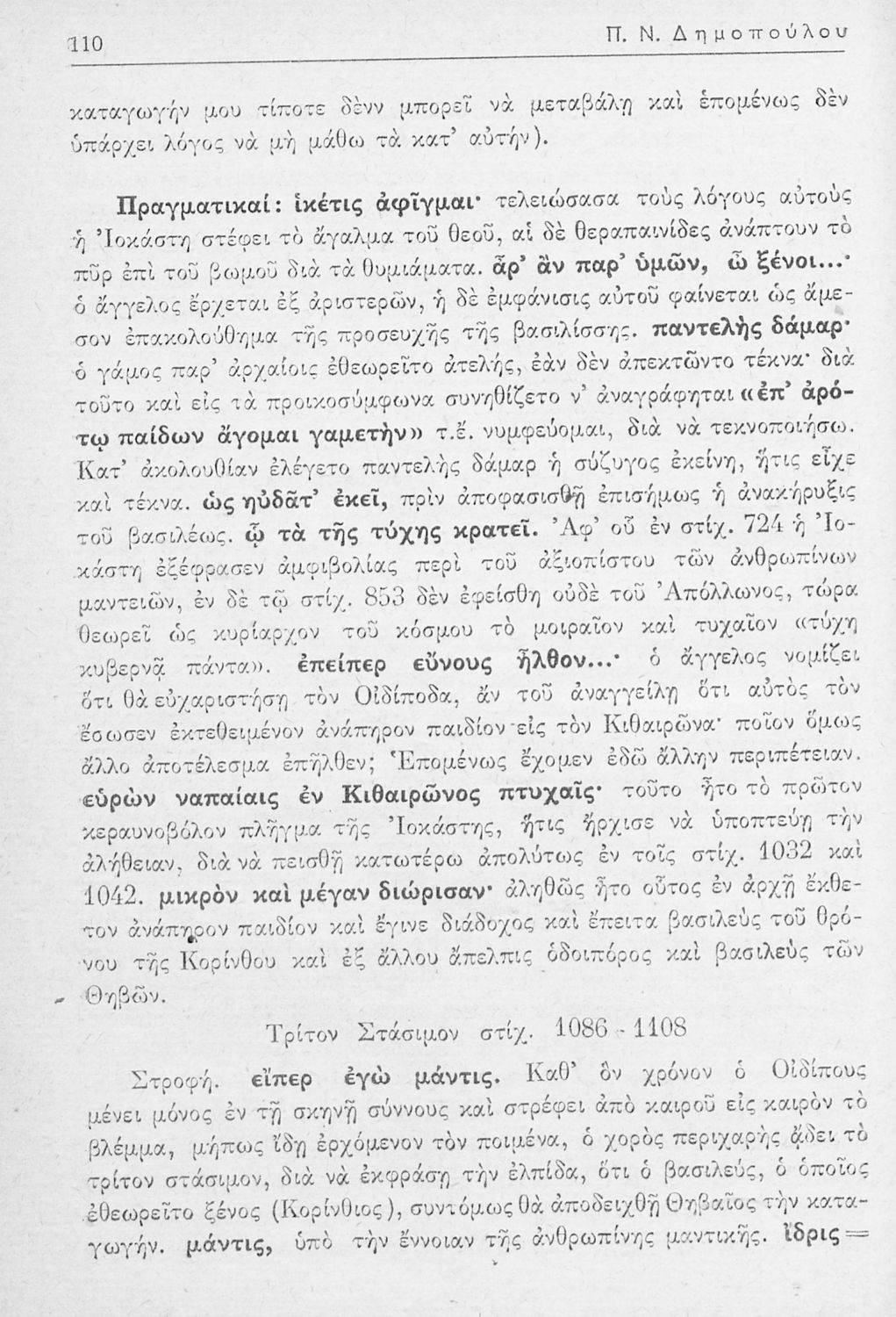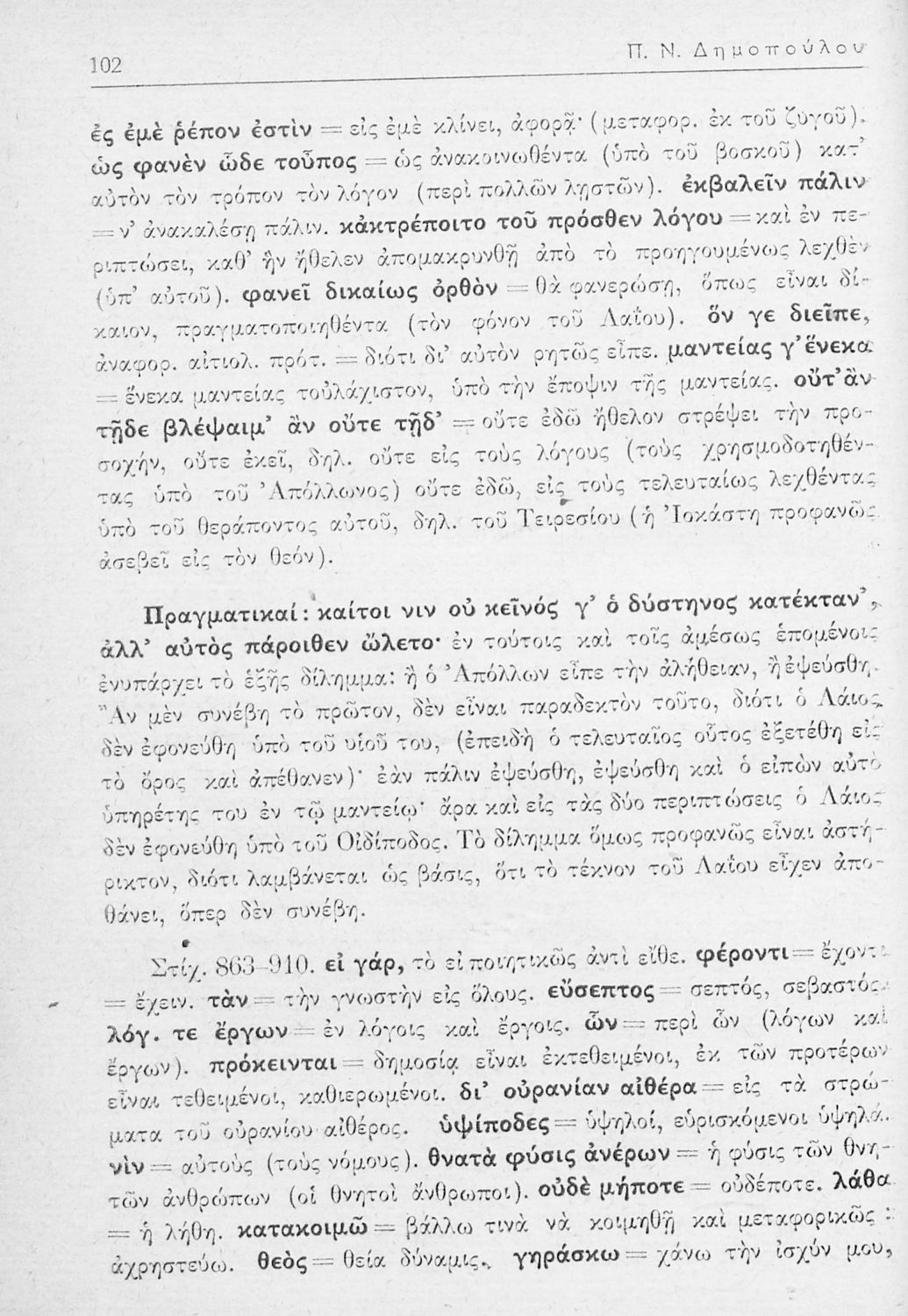 Σοφοκλής, Π.Ν Δημόπουλος (σχόλια)