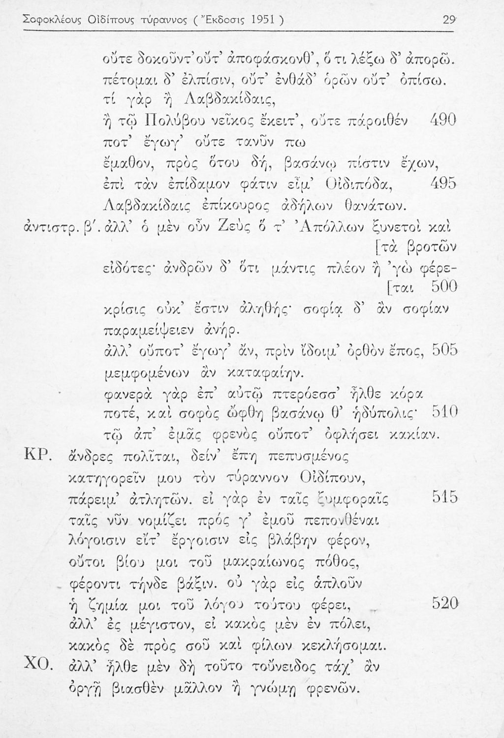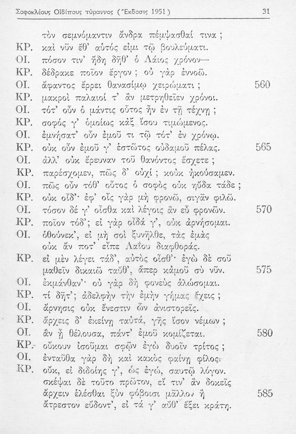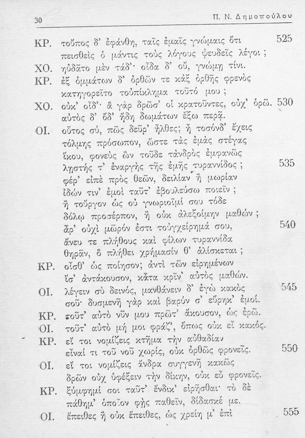 Σοφοκλέους Οιδίπους Τύραννος. Δια την ΣΤ΄ Τάξιν των Γυμνασίων